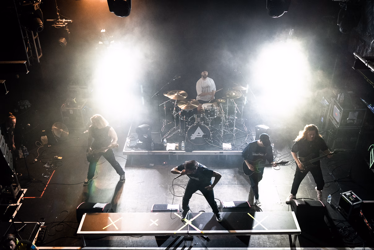 Finally it was time for the Swedish metalcore pioneers ADEPT to take to the stage. Their new album, 2025’s Blood Covenant, was released nine years since their previous LP, and this tour celebrates their two decades as a band. They opened with the title track from Blood Covenant and the crowd’s reaction to their London come back was electric. Robert Ljung remarked “We haven’t been here for over a decade and you guys singing every word back to us means the world”. The front row went absolutely wild and it didn’t take long for a circle pit to open up a couple of rows behind them.