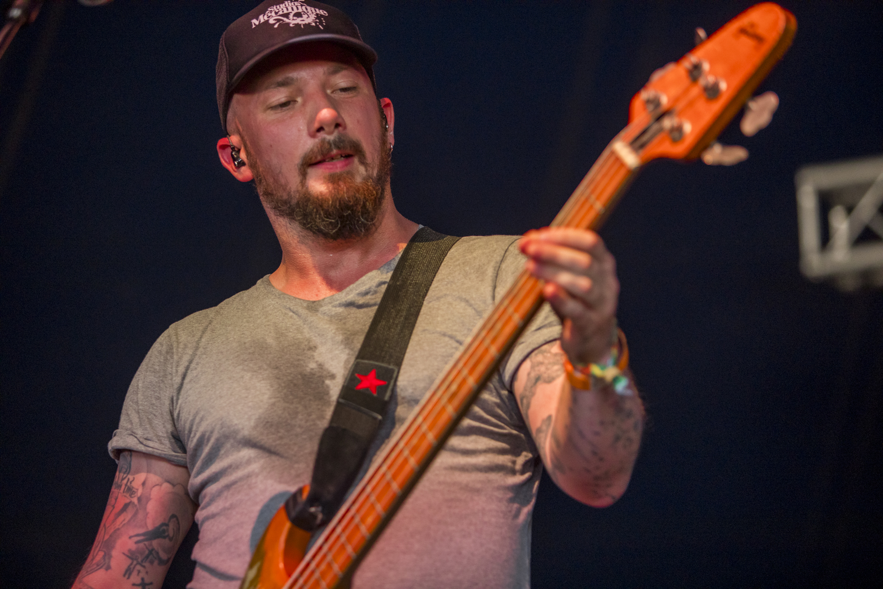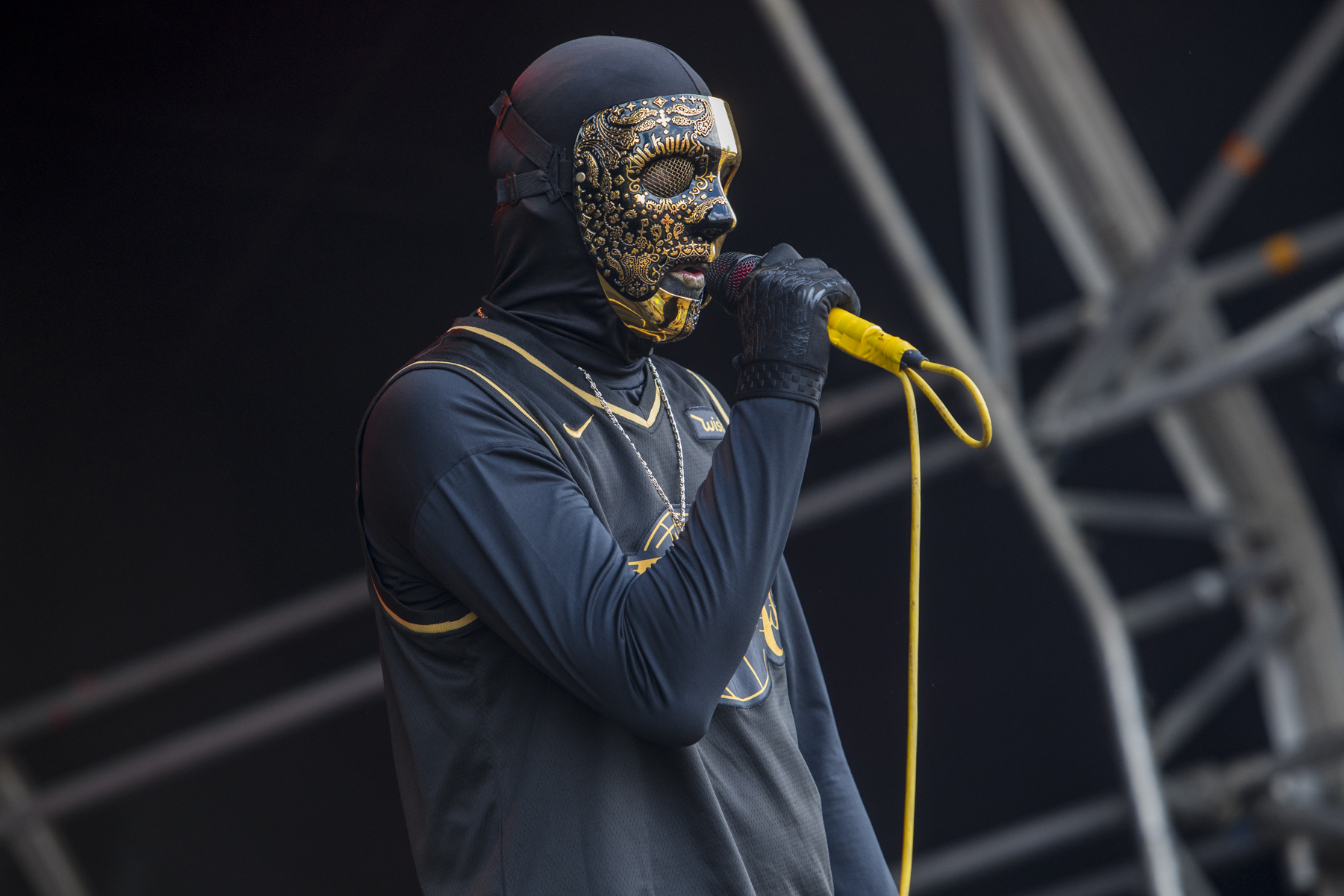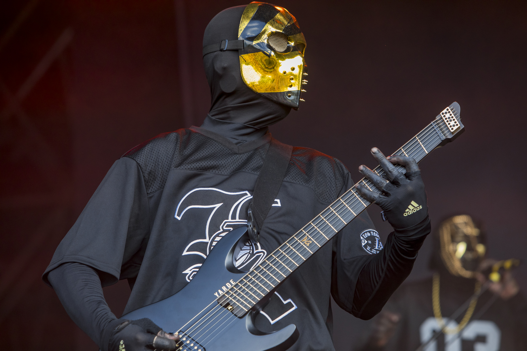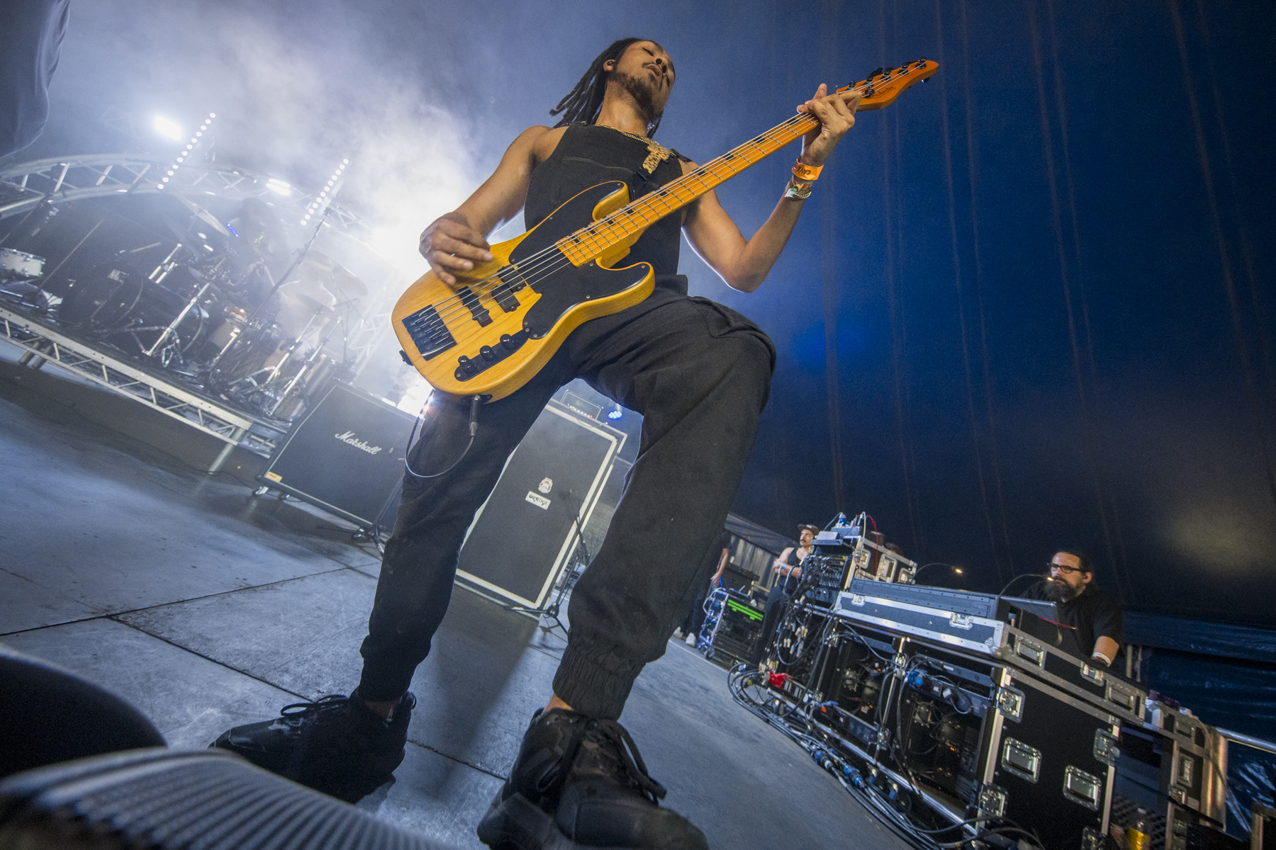 A trip over to the main stage for BLACKGOLD, who must be boiling in their all black outfits and gold masks (save for maybe the bassist, who’s gone for a beach shirt and bucket hat atop his attire). Very inspired by Limp Bizkit, they even state at one point in their lyrics that they’re “bringing that nu-metal sound back” (I’m not convinced it ever went away), they’re very good at it though, low tuned guitar riffs, sub-base drops, vinyl scratches, mentions of baseball bats and even a rewind at one point. It does feel like there are a lot of new nu-metal acts coming through recently but if you’re after a pure, nostalgic, early 2000s sound, then BLACKGOLD nail it.
