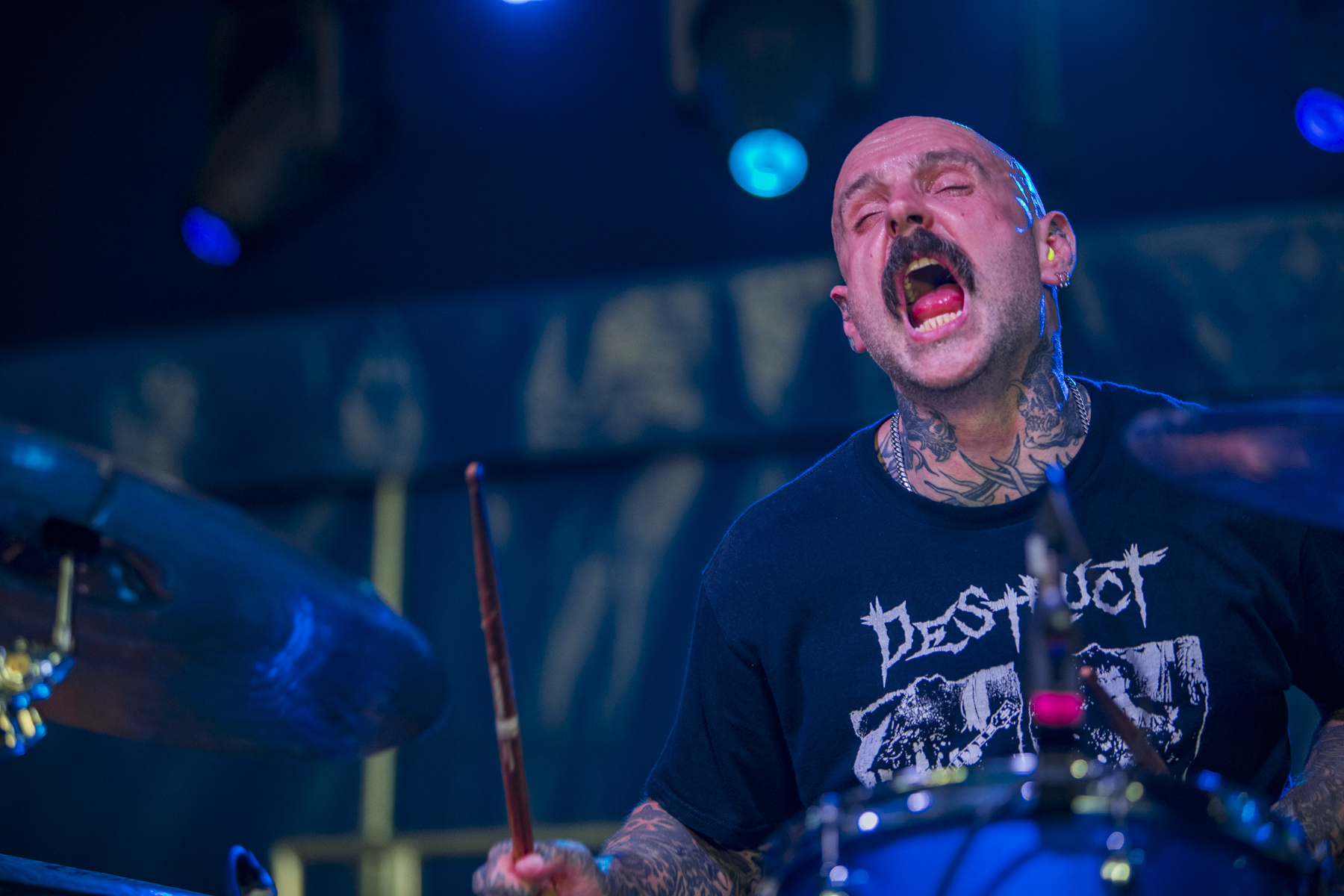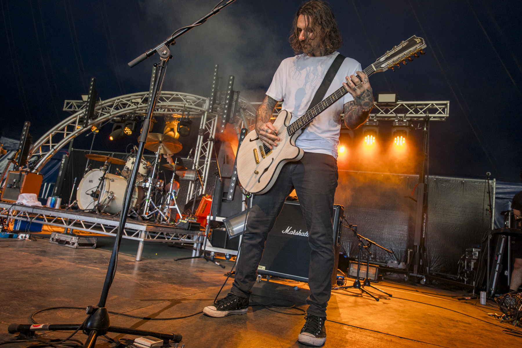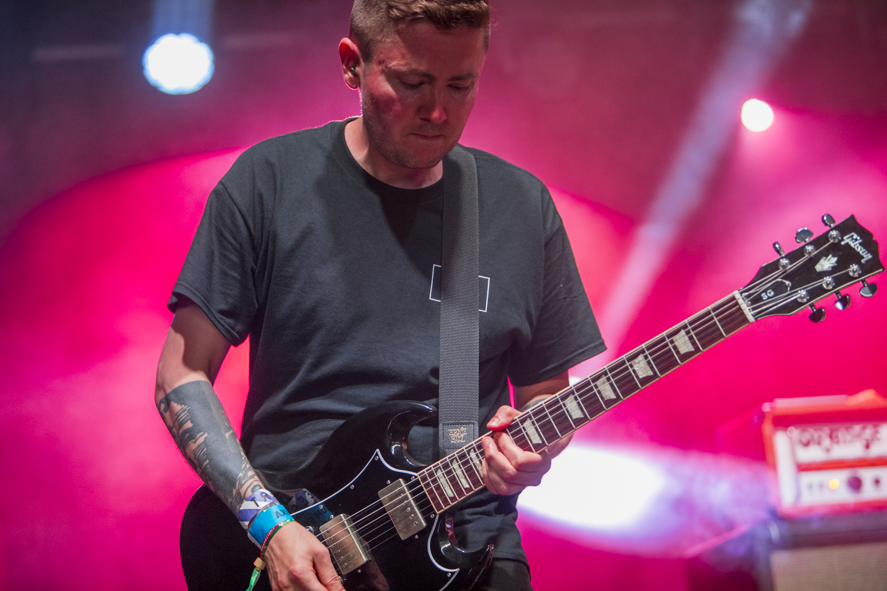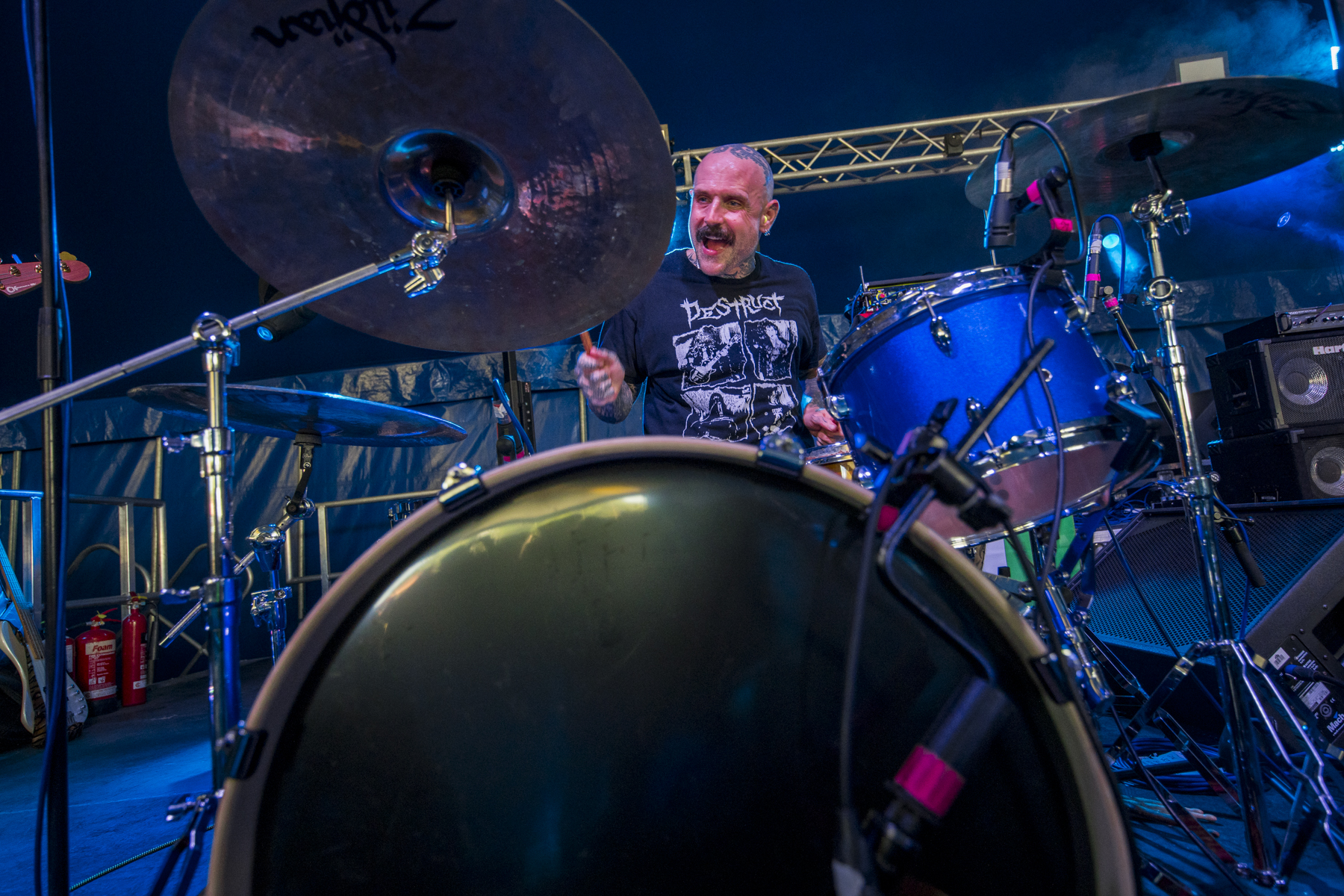 Delta Sleep, over on the Axiom, is a band that I’ve been a fan of for a long time and, for as long as I can remember, drummer Blake has been a key element of their sound. It’s in the little fills and the weird offbeat turns in songs like Camp Adventure. Sadly, he recently announced his departure from the band, and this is his final performance. Quite a fitting location, given how closely they’re aligned with Trees and sister festival ArcTanGent. Opening with Lake Sprinkle Sprankle, my favourite track by the band, I’m teary-eyed in the photo pit in minutes. Ending on The Detail, the “Solace is Everything” line gets yelled back by the crowd while the incredible instrumentation gets everyone headbanging. Sing-alongs a plenty, emotive vocals and a final display of Blake’s incredible nuance, one of the best sets I’ve seen them play.