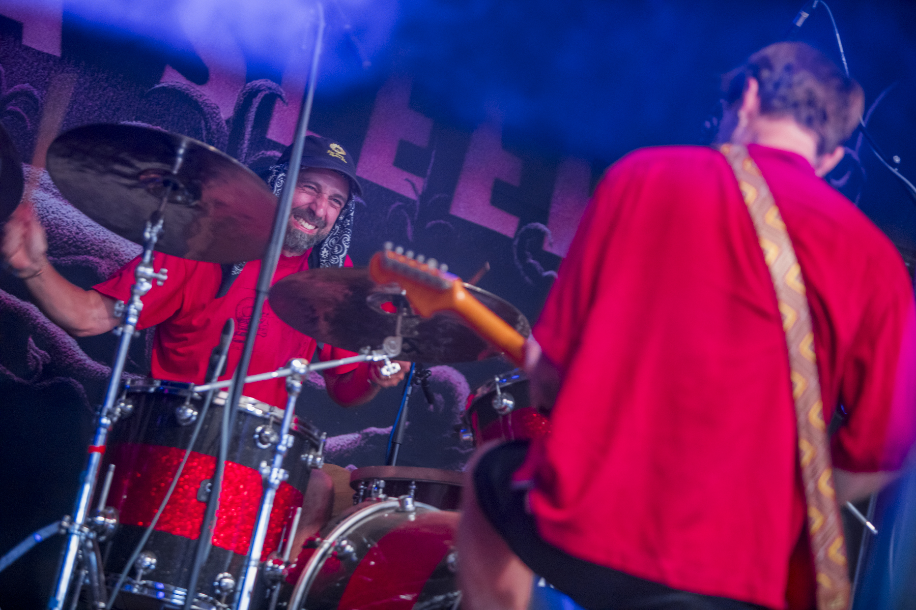 Mclusky are a band that has gotten better and better over time since their reunion in 2014. New album, The World Is Still Here and So Are We, shows a band committed to the reunion, which came with a lineup change that saw St Pierre Snake Invasion frontman Damien join on bass, who’s retained the energetic performance style he has in St Pierre, absolutely hammering the bass on stage while jumping around like a madman. They tease the crowd with the intro of Fuck This Band before diving without pause into classic Lightsabre Cocksucking Blues. They open the set with some older tracks, but given the new album came out this year, it’d be rude not to give them an airing (“now is the time to check on the babysitter,” Falco says). New song Chekhov’s Guns fits well into their discography, even with the personnel changes, largely bass-driven with some excellent lead lines. The in-between song talk is as dry as it’s ever been: “If you want to sing along to this next one, please don’t”, they state before launching into She Will Only Bring You Happiness.