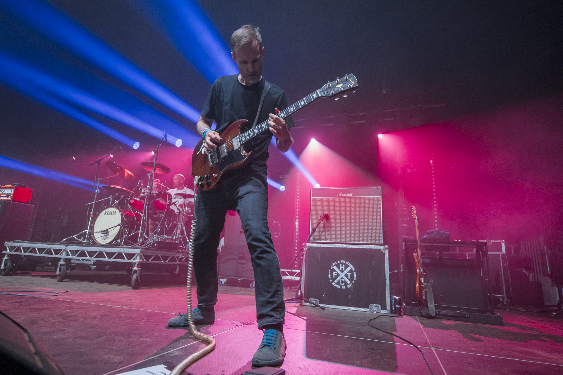 “Speaking personally, there are a bunch of lyrics I read and thought ‘what the fuck was I talking about?’ But there was a lot I was proud of, and this is a b-side that we’ve always liked,” before going into Sasquatch – there’s a fun change of time in the middle. They point out that as Tom took over from Cameron on guitar, he’d already learned the first album, but, in contrast, Cameron hadn’t even heard the second. With Pornography for Cowards into I am the Party, this reunion lived up to the hype. “All five of us on stage are filled with gratitude for being on this stage again”, says Frank, whose vocals sound destroyed after a long set of screaming songs from 20 years ago.