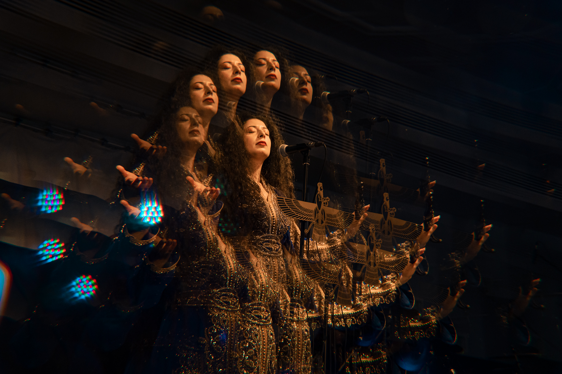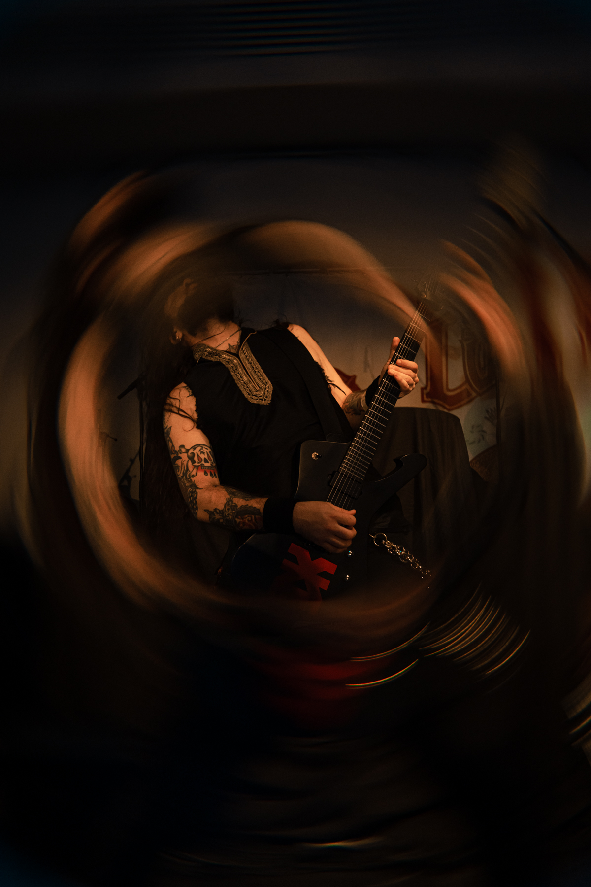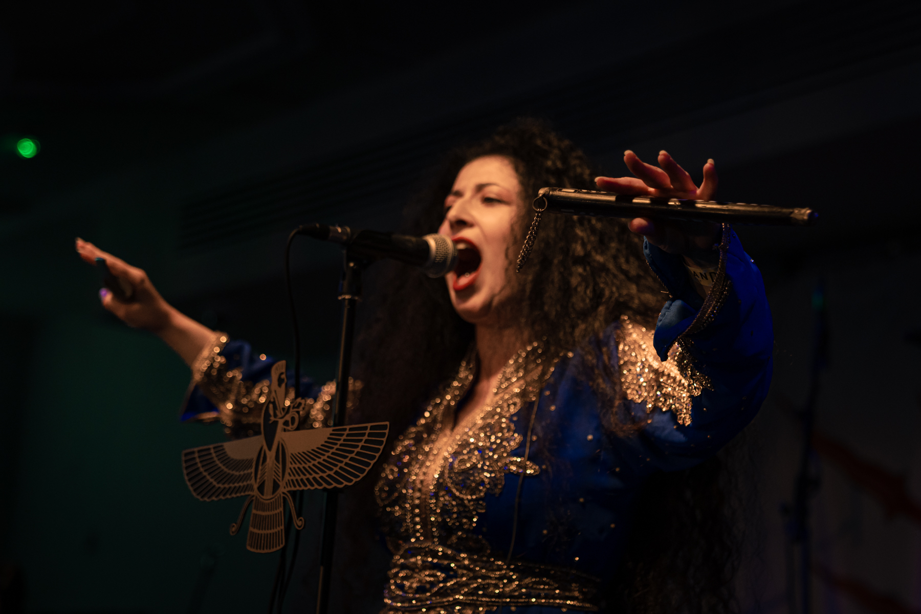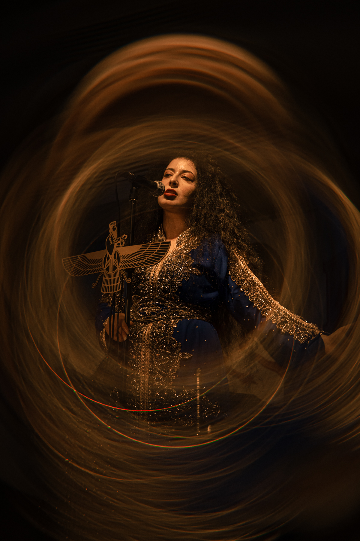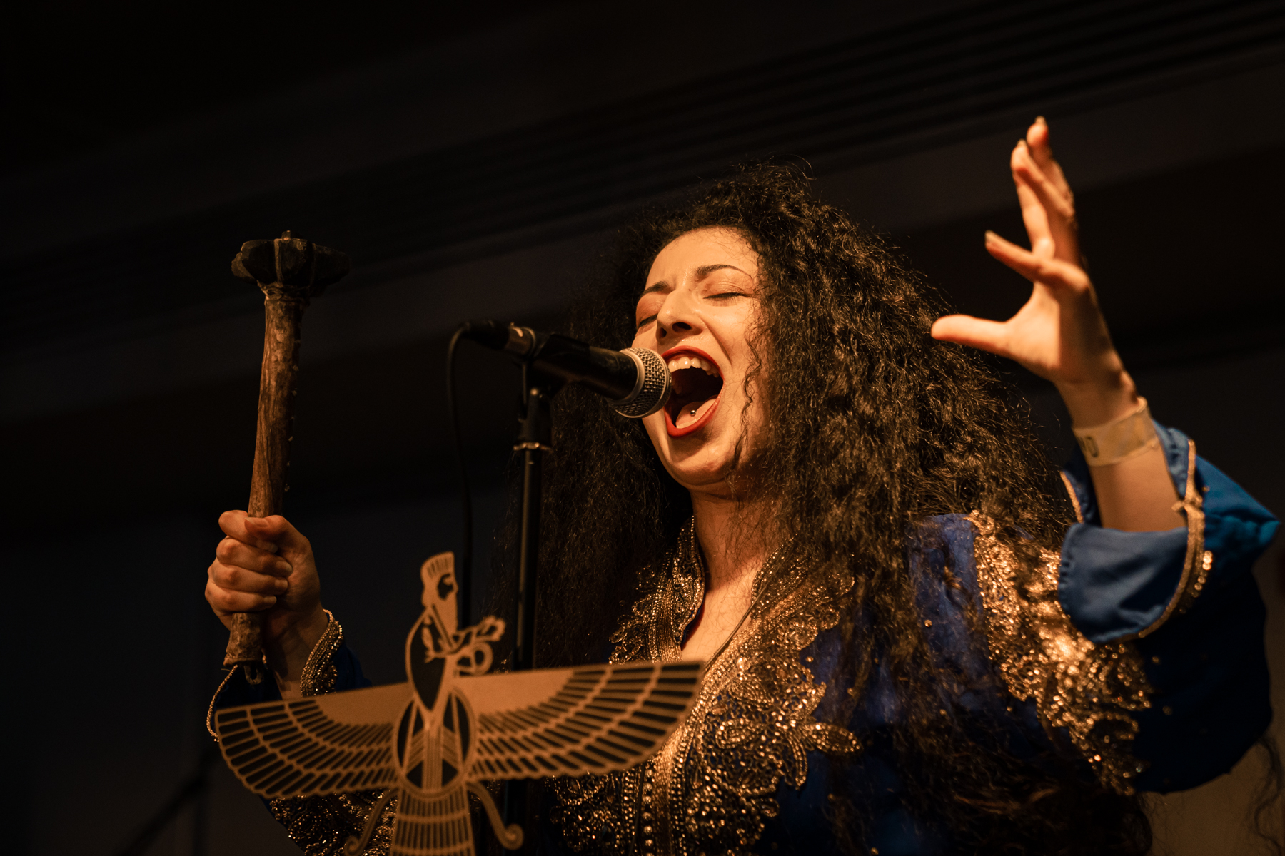 As the venue fills up, Lowen hits the stage immediately, grasping the audience’s attention with their incredible blend of Middle Eastern music with prog, stoner, and doom. The opener “Najang Bah Divhayeh Mazandaran” brings an amazing performance by Nina, who wears incredible traditional attire and brandishes a knife, while singing in English, Farsi, Akkadian, and Sumerian. Cal’s dynamic drumming and Shem’s exciting prog riffage are excellent additions to the mixture. Unfortunately, it’s a short set, but they still get a huge reaction from the crowd and well deserved.