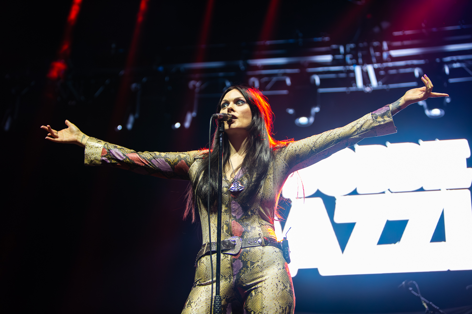 The 6-piece glam rock band fills the stage. Lead vocalist Bobbie Dazzle is a showwoman and knows how to fit perfectly into tonight’s crowd. Kicking off the set, the band’s light and tight-knit energy is just perfect for tonight’s sit-down arena show. They haven’t been a band for long, but they hold themselves to such high standards, yet are also very free and flowing to have fun. With songs like ‘Merry Go Round’ and “Flowers On Mars” being big hits within the crowd. Bobbie Dazzle knows how to tell us a story and takes us along on an adventure, explaining that she called her first album “Fandabozi”, announcing the passing of Ozzy Osbourne, which for most of Cardiff Arena last night came as a shock and changed the atmosphere of their set, with many of the audience taking in the news The band dedicated a song and swiftly moved on with there set. Performing their latest cover of ABBA’s ‘Watch Out’, which kept the evening moving along. Finishing up the set with a story of how the next song was co-written from the lyrics she found from her late father, called “Lighting Fantasy”.
