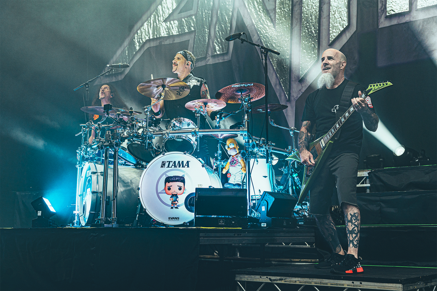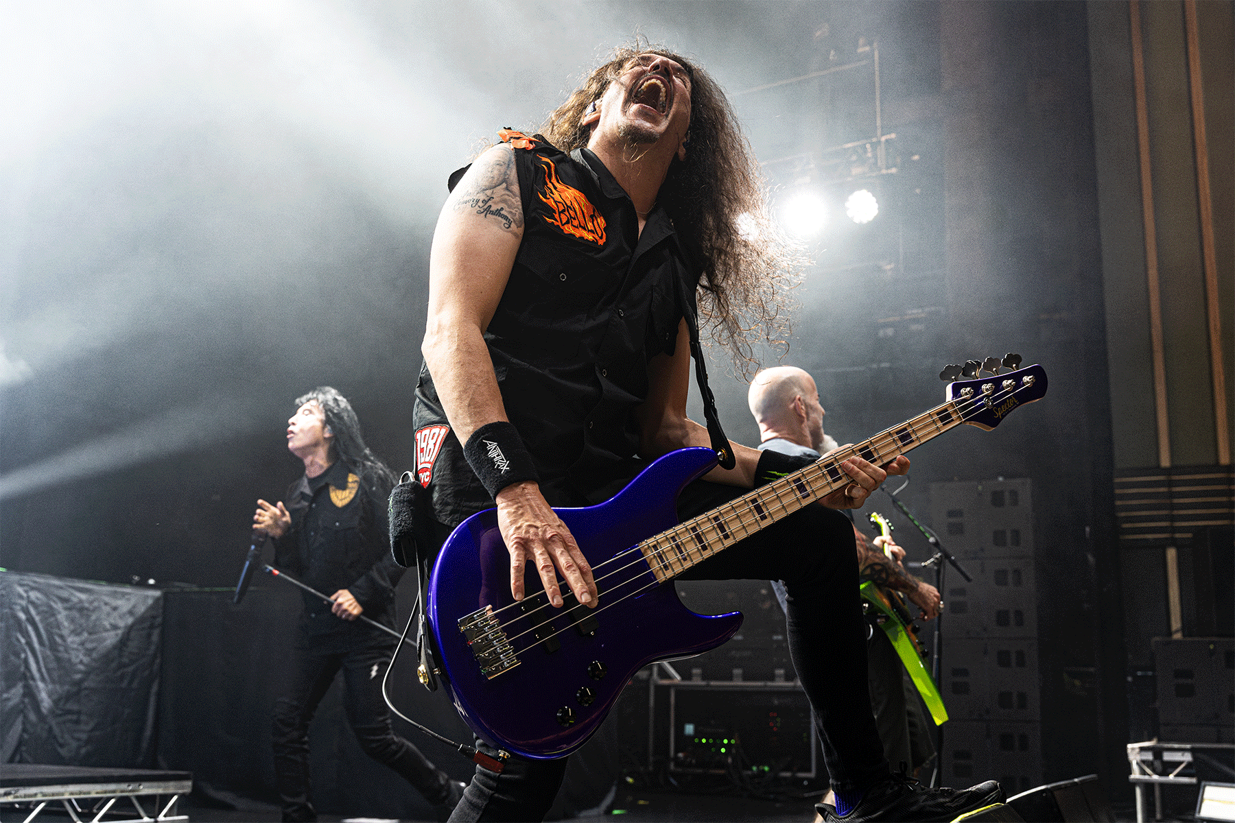 When a giant image of Stephen King appears on the screen saying, “Fucking Anthrax, rock on you sons of bitches,” you know you’re in for something special—and you comply with the instructions. Compared to Kreator’s fiery shenanigans, Anthrax’s set had an almost “unplugged” vibe to it. But don’t be fooled—they were just as loud, if not louder. Performing under their signature acid green and yellow lights, the band took us on an unforgettable journey through their discography. The crowd sang along at every opportunity. Joey Belladonna was the ultimate showman, running up and down the stage like a conductor of a thrash metal orchestra. He made sure everyone was having a good time—checking in with the drummer, hyping up the front row, and even high-fiving fans being dragged over the front barriers after crowd-surfing. Joey was everywhere, making sure the Madhouse stayed wild.