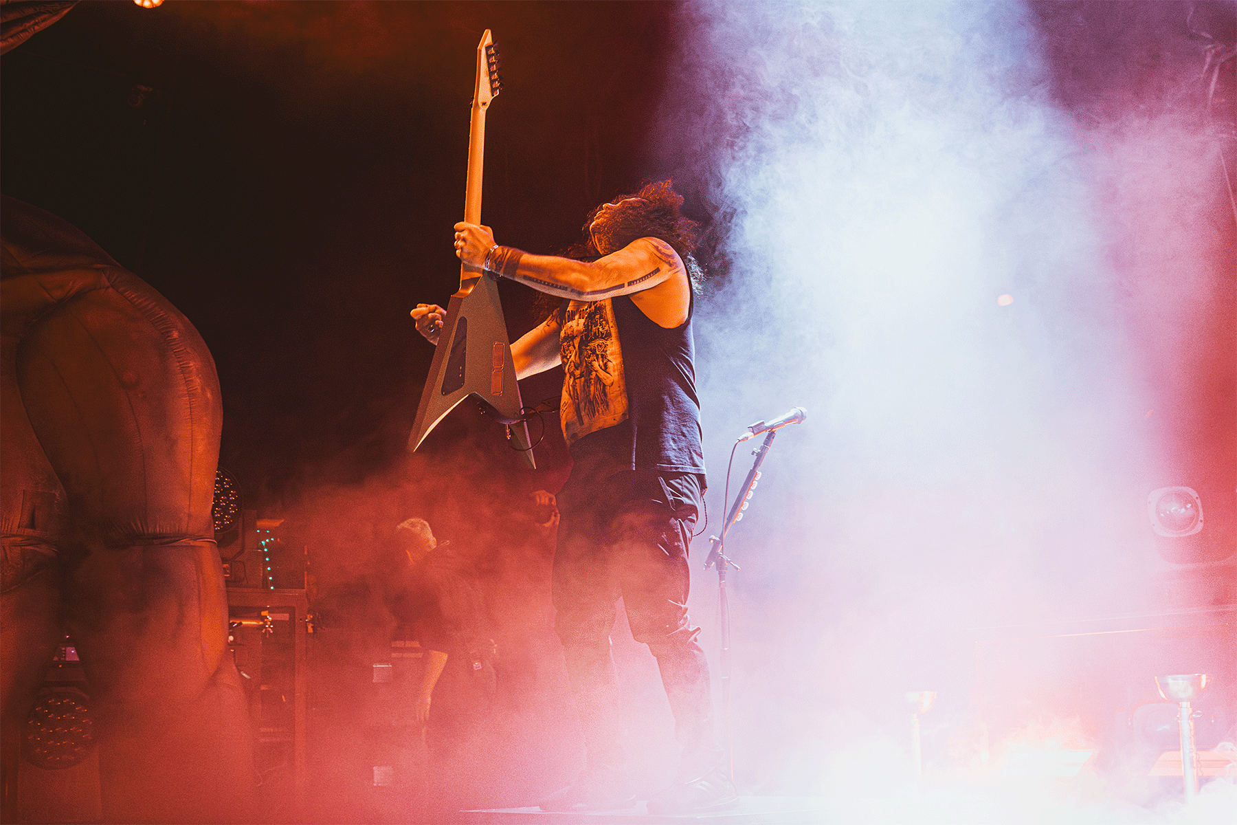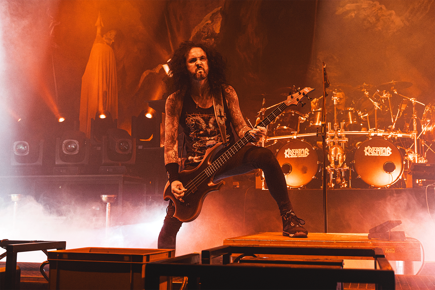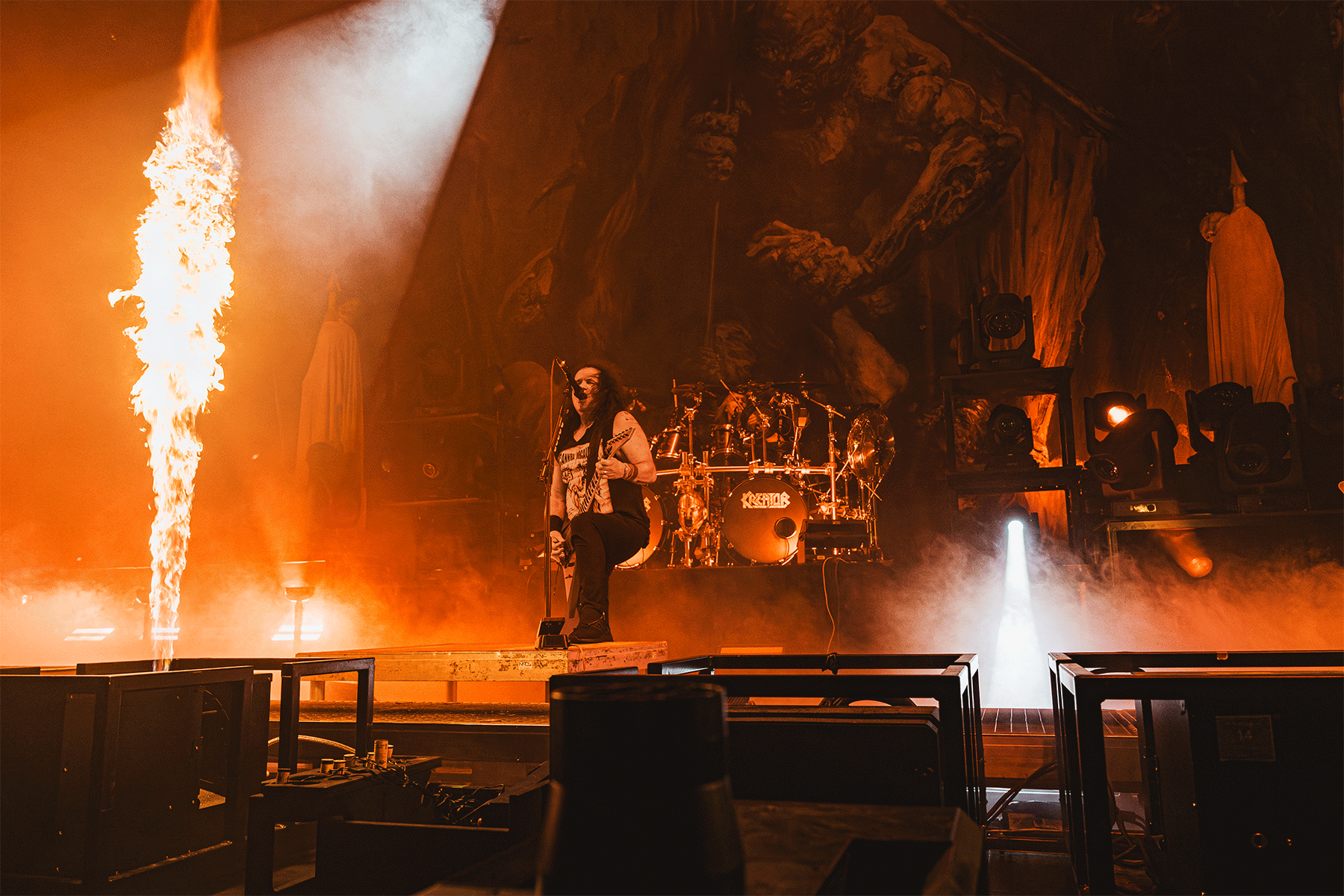We got everything we didn’t even realize we needed: copious amounts of pyro, confetti cannons, massive inflatable demons, impaled and hanged mannequins, more pyro, even more pyro, and flames, more flames—all paired with a killer lighting design. Whether standing or seated, people were going wild. Fists were pumping, circle pits formed, walls of death collided—Kreator carried us all into a state of pure ecstasy.