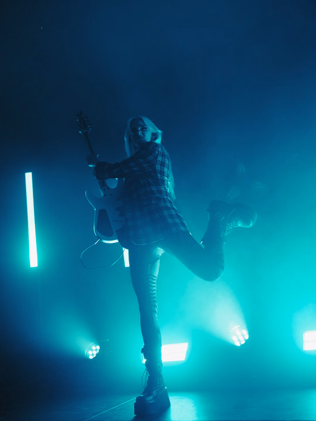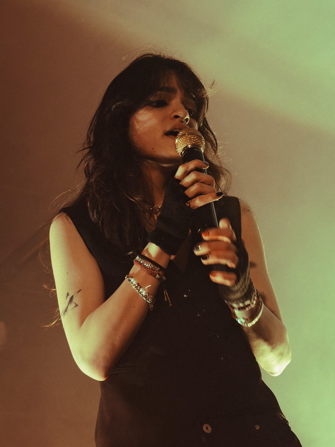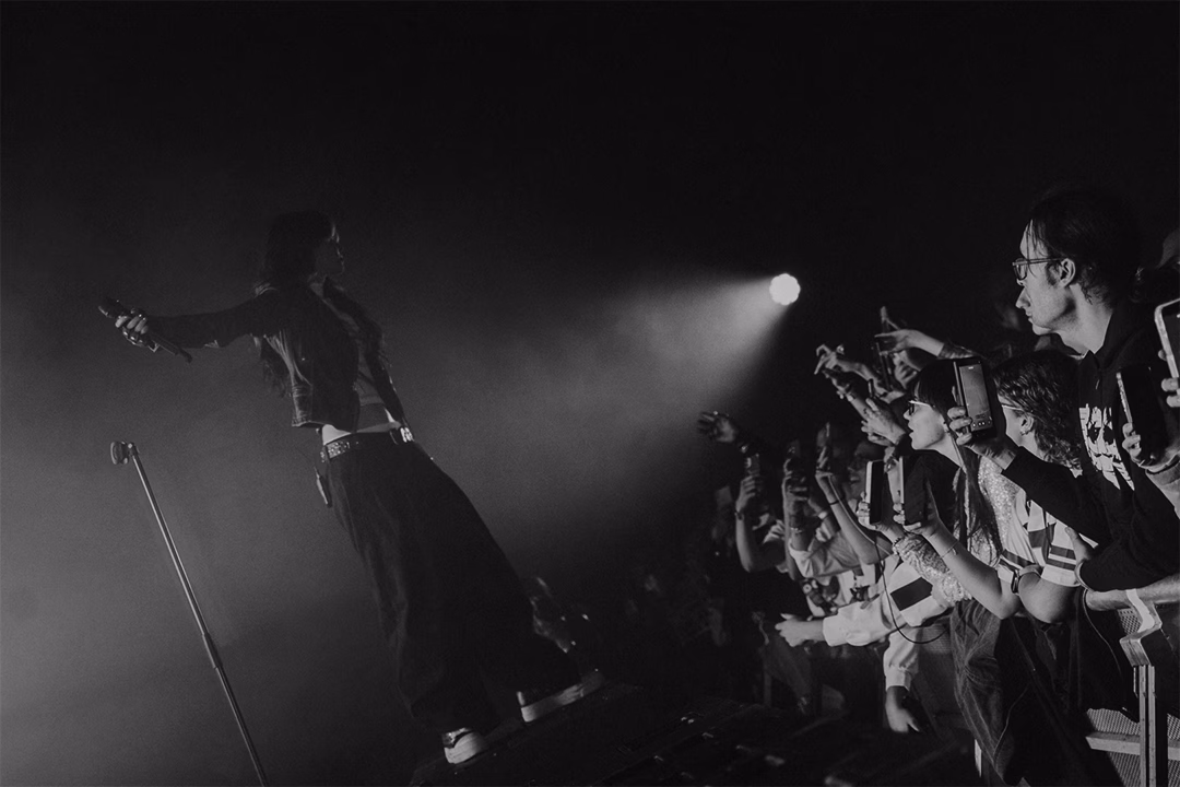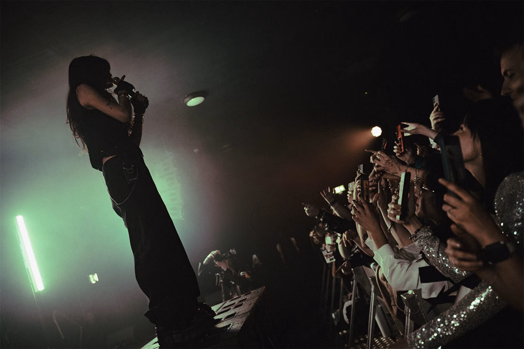 Next up was Ella Boh‘s first London show! Having finished opening for Artemas in Miami less than 24 hours ago, she was already in London and raring to go again for the European leg of the Change Tour which she previously opened for in the US as well. Ella Boh is without a doubt, one to keep an eye on this year! She had so much energy, utilising every inch of the stage and barrier to interact with her fans throughout her set. Her vocals were mesmerising combined with her talent for making such sad lyrics sounds so beautiful and ethereal. We got a preview of ‘Starlet’ from her ‘Blurry’ EP set to be released in April and the fans had already learnt every word to sing along at full volume. The dynamic contrast between the upbeat, high-energy sections and the slower moments really allowed all the emotions to shine through and created the most electric atmosphere in the venue. Her latest single ‘LLORONiTA’ was so insanely beautiful live, showing the full spectrum of emotions throughout. Other songs that got audible gasps from the crowd were ‘milk & honey’ and ‘I don’t wanna’ which had the crowd chanting along. Her guitarist, Nico Diaz, brought just as much energy to the show, interacting with fans and showing off his guitar solos, especially on their cover of George Michael‘s ‘Careless Whisper’ which matched her voice so perfectly. The crowd was just as excited for her set, singing along to every word as they were for Ari Abdul‘s set. Unfortunately, due to time constraints, they had to cut her set short, but Ella let the crowd pick which song they wanted, and they chose to end on ‘Serial Killer’ which was the perfect closer.