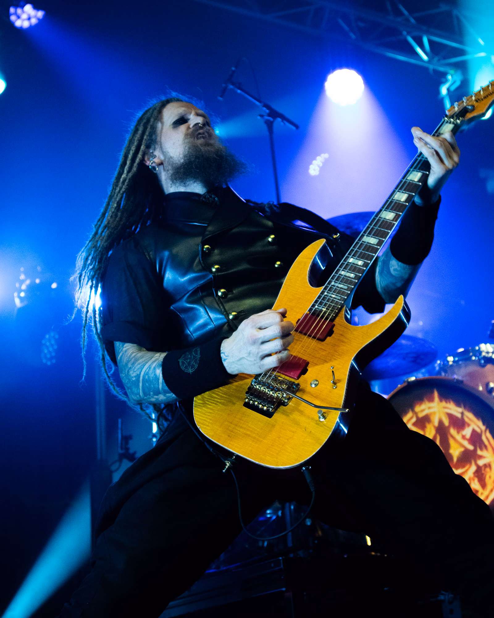 The theatrics were only just getting started, the drum kit parted, and amongst the intense blue lighting and the fog, out stepped the members of Avatar, led by a cloaked Johannes Eckerström holding a lantern in the air, as the band started the first song of the night, ‘Captain Goat’. This sea shanty-esque song was the first of a good handful of songs from their latest release, ‘Don’t Go In The Forest’.