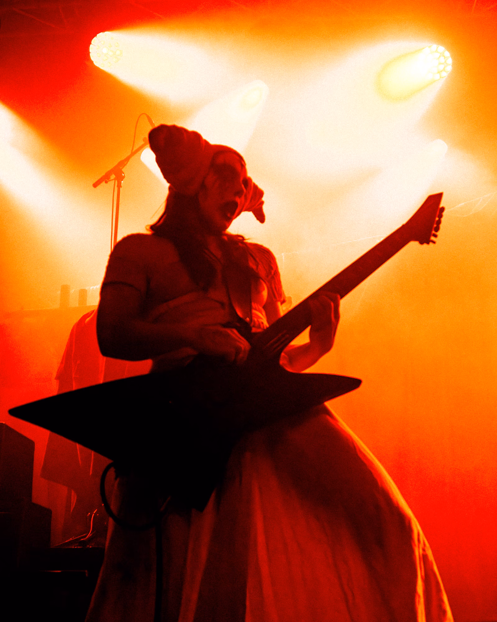 From the haze emerged Witch Club Satan, with matching outfits and corpse paint, ready to start their ritual. Their harsh yet hypnotic vocals convey their empowering and politically driven lyrics. In the absence of Victoria, Hedda Gray Lægreid joins members Nikoline Spjelkavik and Johanna Holt Kleive on bass, an instrument which, despite being new to her as mentioned in a pre-tour Instagram post, she played faultlessly.