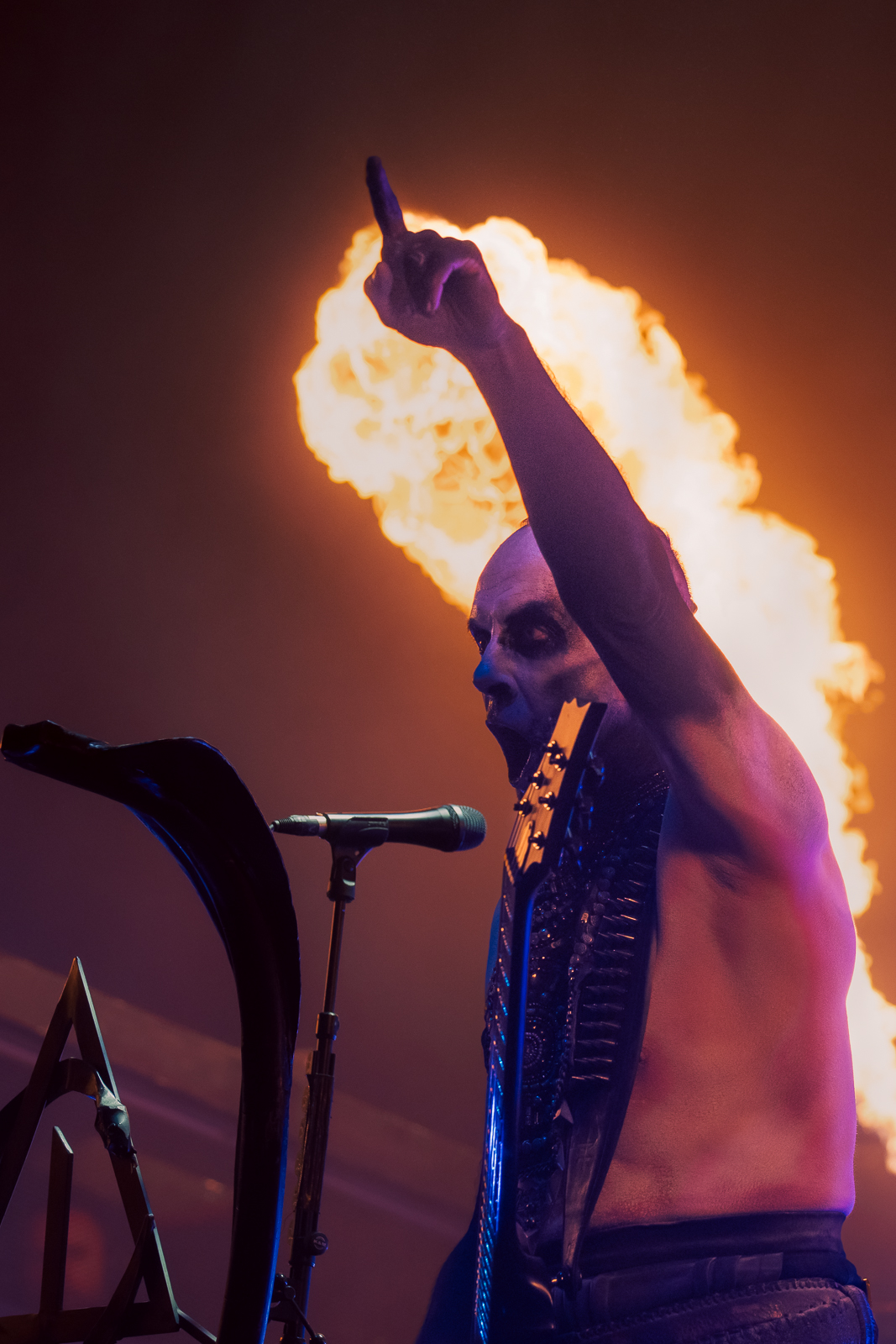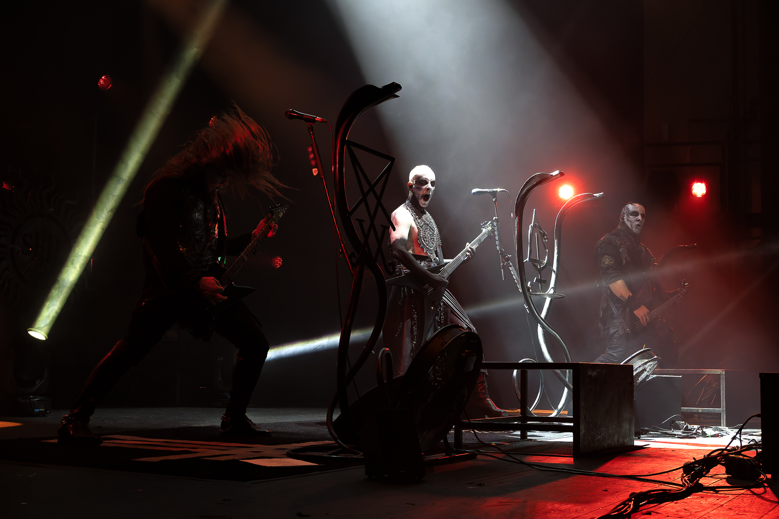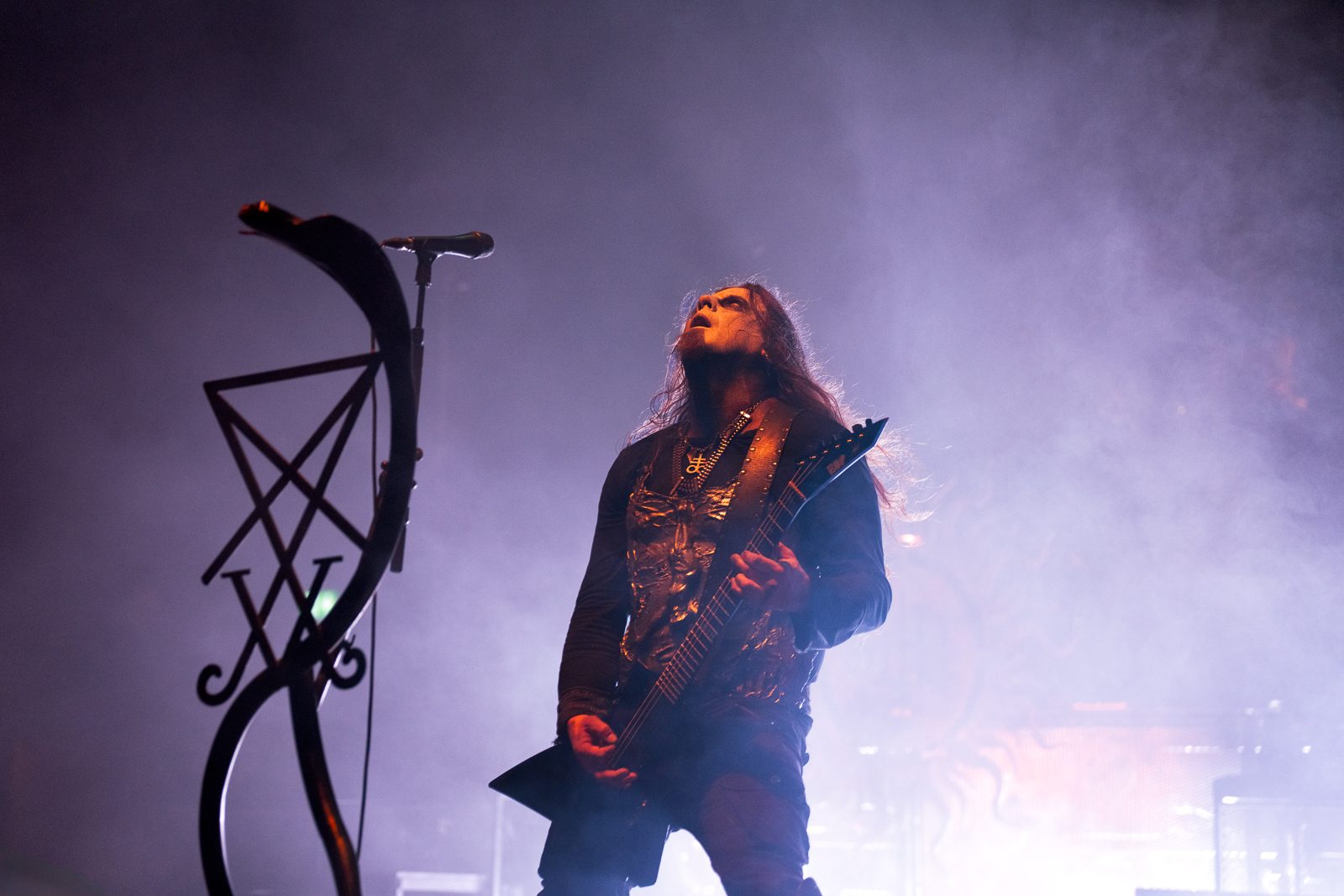 Black Metal often comes with theatricals—costumes and corpse paint—and here it was timed to the second. Nergal’s costume changes were on par with major pop acts, adding to the entertainment while deepening the ritualistic symbolism. None of it felt cheap. My favourite look was during the dramatic second-act entry, with Nergal wearing the Pope’s mitre and insignia. To me, Poland has two world-famous religious figures: John Paul II and his metal yang—the unholy counterpart—Nergal.