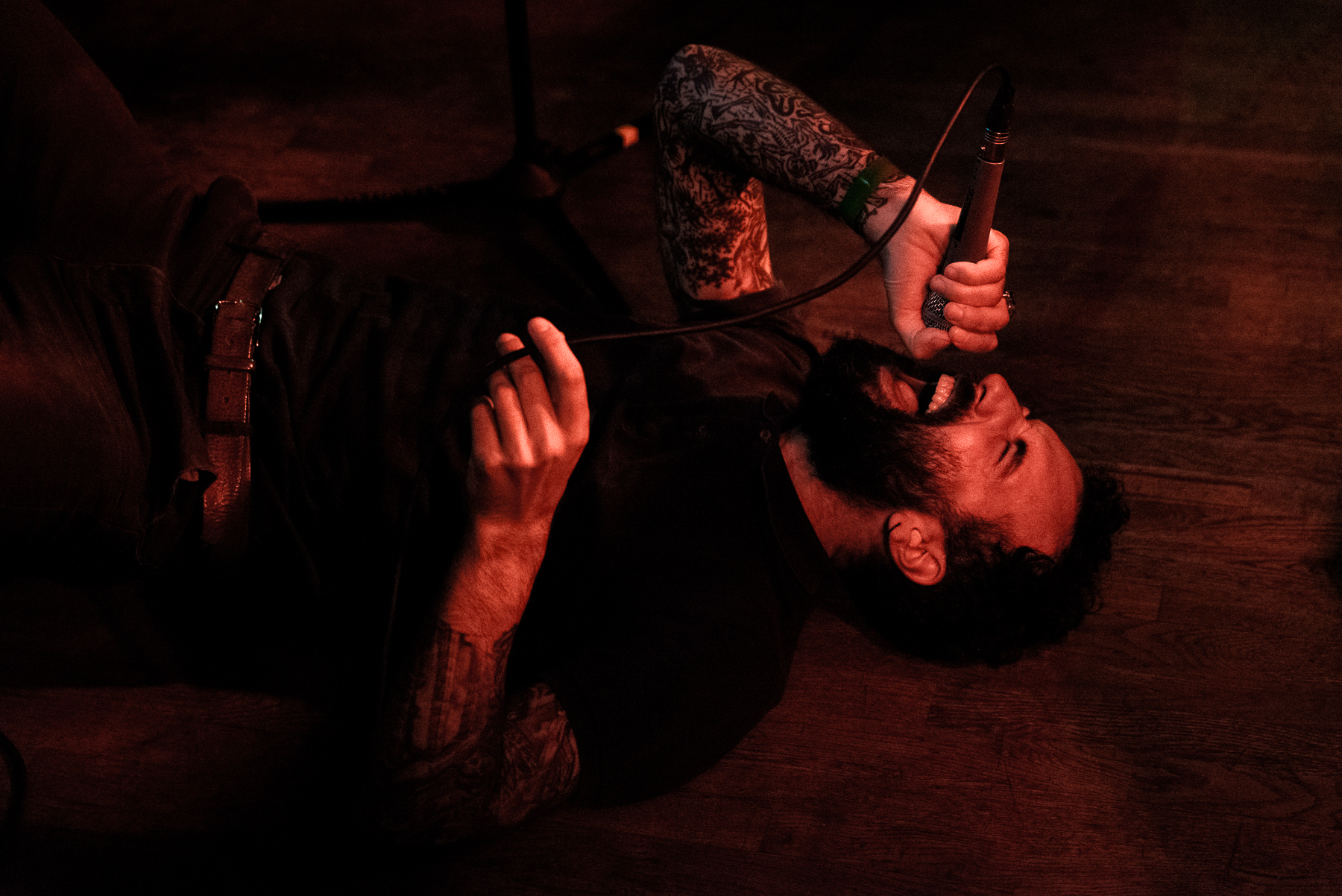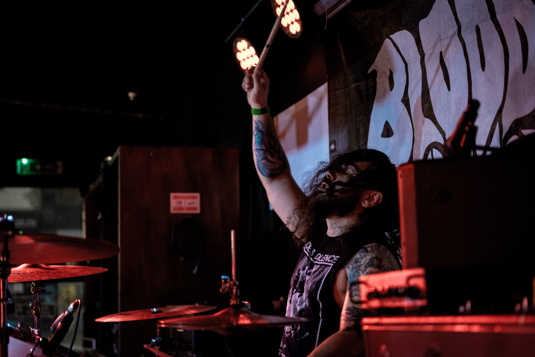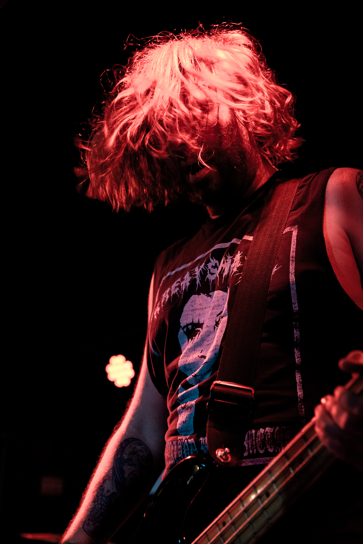 Friday night was not the night to perform on the stage, and Matteo soon moved his mic stand to the floor, before throwing himself into convulsions onto the floorboards, just to jump up and ride the stage monitor before cradling it tightly. Visceral, immersive, bleak and oh, so heavy. The crowd was eating it up, with rhythmic headbangs and first pumps, and going through it along with Matteo. It was a change of pace, but one that flowed perfectly in the cadence of the evening.