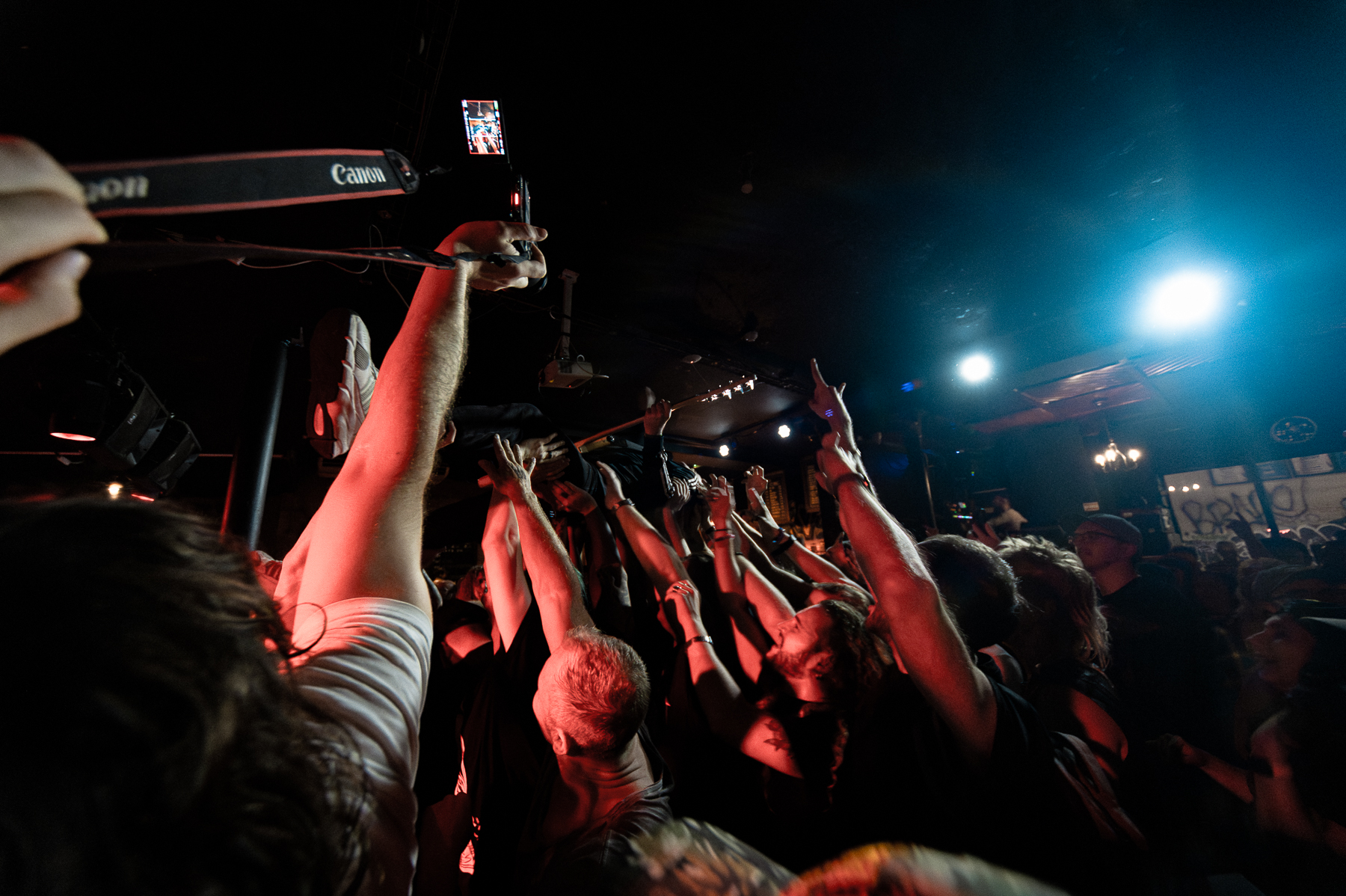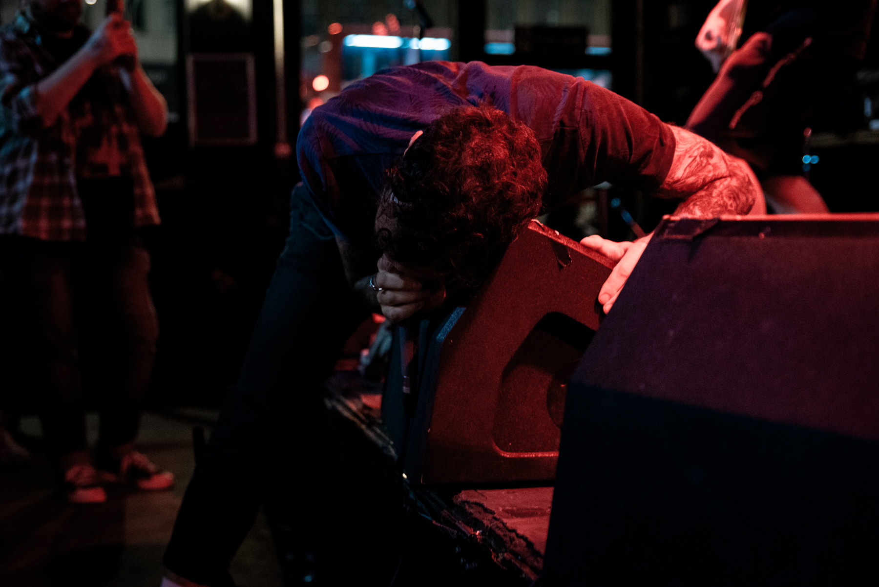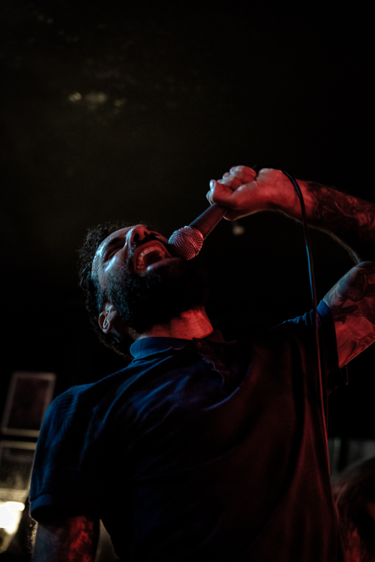 Friday night was not the night to perform on the stage, and Matteo soon moved his mic stand to the floor, before throwing himself into convulsions onto the floorboards, just to jump up and ride the stage monitor before cradling it tightly. Visceral, immersive, bleak and oh, so heavy. The crowd was eating it up, with rhythmic headbangs and first pumps, and going through it along with Matteo. It was a change of pace, but one that flowed perfectly in the cadence of the evening.