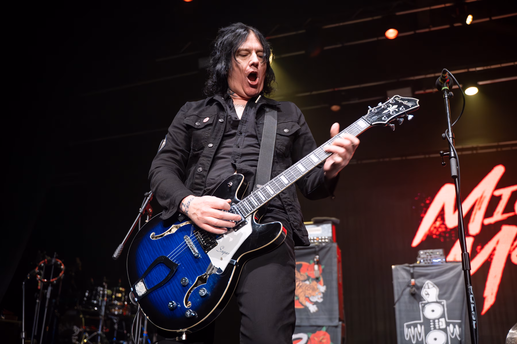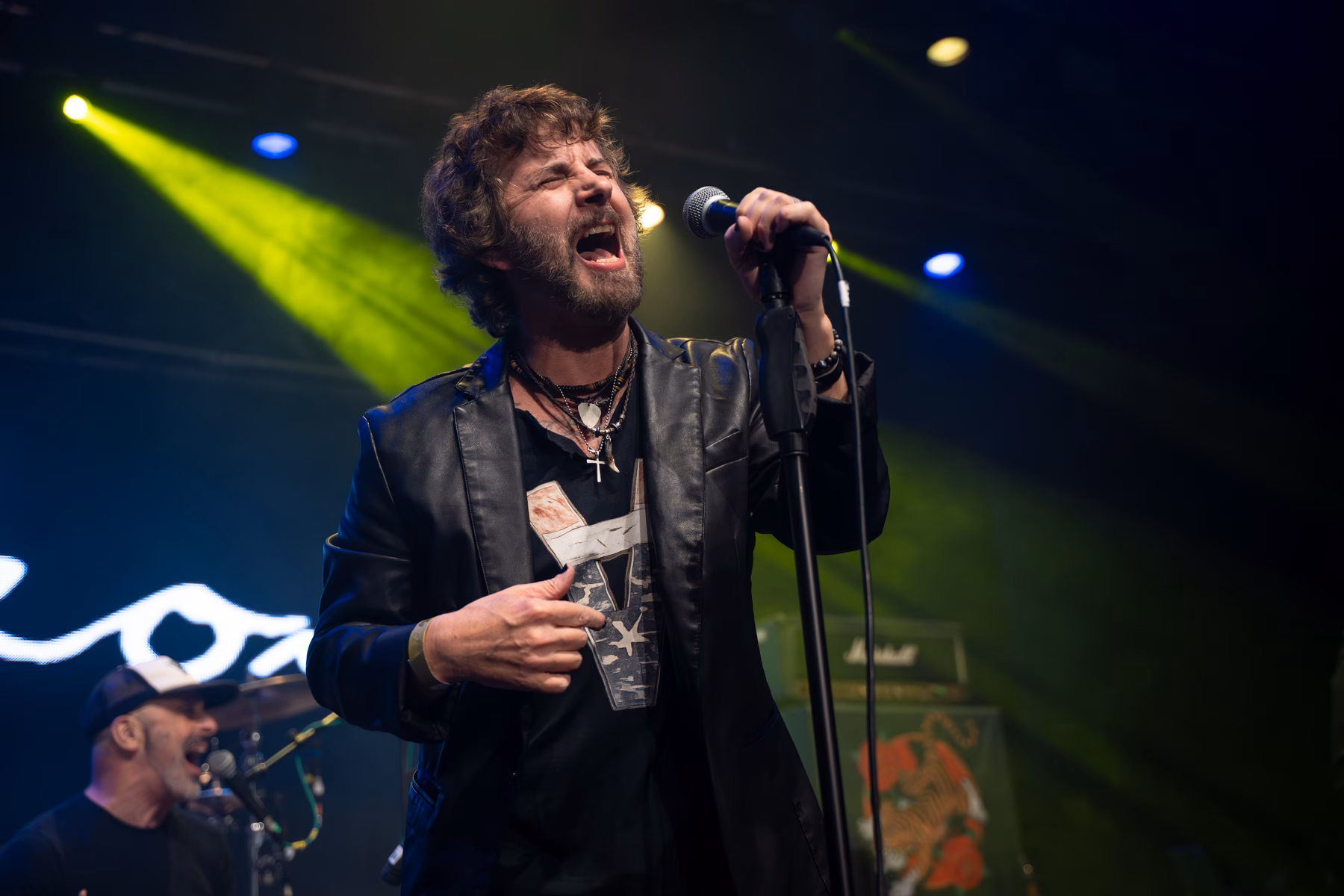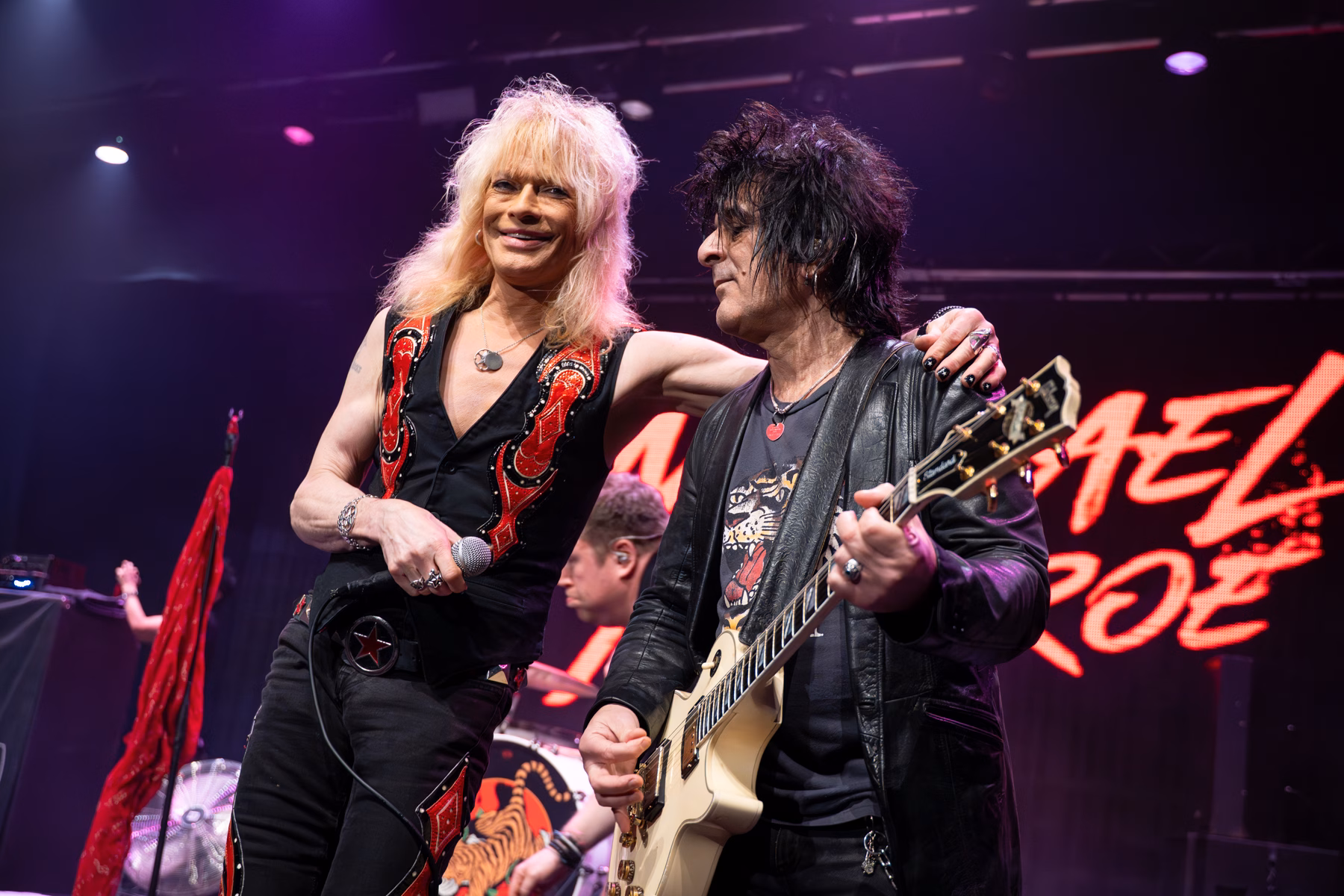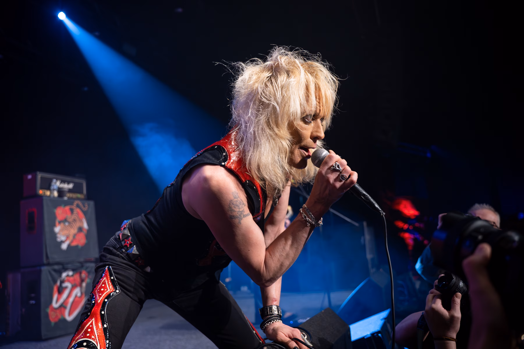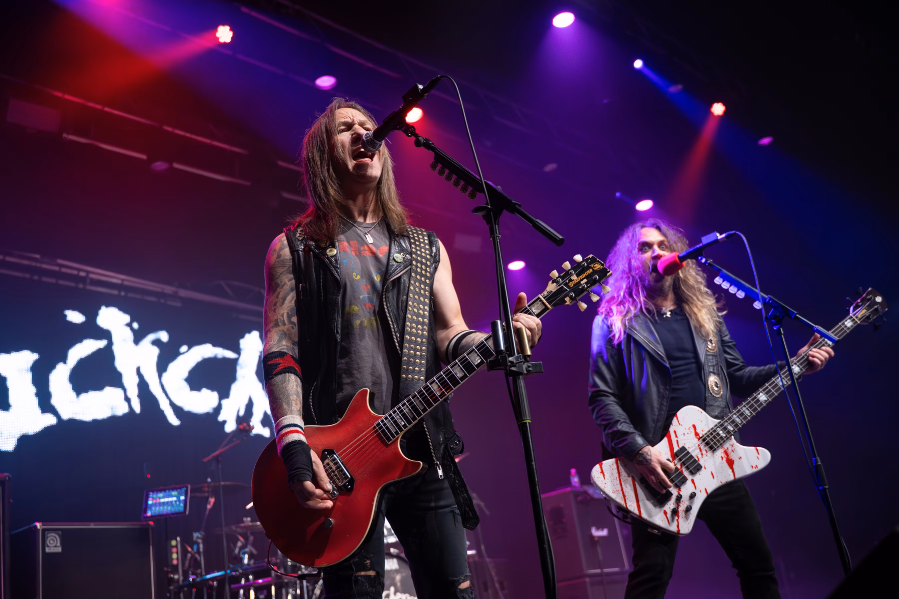 Michael Monroe’s live performance was a masterclass in controlled chaos, powered by an energy level that simply never dipped. From the moment the band tore into the classic opener ‘Dead, Jail or Rock ’n’ Roll’, Monroe was in constant motion—pacing, leaping, and swinging his microphone so wildly that a dedicated cable-wrangling roadie trailed him throughout the set, earning more than a little sympathy from the crowd. The pace barely paused as the second song, ‘Motorvatin’, ended with Monroe dropping into his customary splits, a reminder that time has done nothing to blunt his physical commitment. While he was clearly flying the flag for his new album Outerstellar, the set struck a sharp balance between past and present, with guitarists Steve Conte and Rich Jones expertly trading licks in a way that echoed the Rolling Stones’ so-called ancient art of weaving. Sami Yaffa was on blistering form at bass, locking in effortlessly with Karl Rockfist, whose drumming kept the whole thing tight no matter how feral the frontman became. Monroe repeatedly climbed down into the pit, leaning over the barrier to get face-to-face with fans, and later donned his trademark police cap for ‘Hammersmith Palais’. The saxophone made a welcome appearance for Hanoi Rocks’ ‘Malibu Beach Nightmare’, before the set closed on the iconic ‘Up Around the Bend’, bringing a breathless, sweat-soaked performance to a perfectly defiant end.