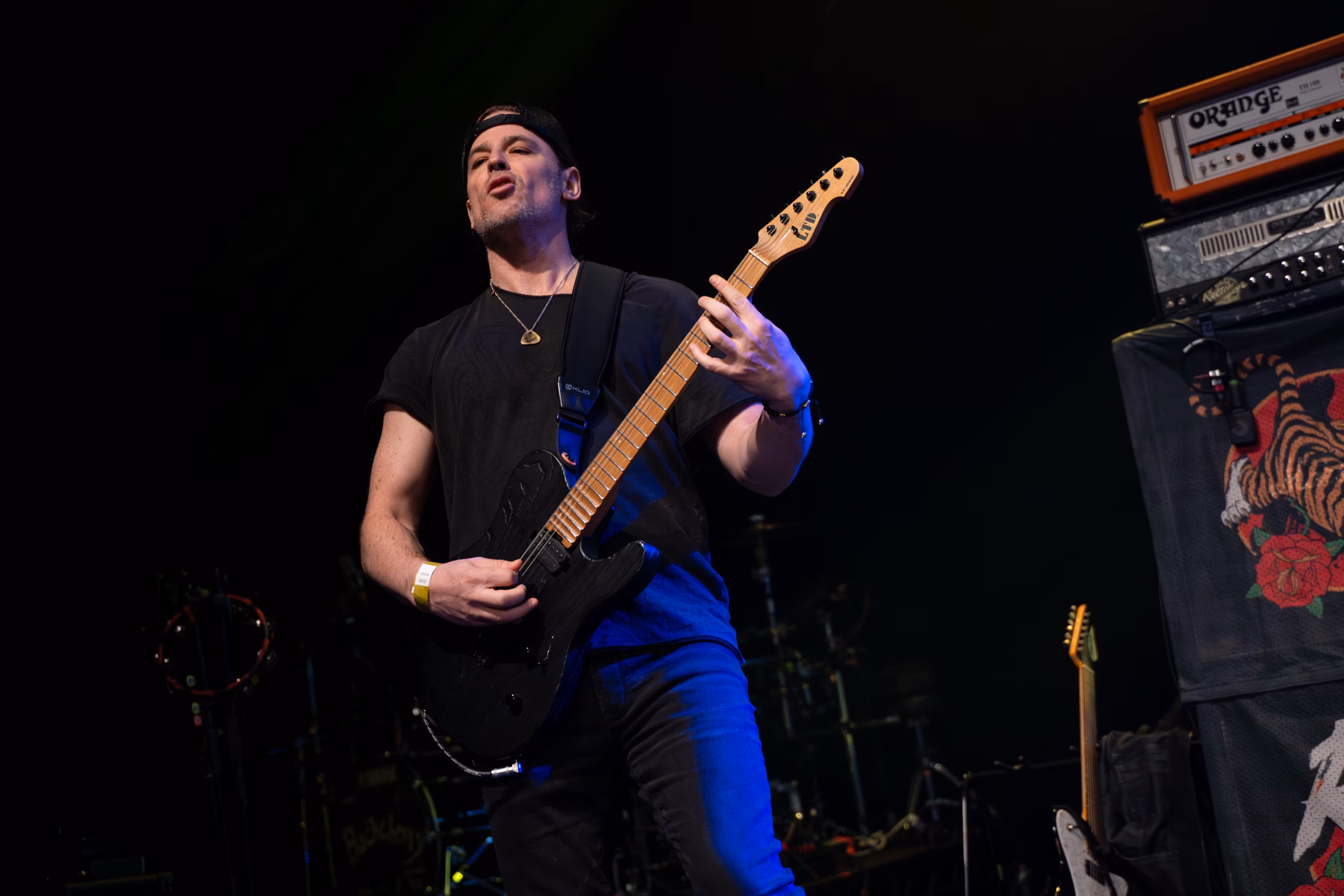 Buckcherry’s return to the UK carried a sense of unfinished business, finally making it back after illness cut their last visit short three years ago. Touring behind their 11th studio album, Roar Like Thunder, the band hit the stage full on with frontman Josh Todd emerging with a snarl and kicking off ‘Lit Up’ before sliding cleanly into ‘Roar Like Thunder’, with the audience fully with them from the outset. Stevie D handled lead guitar duties with bite and precision, his face mostly hidden beneath a Jones of Hollywood hat (still my favourite restaurant on Melrose!), while Billy Rowe anchored the sound on an eye-catching collection of Rock N Roll Relics guitars. Between songs, Todd’s comments—particularly his dry references to past extracurricular adventures involving cocaine—kept things loose without slowing the pace, and his tambourine work carried a familiar, Ian Astbury–like physicality. With no need for surprises, the band wrapped up with ‘Crazy Bitch’, their 2006 breakout hit still hitting hard, closing a set that felt direct, confident, and very much back on track.