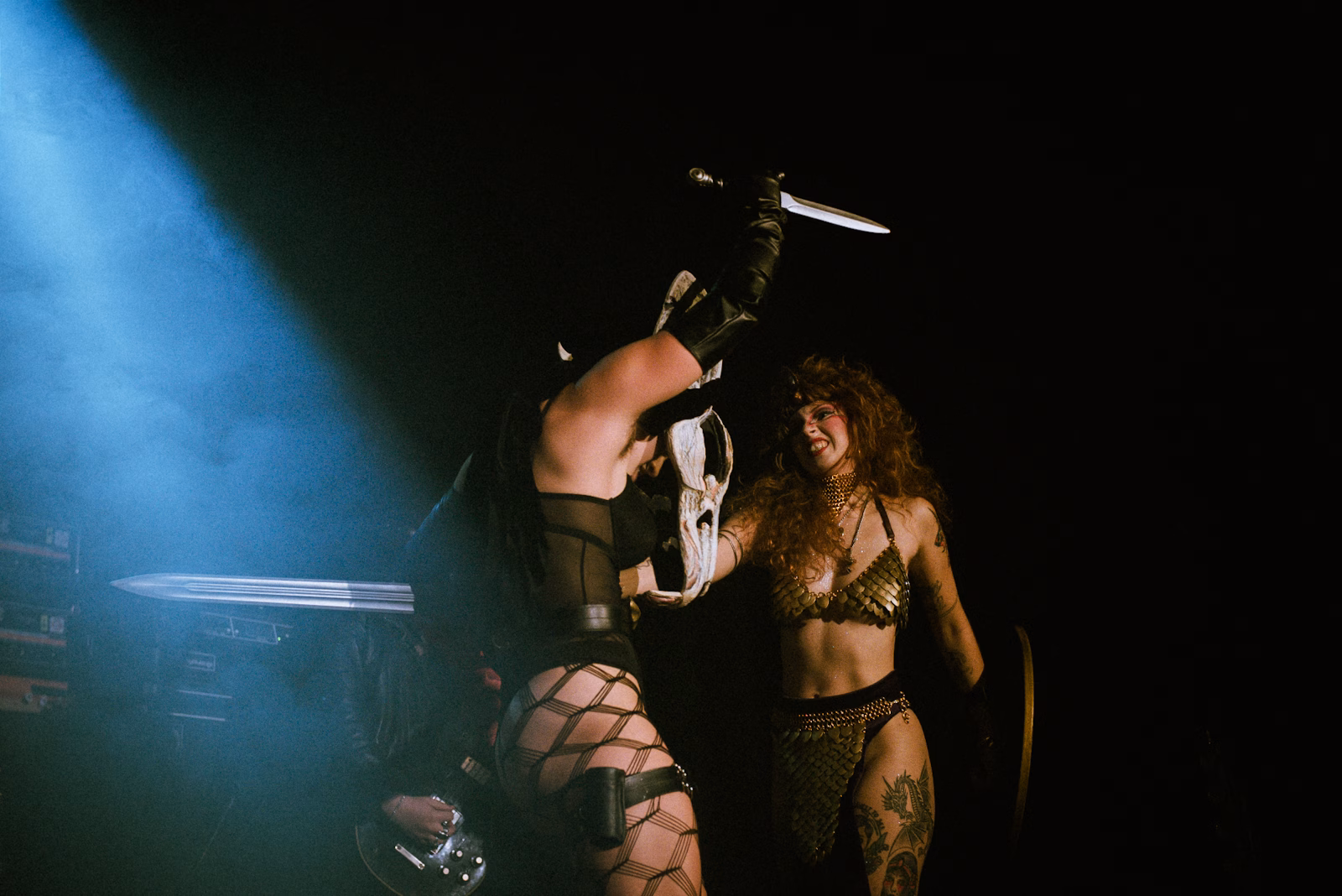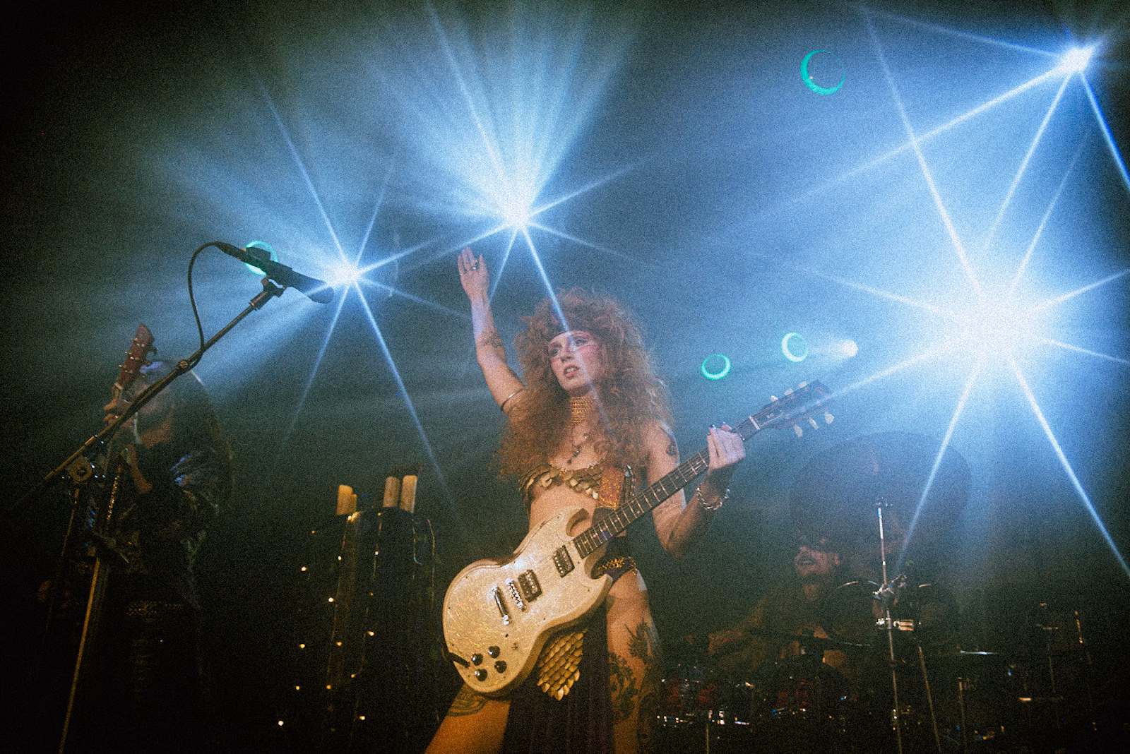 Back after a tantalising performance in the Underworld at DesertFest London, the Rat Queen and her supporters in all things magical continue their adventures above and below ground. In this new chapter, marking the release of their second album, The Bestiary, our heroes are tasked to protect the eponymous volume from the threat of the ever-evil Rat Reaperess. While the theatricality of the act is sure to divide casual listeners (as all things fun are wont to do when we take ourselves too seriously), be reassured that musically, there is nothing gimmicky about it. The Queen’s witchy vocals, equal parts sultry and commanding, are grounded by the focused drumming of the All-Seeing Druid (a beast and a half, pulling polyrhythms out of nowhere and pulling in your attention with his glowing eyes).