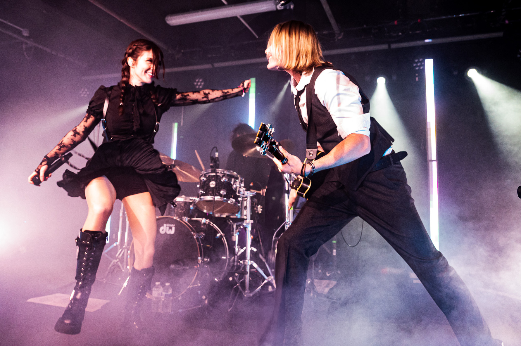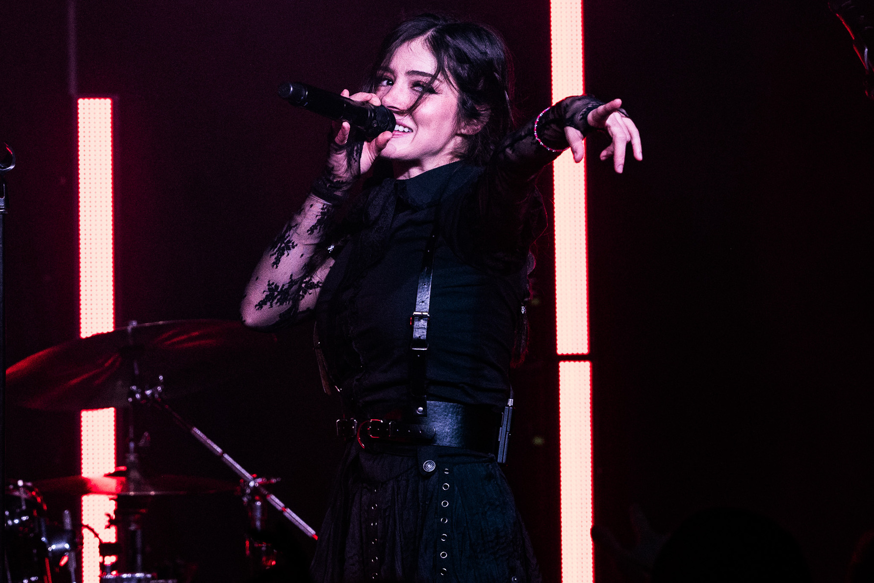 Chrissy is much more linked with Manchester than even the Brit on stage, saying just before ‘But, What If I Fly?’ She’s been bigging up the UK and Manchester specifically the whole time this tour has been booked, with this being the third time she’s performed here in just over a year, counting in duties with Against the Current. Amidst the rest of the set are all remaining tracks from VII, including the ethereal #If Looks Could Kill’ and the empowering ‘What If Sin Could Save Me’ and ‘Perfect Crime’, whilst also peppering a couple of ATC tracks like ‘Wildfire’ and ‘Legends Never Die’, the latter of which appeared in the encore. VOILÀ Alternatively took their share of the spotlight, lighting the room up with fan torches during ‘Cursive’ and ‘Long Story Short’. ‘Glass Half Empty’ & ‘Something Blue’ were probably two of their strongest of the night. The show’s structure relied mostly on the two vocalists rotating in and out, though a few tracks like ‘Wish It On You’ see them share.