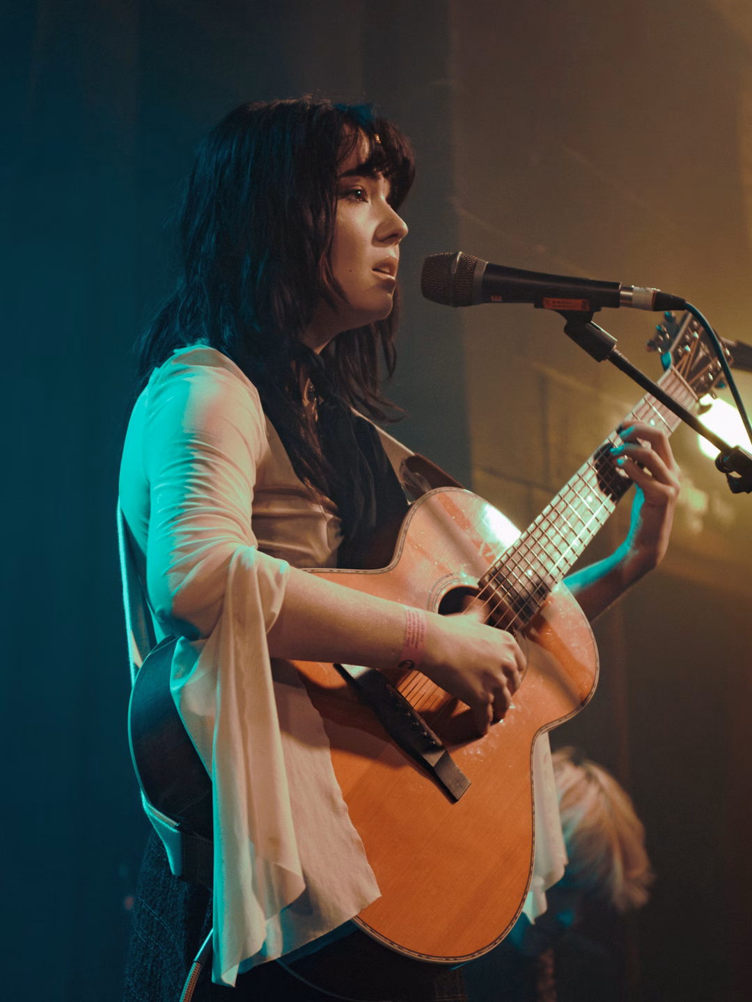 Arthur Black kicked off the evening at the Waterfront Studio with a selection of heartfelt ballads with a gothic touch. The hauntingly raw vocals were captivating, leaving the audience listening in silence and amazement. They put the room under a spell with their gothic-folk tunes that told the story of their life experiences with incredible storytelling and emotional vulnerability. Her vocals had an enchanting quality, comparable to Florence + the Machine mixed with Phoebe Bridgers, that ramped up in intensity as their set progresses.