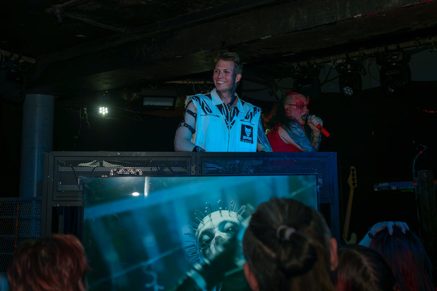 Shifting gears dramatically, Extize turned the venue into a dance floor with their energetic DJ-and-vocalist setup. Accompanied by compelling visuals, including nods to Hellraiser, their lively set had fans dancing, infusing the evening with an upbeat, club-like atmosphere.