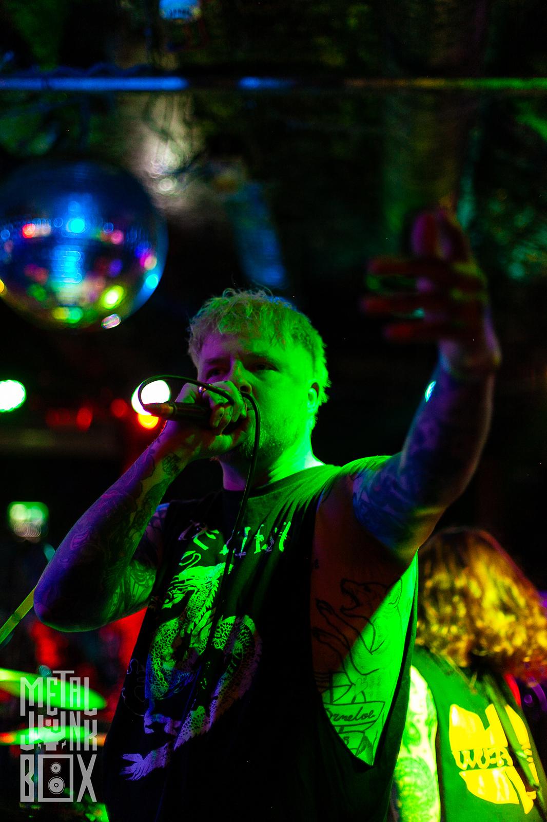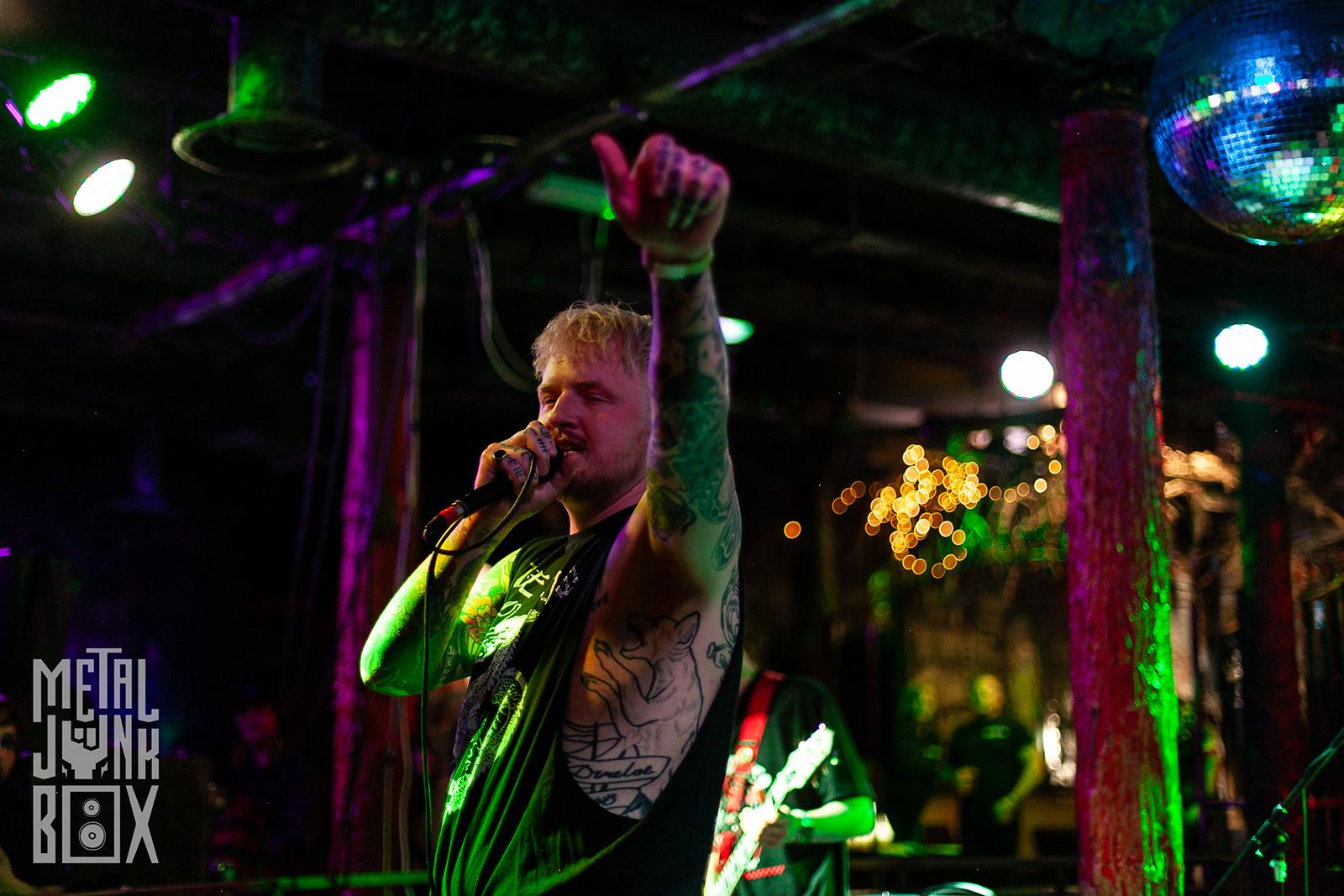 Announcing the final song was about to begin. A full around-the-room circle pit was started around the stage of Satans Hollow with band members and fans enjoying the final moments.