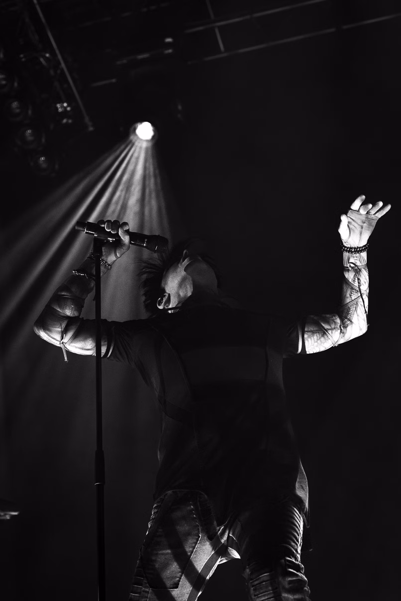 It was a family affair – similarly to Gary Numan’s 998 – 1000 gigs at London’s Electric Ballroom back in 2023, the opening act was his daughter Raven Numan, who has come in leaps and bounds in those 2.5 years. She performed a captivating set featuring the growing collection of original singles as well as a Nine Inch Nails cover ‘In This Twilight’, her latest release. It is the testament to the strength of the Numan fanbase how it extends to the whole family. By the time Raven was on stage, the Apollo was already bursting in the seams and the front row was shouting enthusiastic cheers of support throughout her whole set.