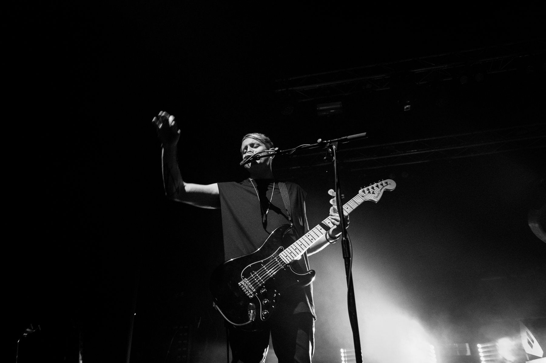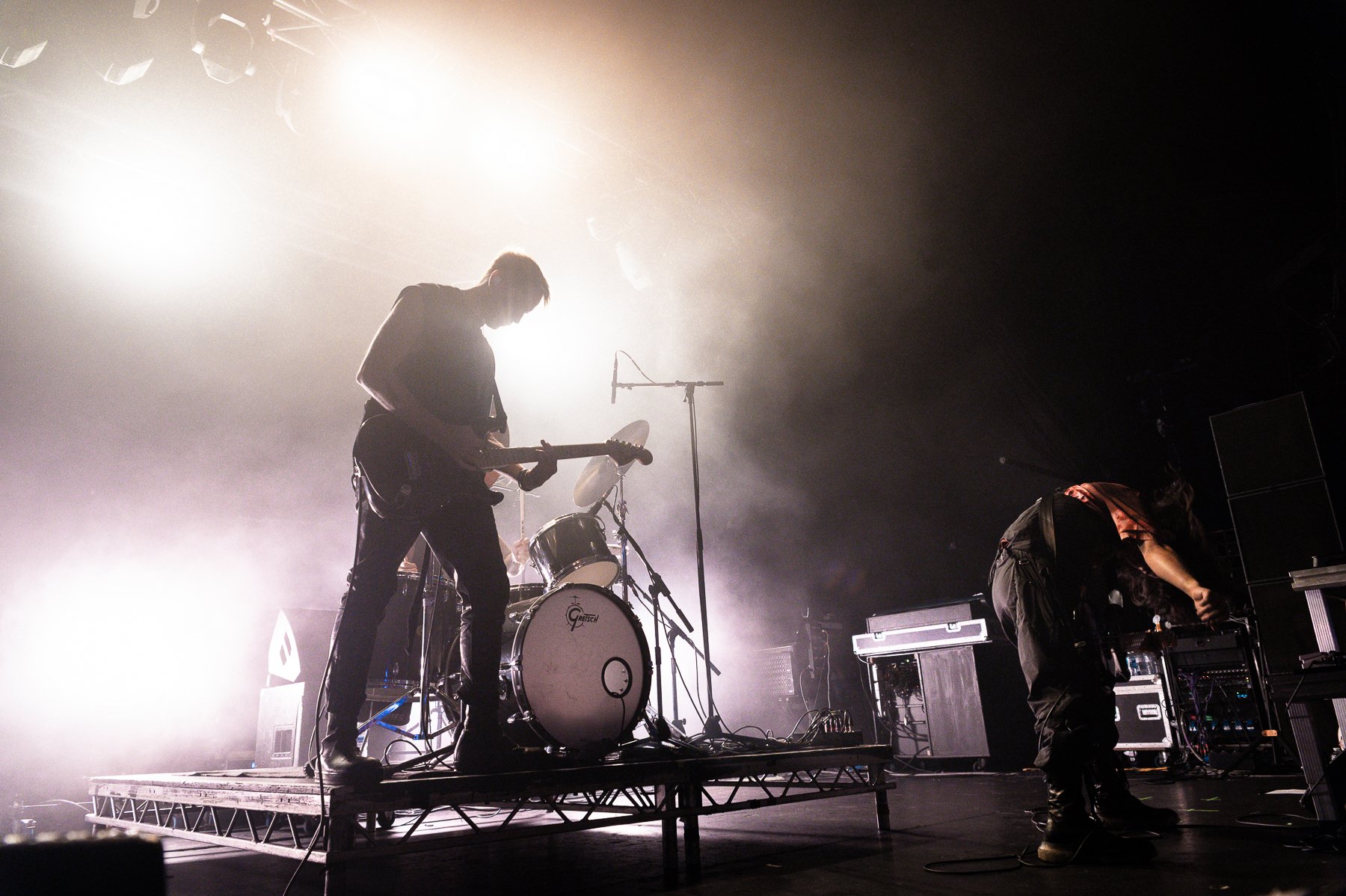 HEALTH opened with ‘IDENTITY’ and ‘GOD BOTHERER’, some of their earlier tunes, before hitting hard with ‘CRACK METAL’ that introduced ‘RAT WARS’, their recent album, to the evening. Their energy on stage is unparalleled. Johnny throws himself around the stage, commanding the bass and synths, while Jake’s crystal clear vocals and poise create the perfect blend that I love about HEALTH – the synergy of the chaos and noise with understated elegance.