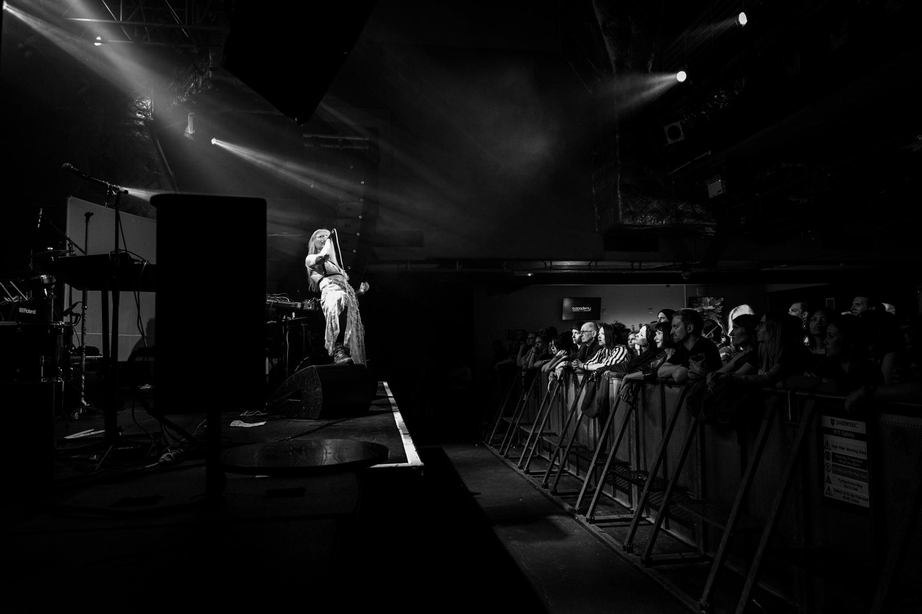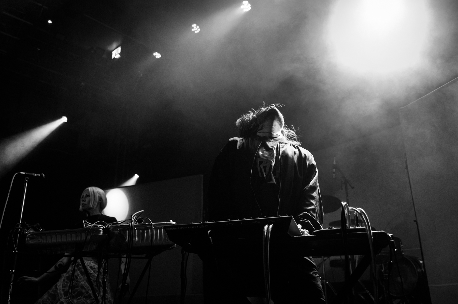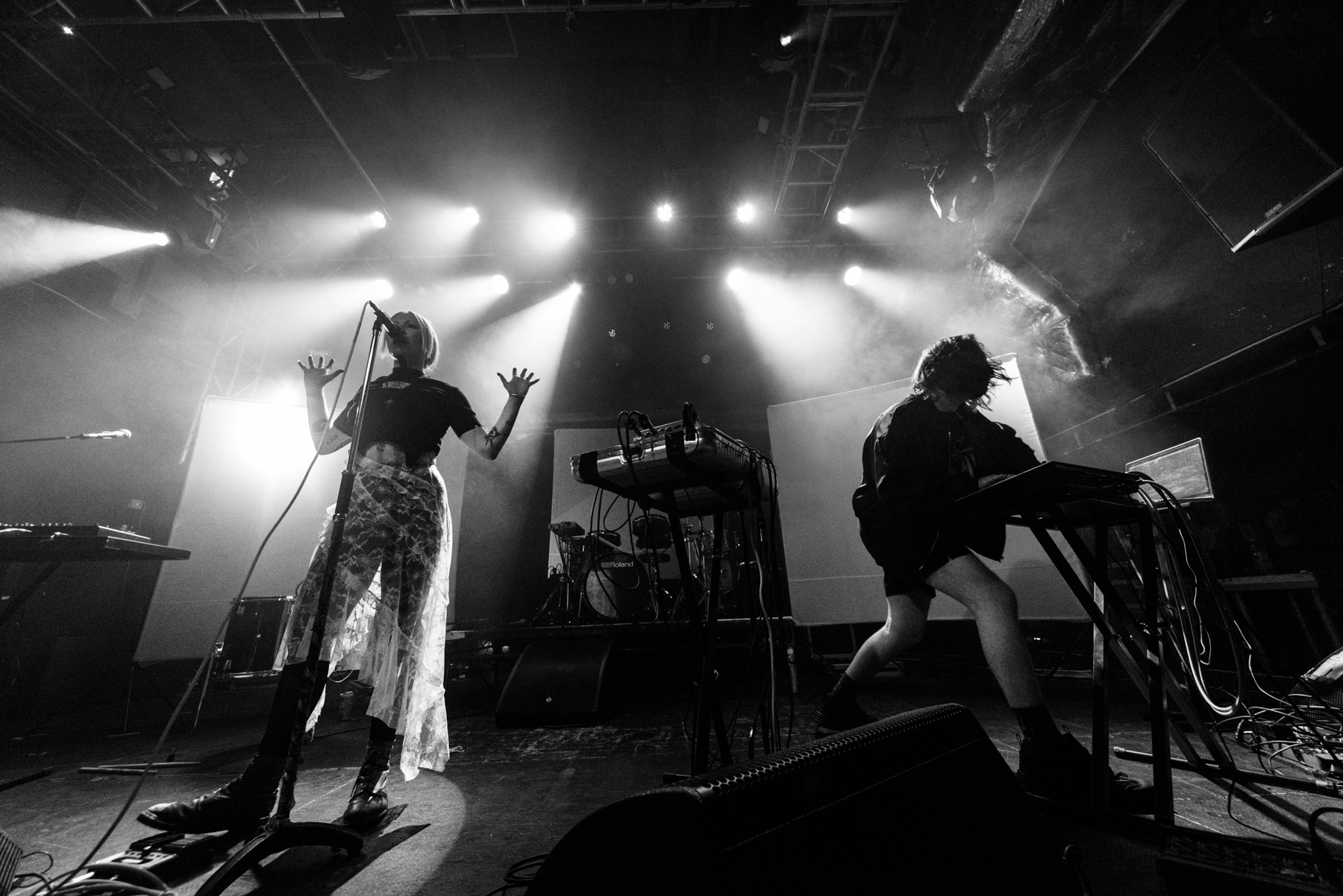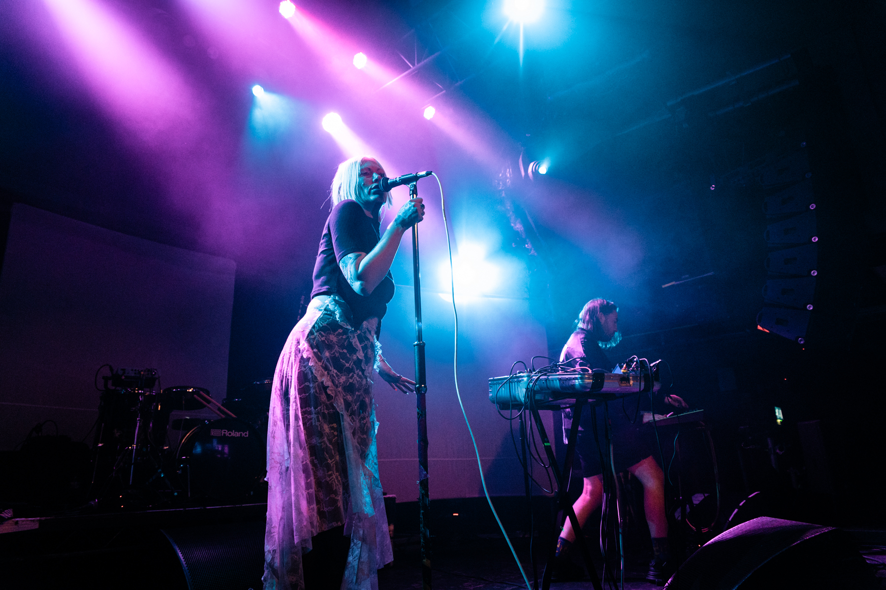 Opening the night’s proceedings were harsh wave duo Holy Braille from Sunderland, who went down an absolute treat with the London crowd. They delivered a powerful set of heavy industrial noise, dark wave computer punk that would have been perfect for Electrowerkz around the corner, and judging from the amount of mesh, fishnets and platforms in the room – this was exactly the crowd to appreciate it, with awe struck faces and appreciative nods across the front rows. Elliot’s masterful synth work combined with Steph’s powerful vocals reminded me of the early IAMX records, took me back to my electroclash youth (with more of an industrial spin) – if you like Arch Femmesis, Ladytron or Fluff, they will be up your street.