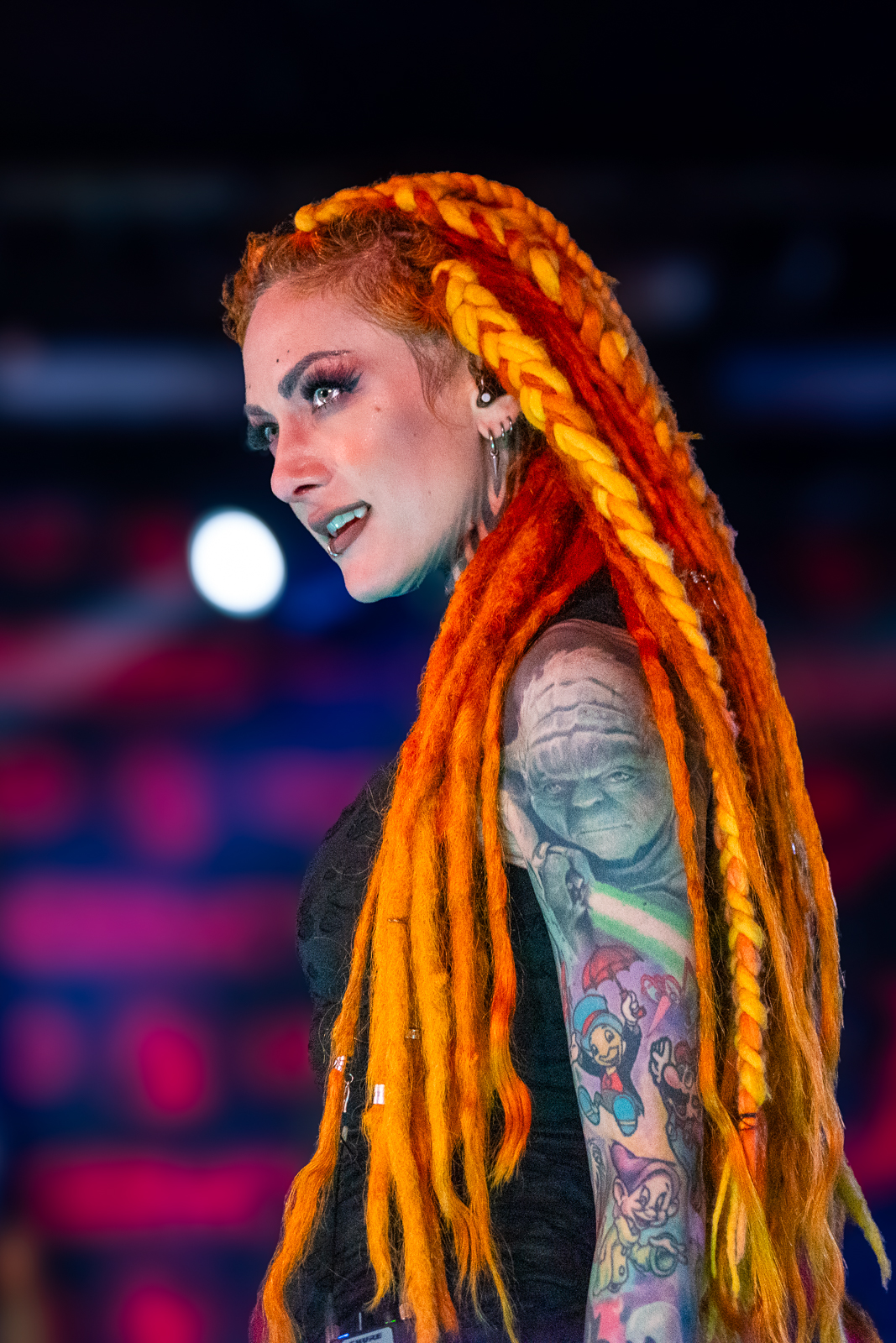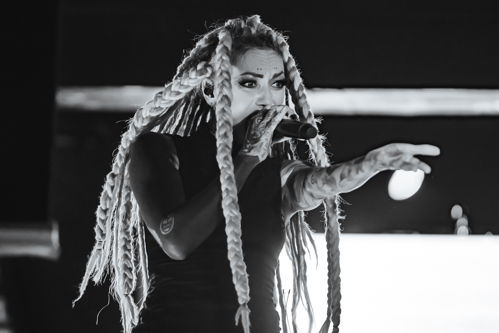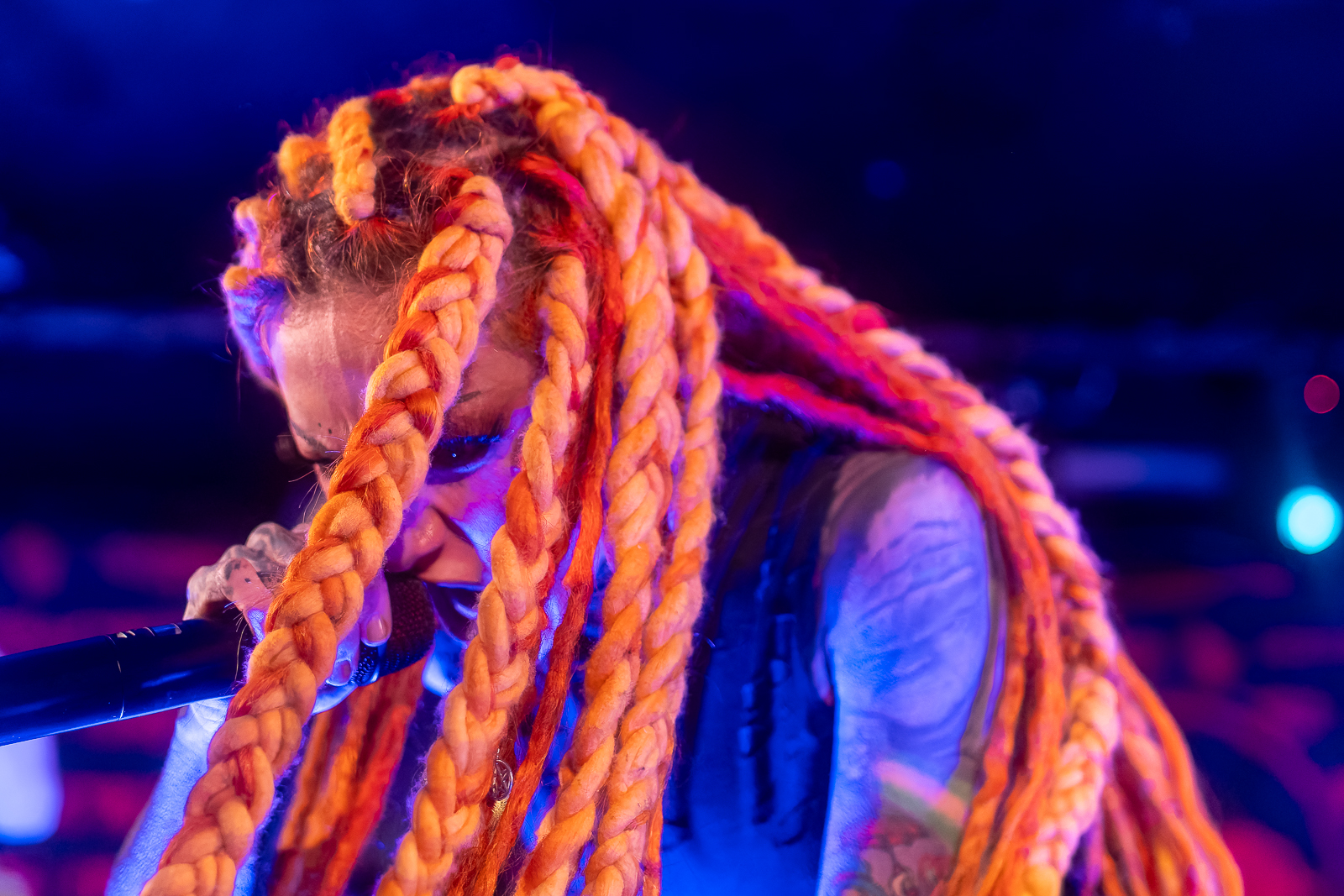 Infected Rain’s setlist featured “The Realm Of Chaos” and closed with “Sweet, Sweet Lies,” among other tracks, keeping the perfect blend of nu-metal, alternative metal, groove metal, and melodic death metal at their high during the whole concert. Lena’s stage presence, as usual, has been remarkable, going all around the stage, interacting with the crowd and of course, having the dreads flying everywhere.