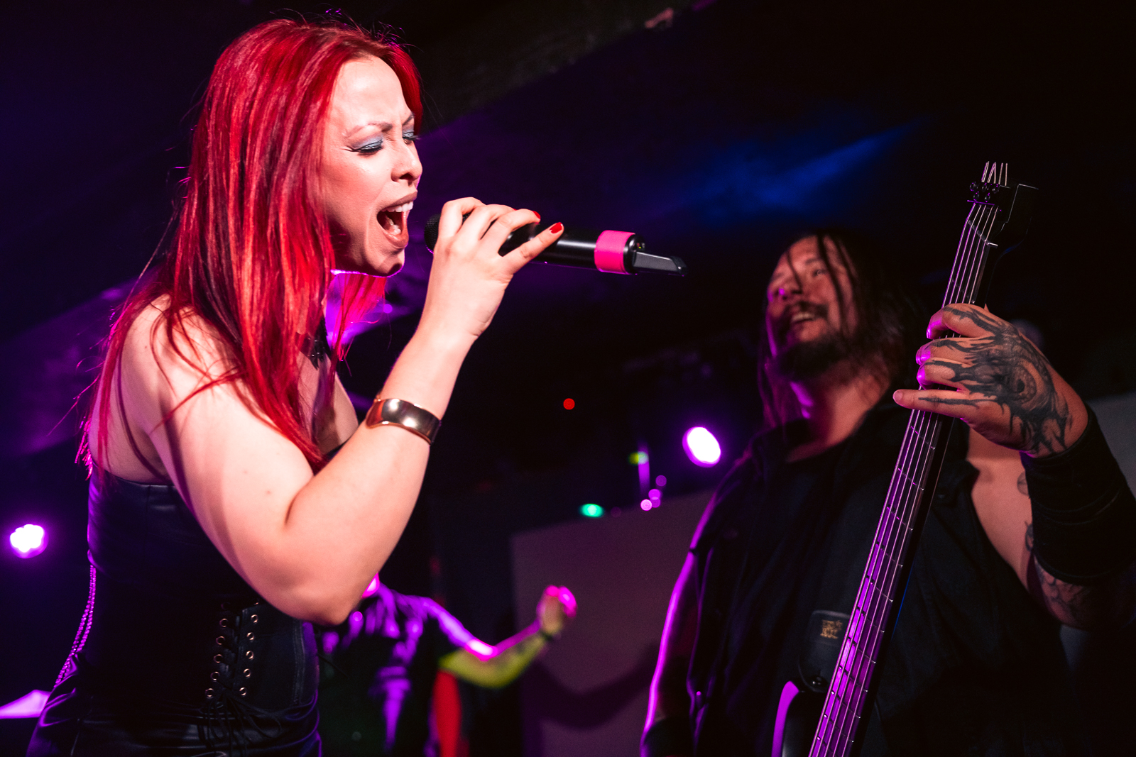 Headlining the night was Moldova’s Infected Rain, which is not new to any of us, and has been consistently great live for years. This is the second time that we have been able to see Infected Rain live in such a short period, and once again, they did not disappoint. Earlier on the set Lena Scissorhands made an acknowledgement of a previous concert where someone passed out because of the heat, but noted that although cold outside, the venue was quite warm, and made sure to ask for everyone to enjoy their time and have fun