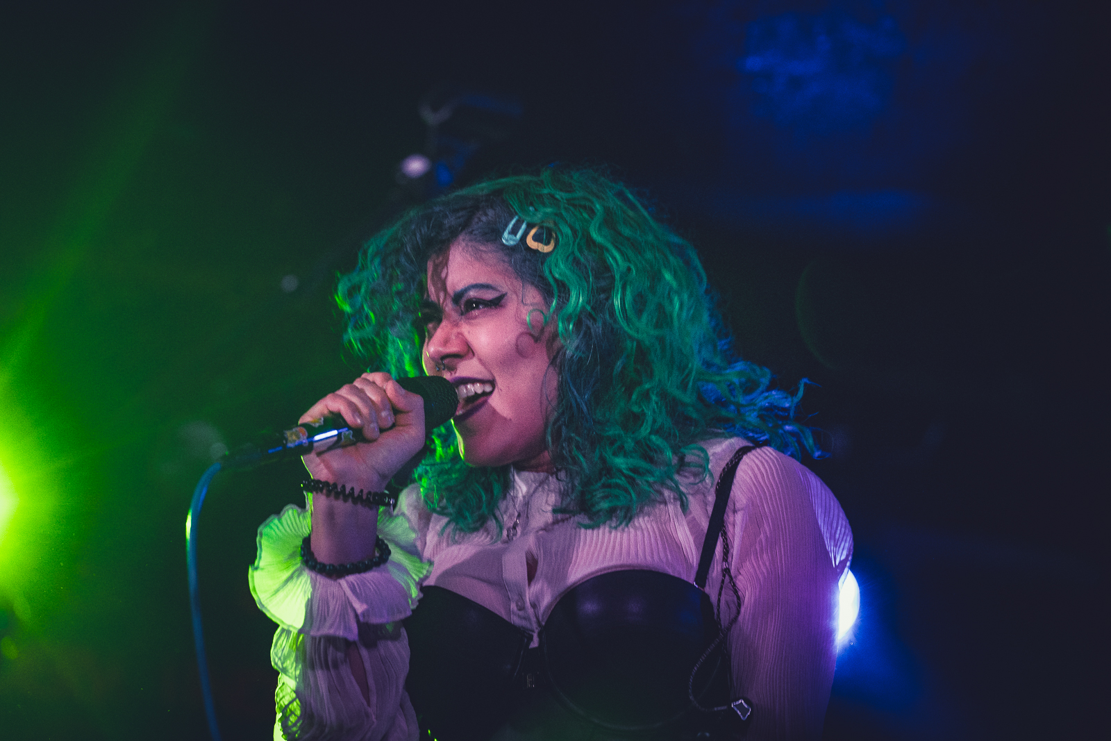Opening the night was Germany’s Skin On Flesh from Berlin. I’ve arrived at the middle of their set, but was clear that this was going to be a great night, with a lot of energy coming from Laura Jimenéz on the vocals with her bright green hair, bringing their songs with heavy influence on the 2000s punk rock genres.