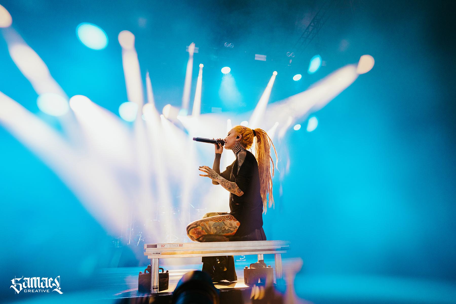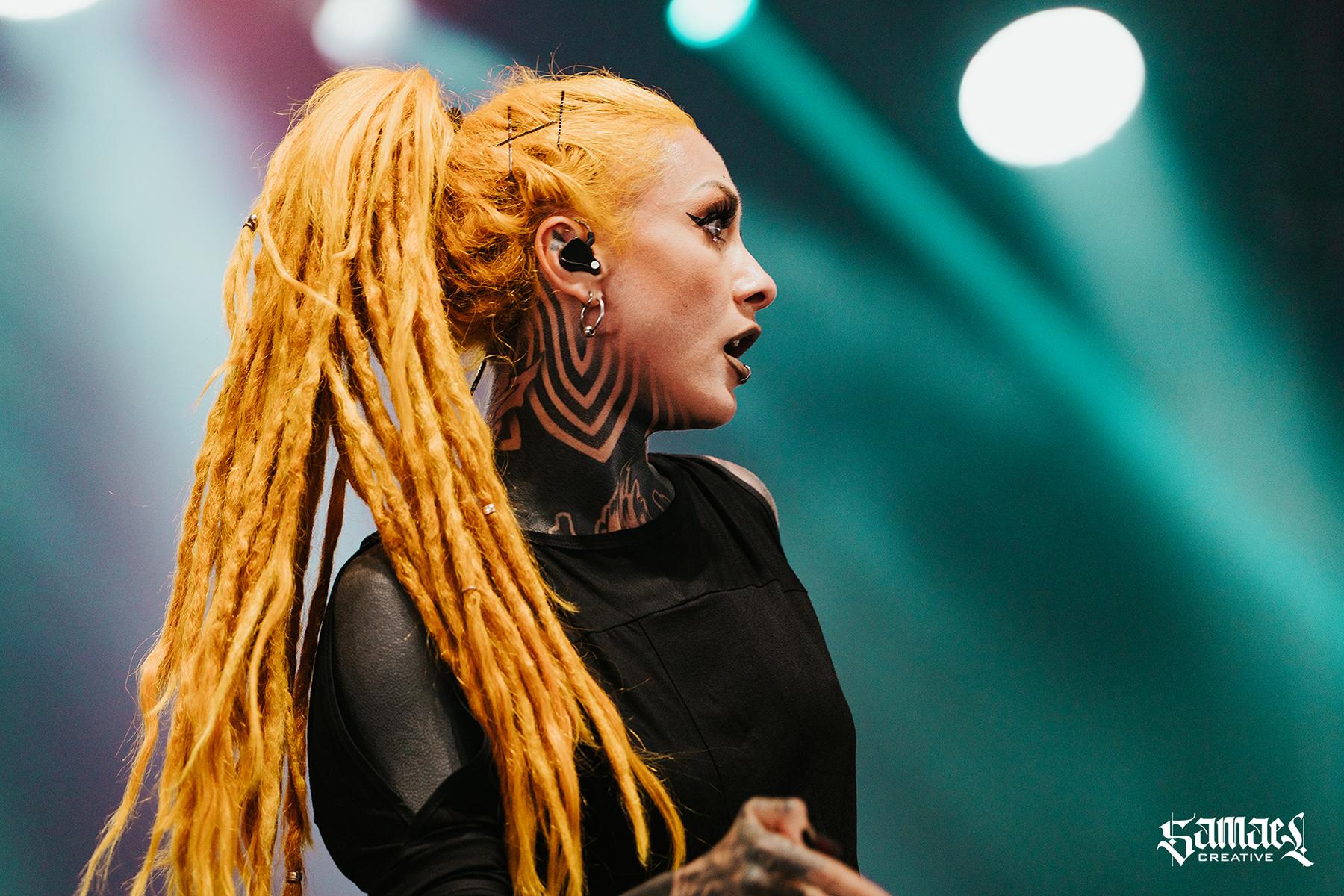 Infected Rain’s music is a potent fusion of nu-metal, metalcore, and alternative metal, anchored by heavy guitar riffs and the commanding vocals of Lena Scissorhands. From the moment they unleashed their first chords, the tented confines of the Radio City stage reverberated with raw intensity, perfectly suited to their explosive style.