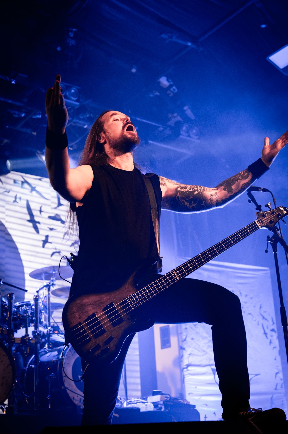 Niilo Sevänen’s guttural vocals delivered a precise, yet emotionally packed performance, proving why that album is regarded as a masterclass in melodic death metal (as I educated myself on the way home). Heaven was also the perfect setting – intimate enough, but with great a great stage and lighting that added to the immersive, enveloping experience. The opening triptych of The Primeval Dark, While We Sleep and Revelation sounded huge. It was clear as day that the audience was absolutely loving it – especially as hearing ‘Shadows of the Dying Sun’ from start to finish meant that some of the tracks were being performed live for the first time – either in a long time or genuinely never before. This was the case with Lose to Night and Collapsing Worlds, the fifth and sixth tracks on the album, which got the delighted crowd surfers going and they were soon coming through the pit barrier one by one.