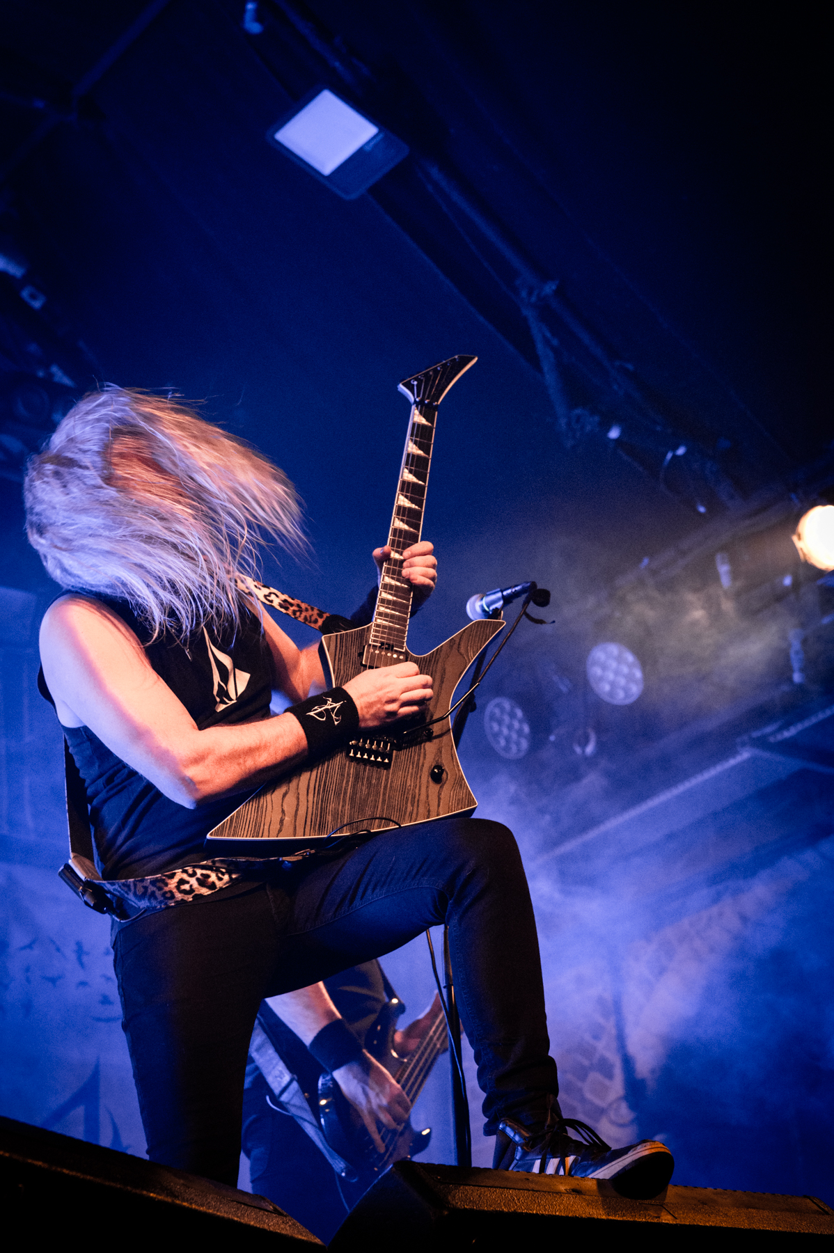 Omnium Gatherum‘s stage presence was simply a hoot. Vocalist Jukka Pelkonen had a brilliant rapport with the audience and his band, with frequent jokes ‘can you guess what songs we’re going to play next?’ never landing flat. He is a masterful frontman, commanding the room with ease and sense of humour and the crowd’s enthusiasm for each coming track was unwavering. He delivered growling, powerful vocals with impeccable precision. Elsewhere on the stage, the gig – and the tour – became a showcase for guitarist’s Markus Vanhala’s versatility, as he plays in both bands. The shifts between emotionally charged melodies and lyrics and ferocious, powerful riffs were seamless and the energy never faltered. Tracks like New Dynamic, Nightwalkers, The Unknowing and Living in Me were particular crowd favourites and the whole room headbanged or threw horns int he air in unison at Pelkonen’s command.