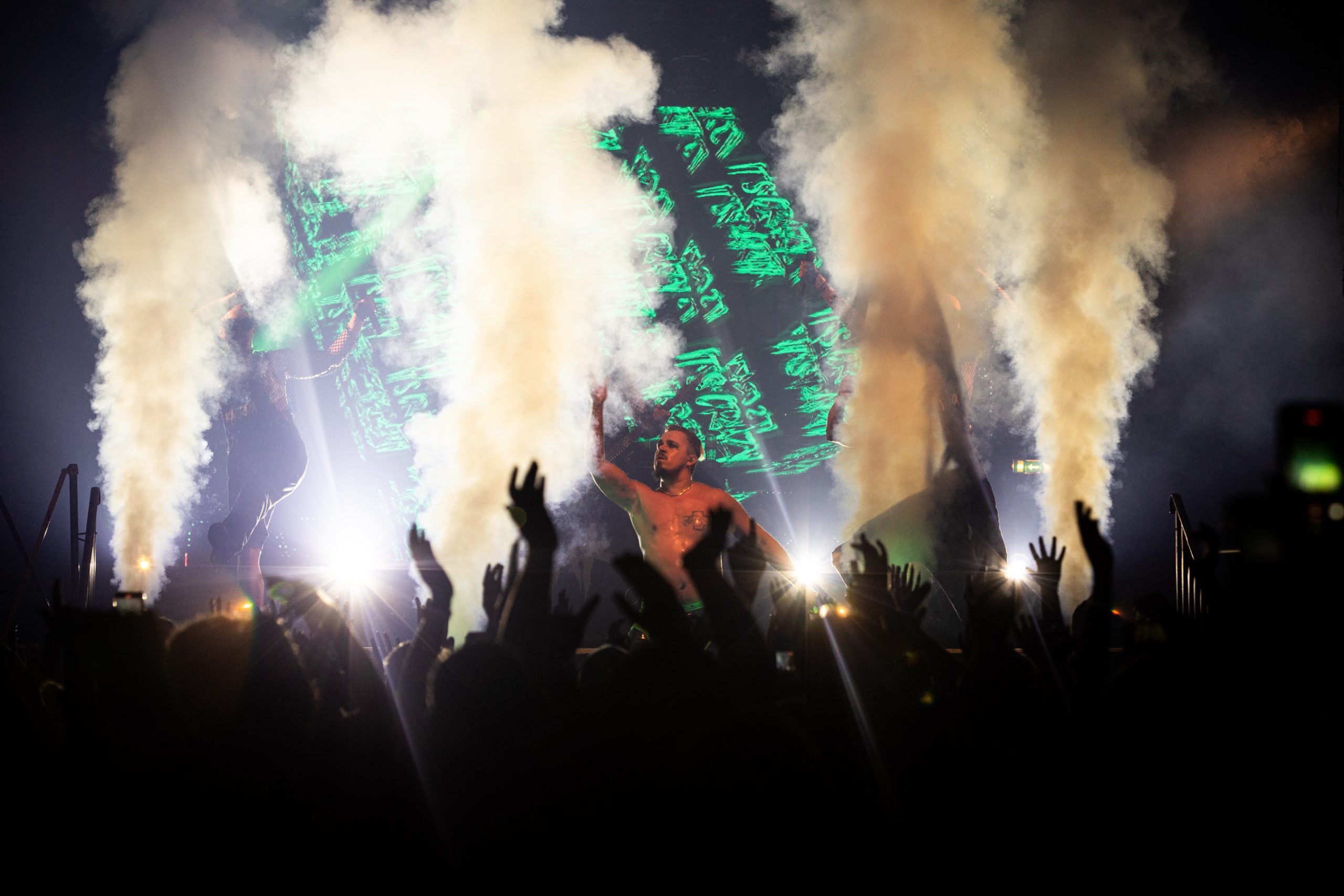 Once Käärijä finally hit the stage with ‘Intro,’ the crowd exploded. He followed up with ‘Huhhahhei,’ a high-energy opener that made it clear he wasn’t holding back tonight. From there, Käärijä dived into ‘Ready To Go,’ an unreleased track making its live debut, which already felt like an anthem. And then came ‘Takavoltti,’ another unreleased debut, which brought out all kinds of fun energy, especially with a random guy on roller skates, pants-less and goofing around on the stage. The crowd loved it, and everyone was fully in on the joke.
