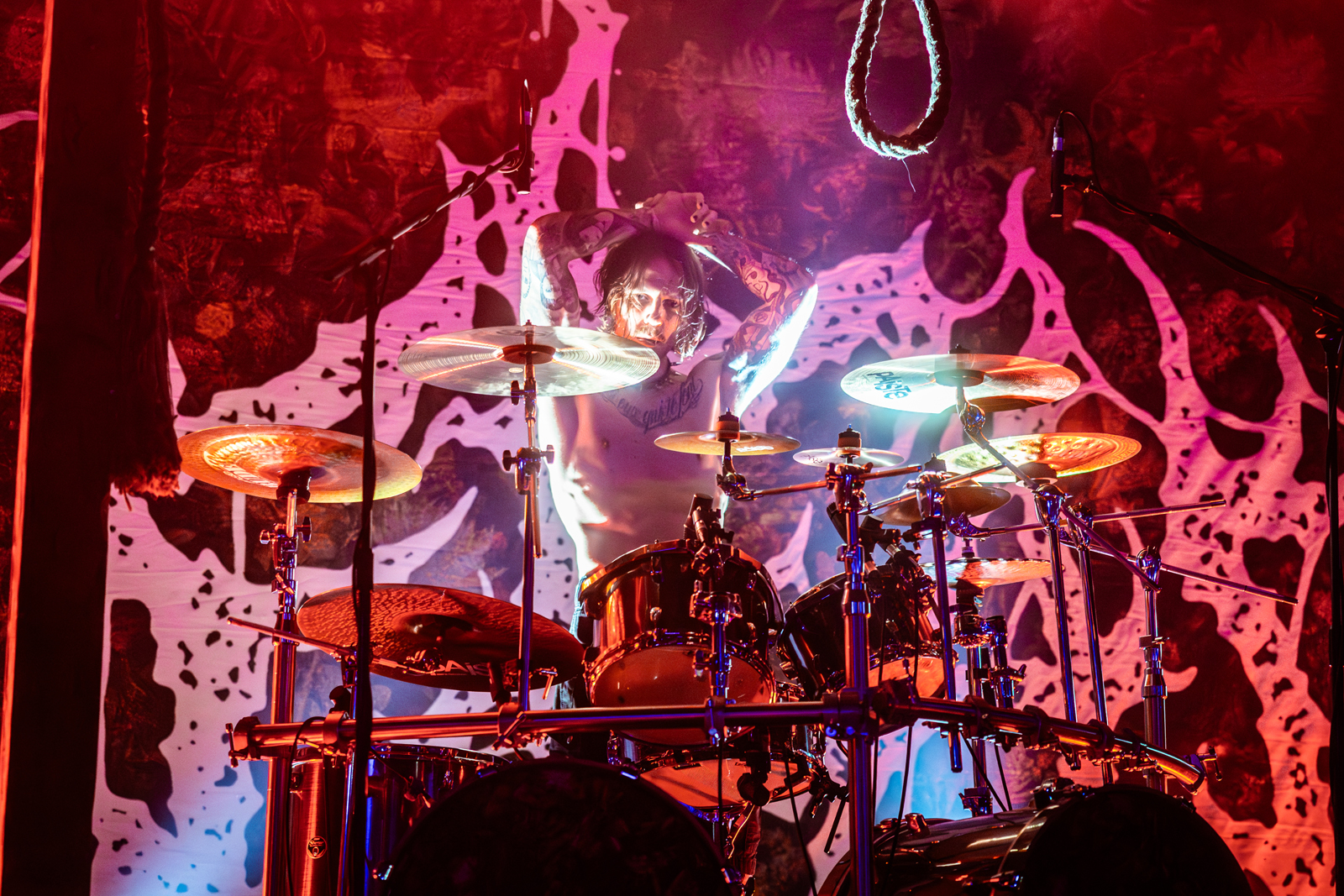It was truly a show to remember, the lighting setup for this tour was particularly impressive, with strobes and moles perfectly timed to each breakdown. The looming noose above drummer Cassiano “Cassi” Toma added an extra layer of theatrics, reinforcing the dark and heavy aesthetic of the band.