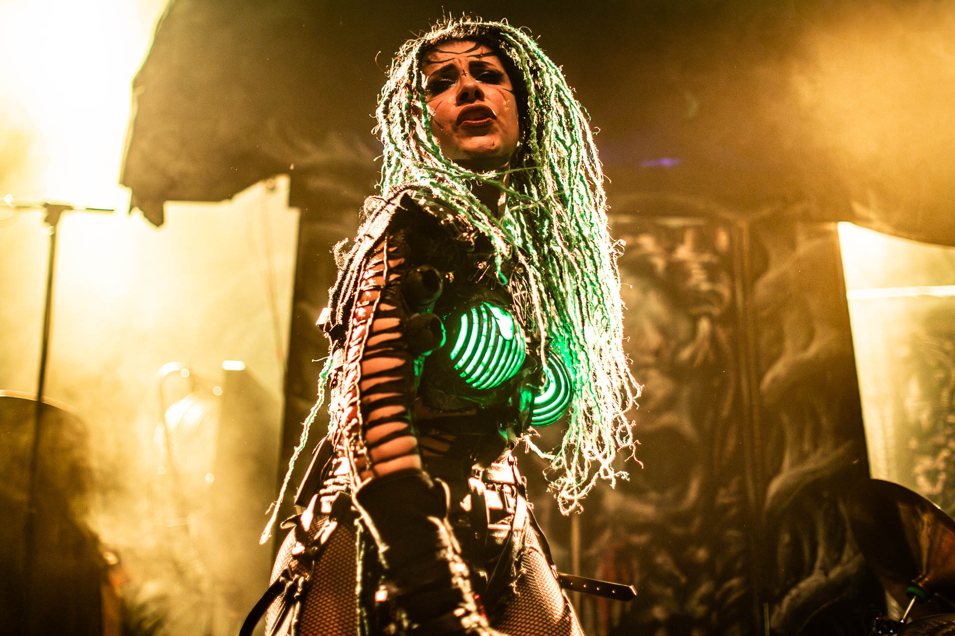 Sick N’ Beautiful invades the stage in Manchester this evening kicking off their set with ‘(Human) It’s Overrated’ they are loud and have come out to party in style with their unique and incredible style blend right into the evenings set. The five piece who crash landed in Italy Rome fill up the front of the stage but make it work perfectly for a high powerful performance. Their horror, alternative, sci-fi style just works so well. They sound incredible throughout their performance with simple costume changes throughout the set along with the music to make it a well rounded performance. Other songs on the setlist included ‘Drop It To The B’, ‘Tonight We Go To War’ and ‘New Witch 666’.