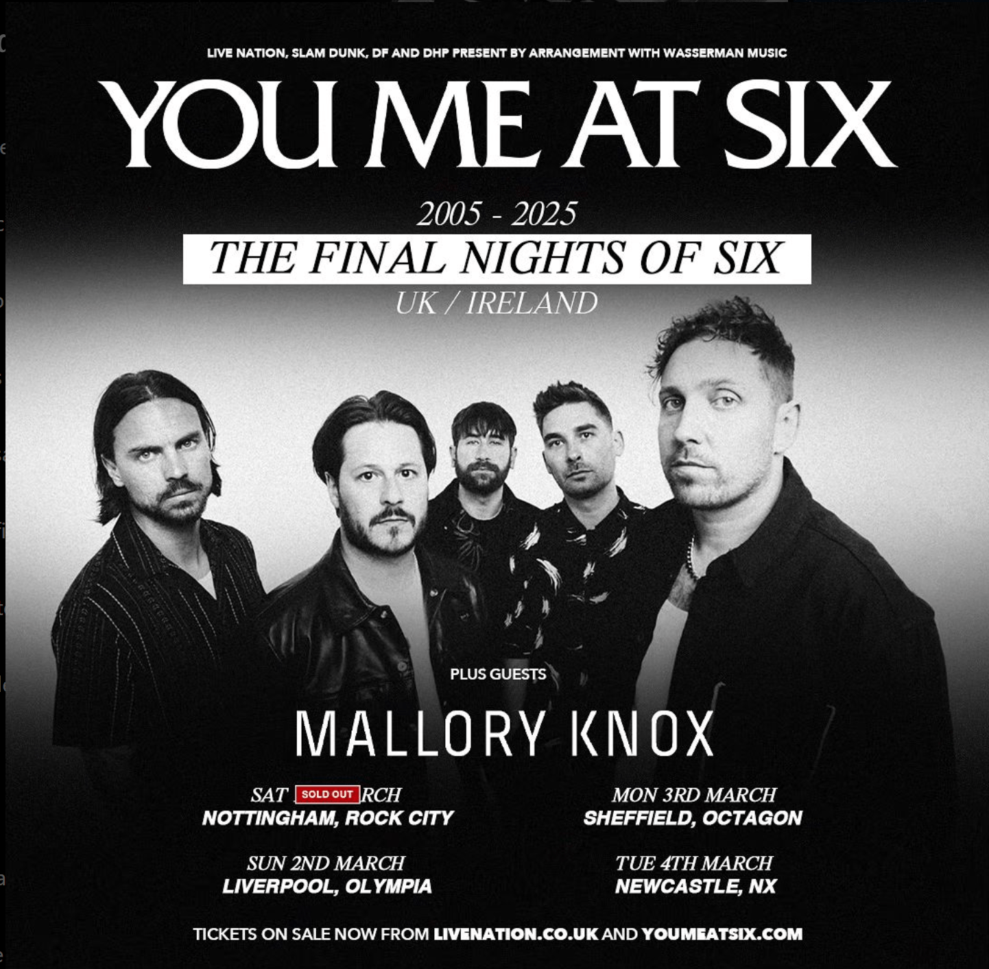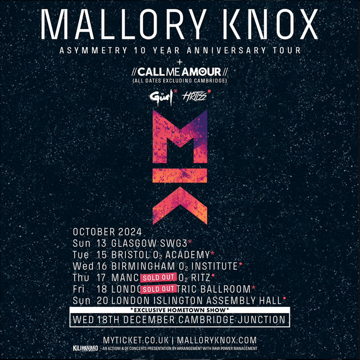 Mallory Knox has a few last remaining dates on their Asymmetry 10th anniversary tour with a Home-Town show in December and also a handful of dates as support for You Me At Six in 2025