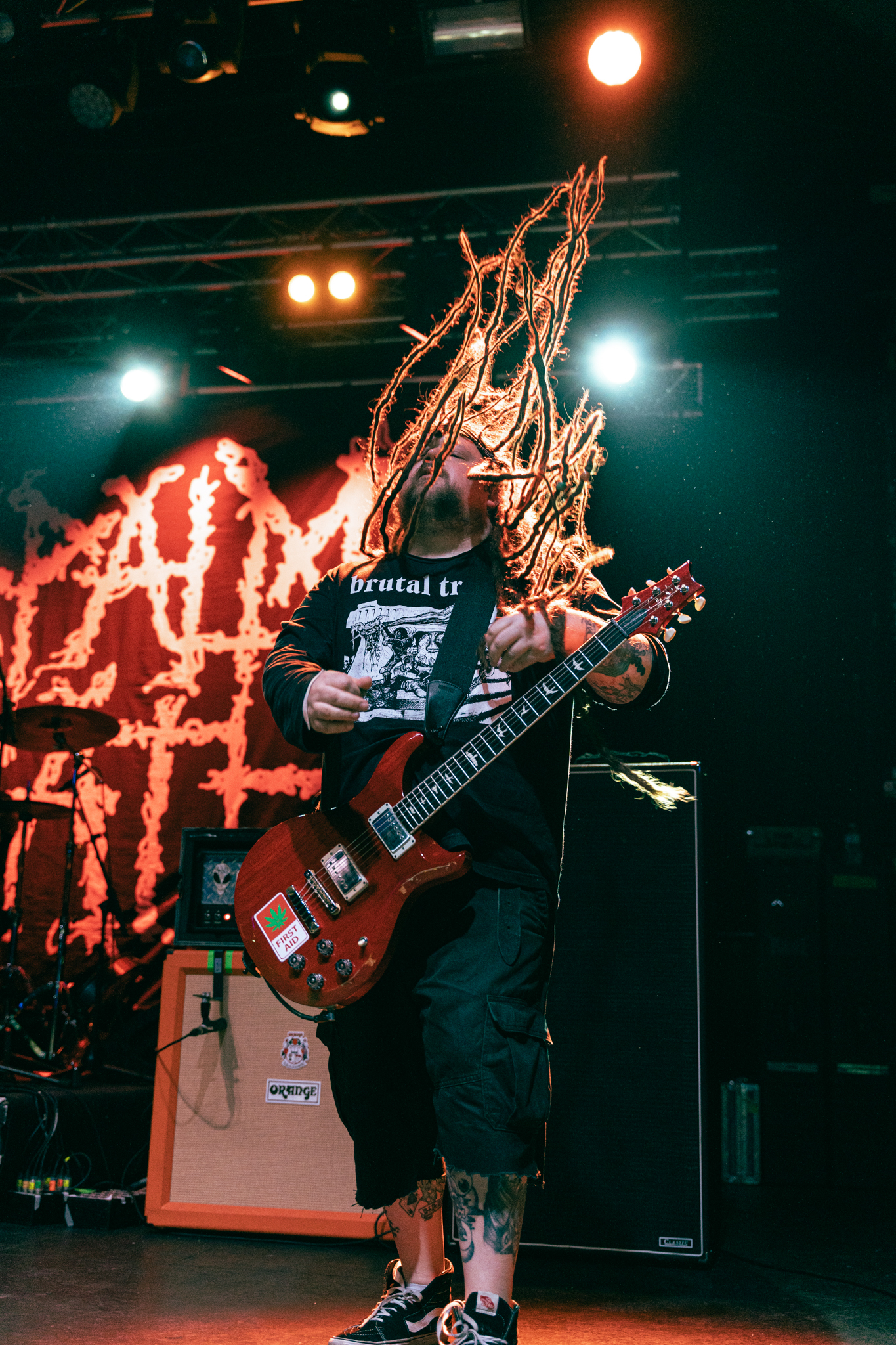 As the set continued, Napalm Death ramped up the energy, and before launching into “Nazi Punks, Fuck Off,” Greenway once again highlighted the relevance of the song in today’s world. The crowd responded enthusiastically to the call for unity and resistance against hate. The band’s performance came at a perfect moment. With politics at the forefront of many people’s minds, being in that crowd surrounded by others supporting the right side of politics felt empowering.