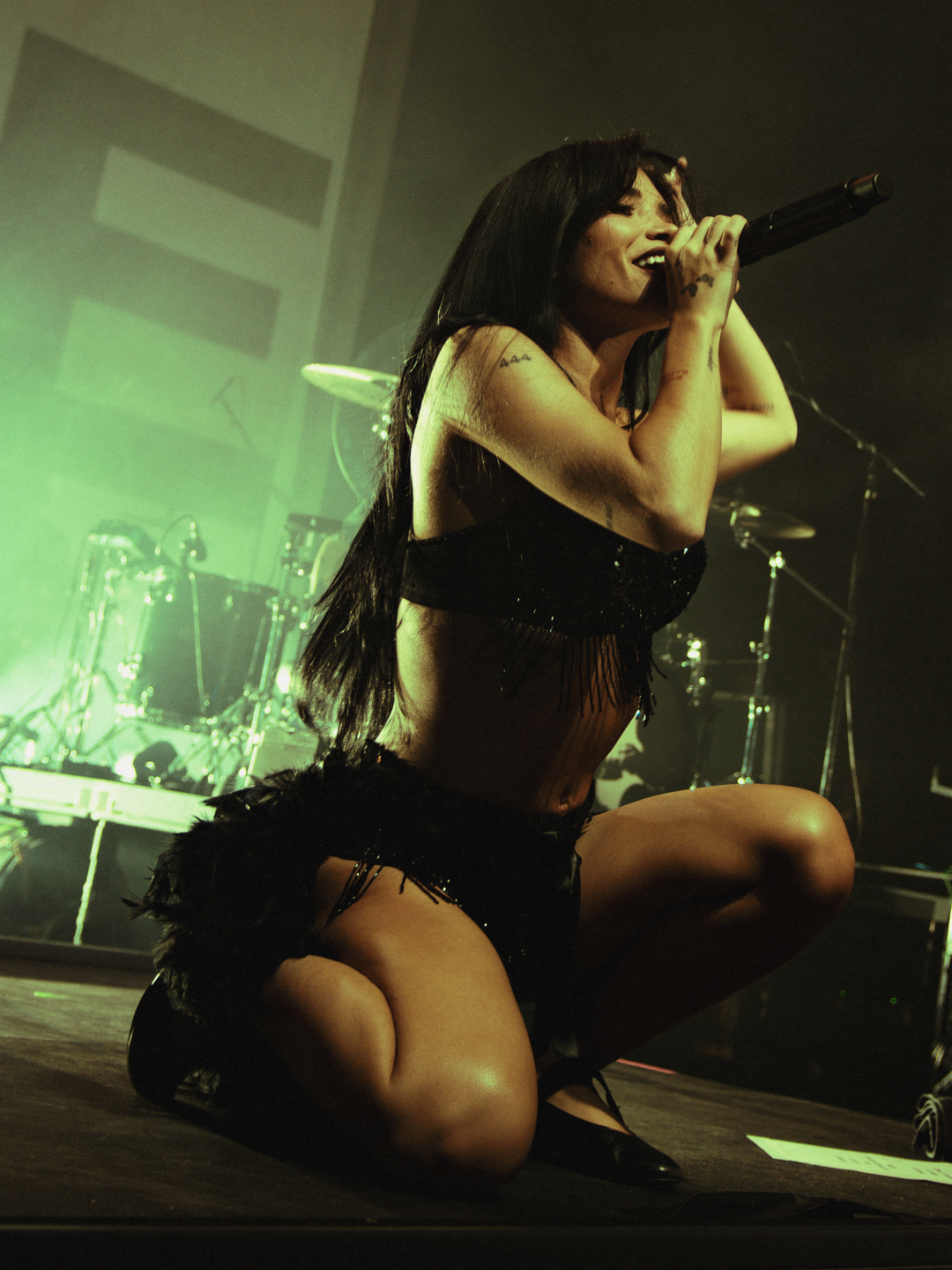 Nessa Barrett took to the stage dressed in an exquisite black feathered ensemble with her purple bass, starting her set off strong with ‘Dirty Little Secret‘. She is back on a headline tour with her latest album ‘Aftercare‘, playing 2 sold out nights at O2 Kentish Town Forum in London. Just 2 years ago she was playing venues three times smaller, this shows how much she has grown as an artist in the last few years and not just based on the size of her fanbase, she seemed much more sure of herself as a person and artist on stage too. Her stage presence and confidence have grown massively.