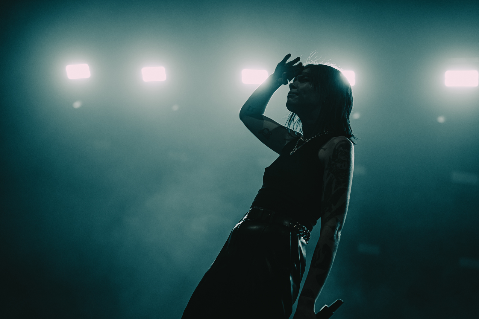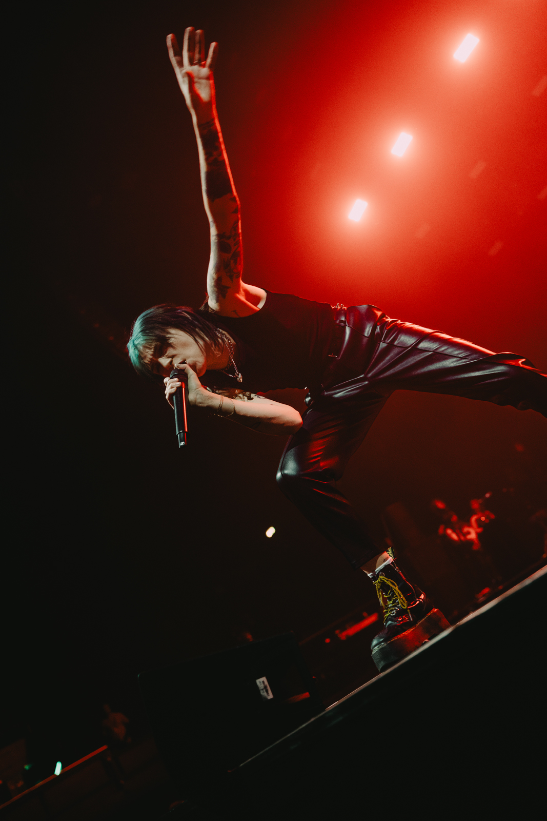 They dive into more musical madness, recharging themselves with the crowd’s buzzing excitement in a beautiful energy exchange. Some parts of the set are slower-paced and melodic but quickly turn chaotic and punk. Every arm in the arena is up, swaying side to side. Circle pits open on Han’s cue of “Scream if you wanna go faster, Wembley!” as the pounding vibrations of the instruments reverberate through our bodies.