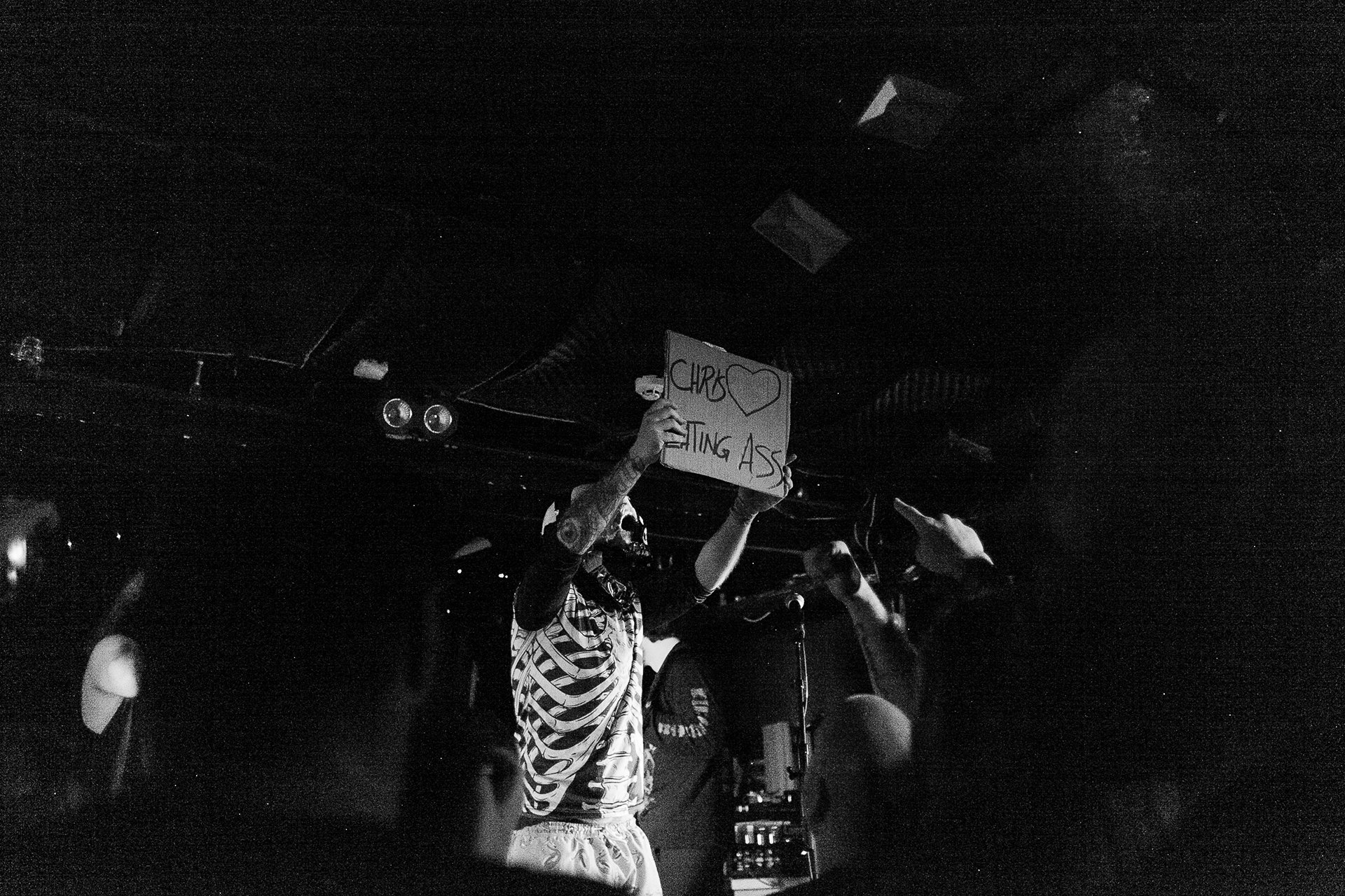 Throughout the set signs informing the crowd to ‘Mosh’ ‘Let’s Party’ ‘Drugs’ are held up and Party Canons fans go wild for it. Giant inflatables and push ups where also on the cards for tonight. A stage invasion of Street Soldier, Pintglass and a sea of high vis vest just completed the chaotic energy Party Cannons sound was IQ Blowing and going in to the show with high expectations of the band where only blown out of the water and into another realm. Party Cannon are only going to get bigger and bigger over the next year and I’m looking forward to seeing where the party goes next!