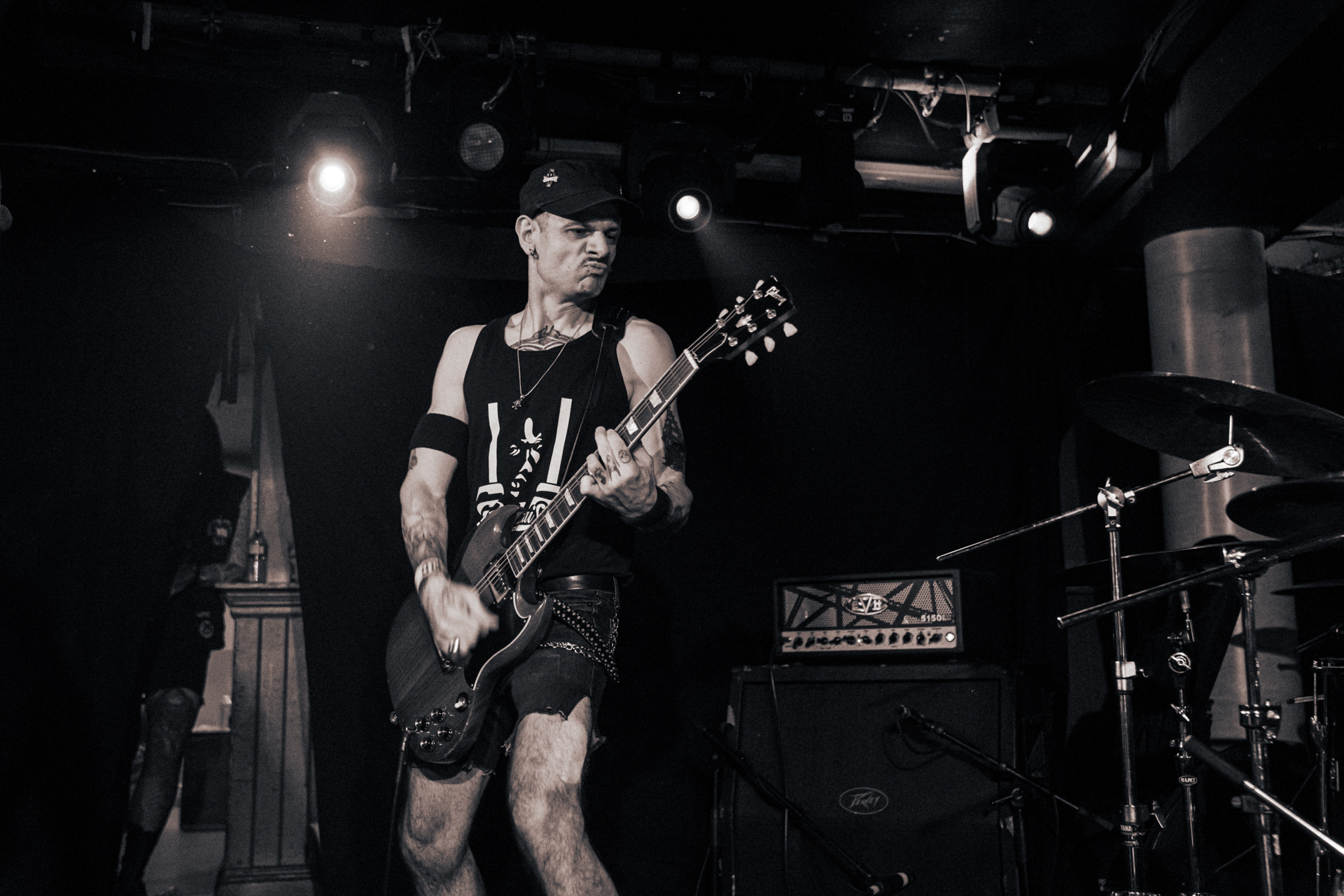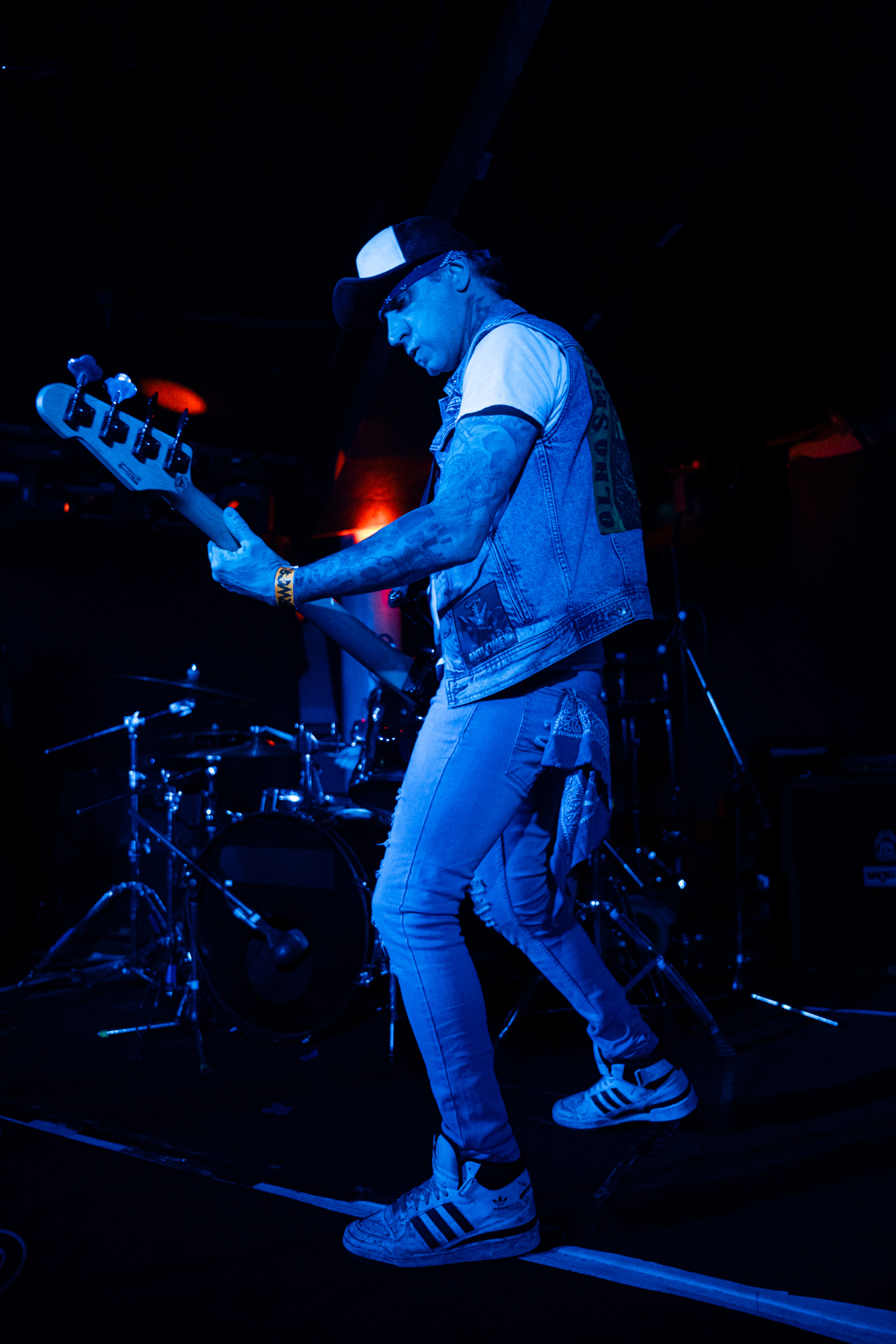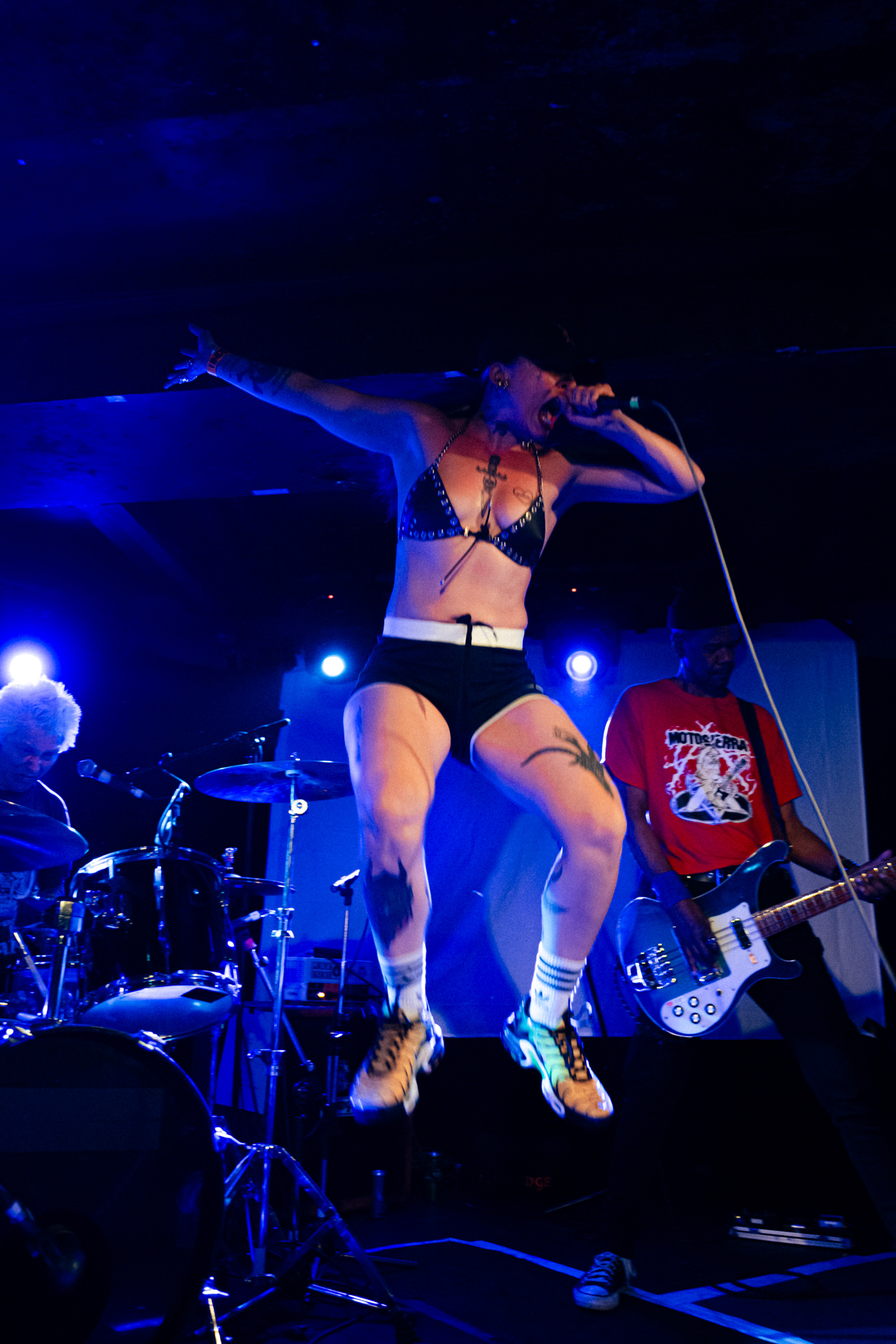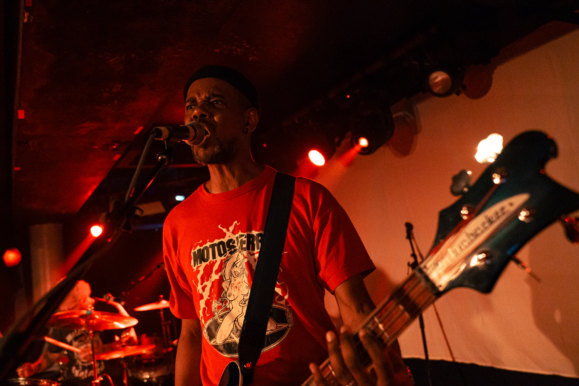 Opening the night was Fantazmaz. Led by a very energetic performance of lead vocalist Thamila, this exciting punk band formed by Brazilians based in London managed to get everyone out of the bar and into the pit as soon as the first riffs dropped. Their high-energy set was the perfect way to kick things off and paved the way for Nottingham quartet The Vile. With their setlist scribbled on beer cardboards, the group kept the momentum going, giving way to one of the many mosh pits and stage dives of the night.