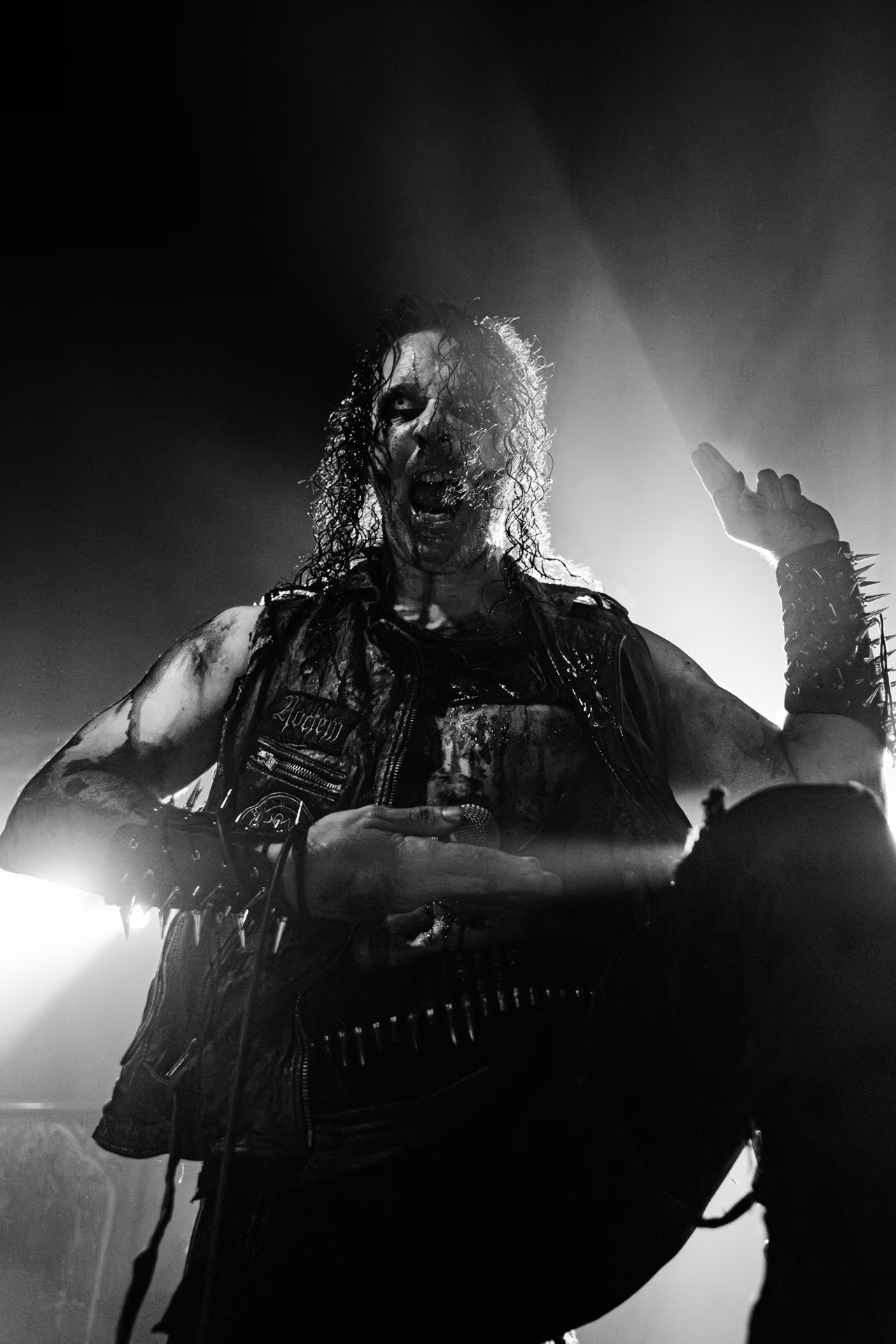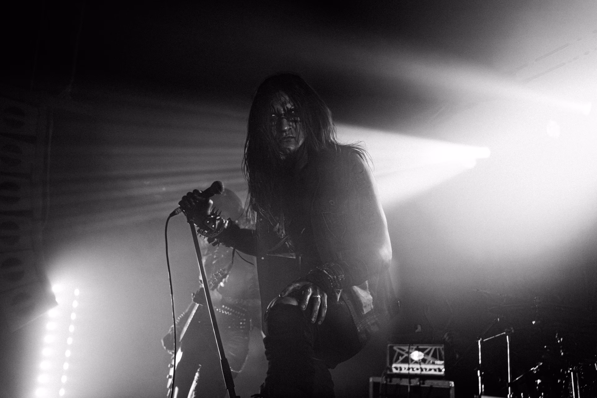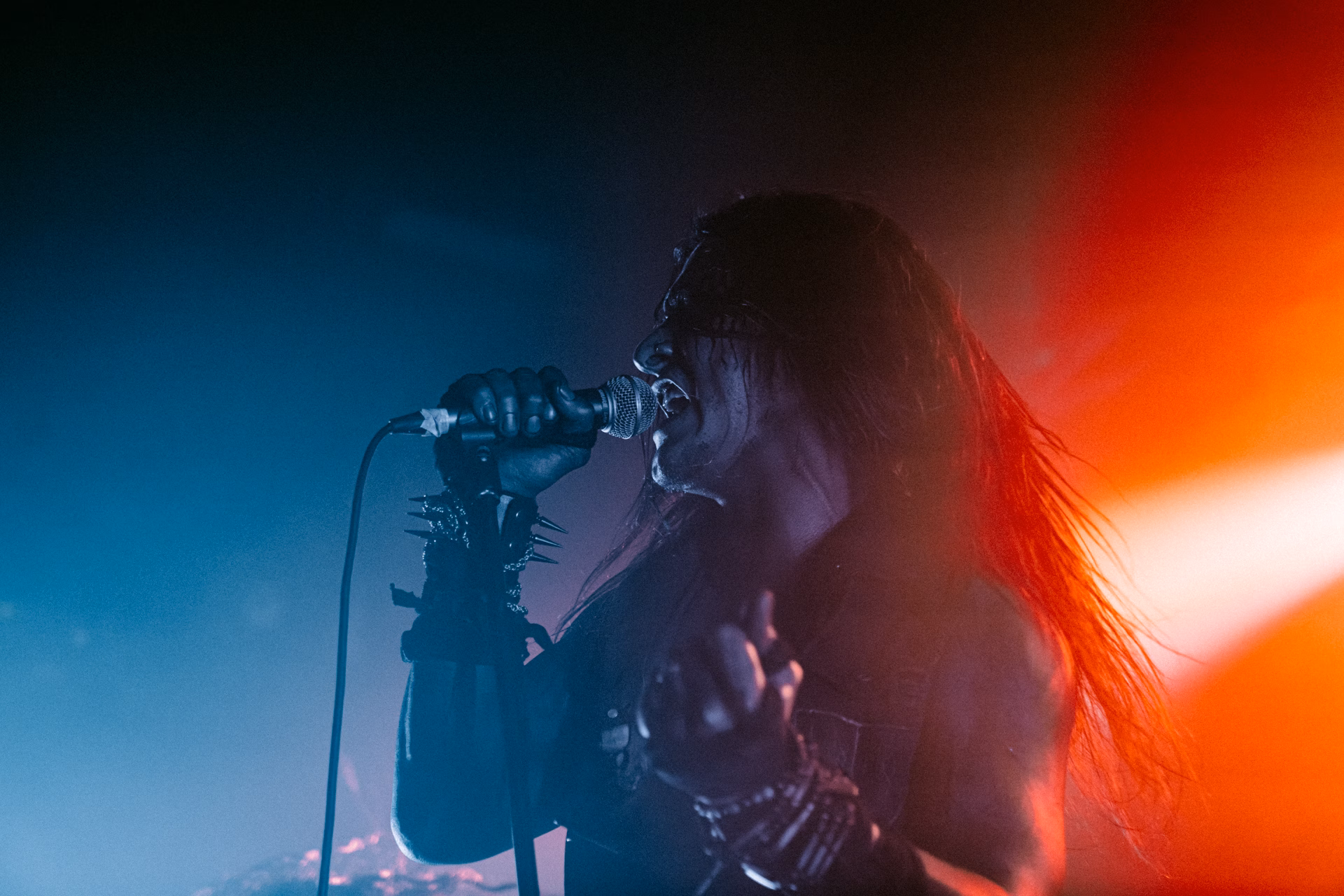 As The Garage, which is sold out for the evening, slowly fills up, Noctem kick things off. The Black Consecration and its ritualistic drums get everyone in the right mood for the evening. Frontman Beleth knows how to keep the crowd’s attention with the “As above, so below” poses and shrieking vocals. It’s a short set, but the closer A Cruce Salus, with its blastbeats, drum, and incredible guitar solo, is a great way to get the crowd ready for the rest of the evening.