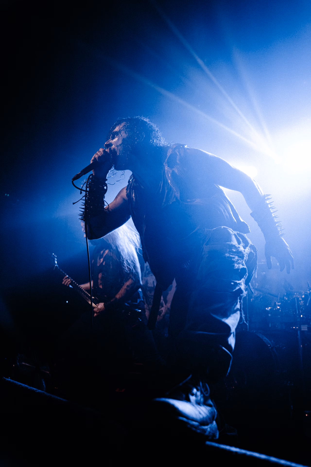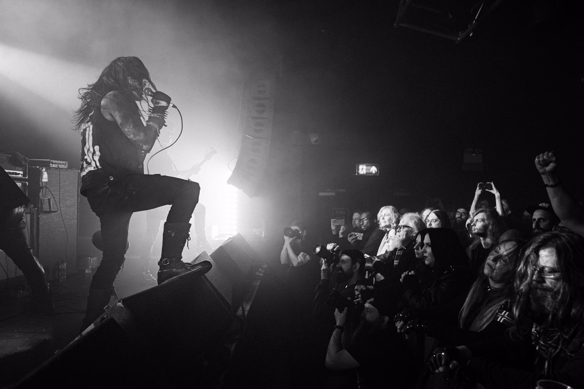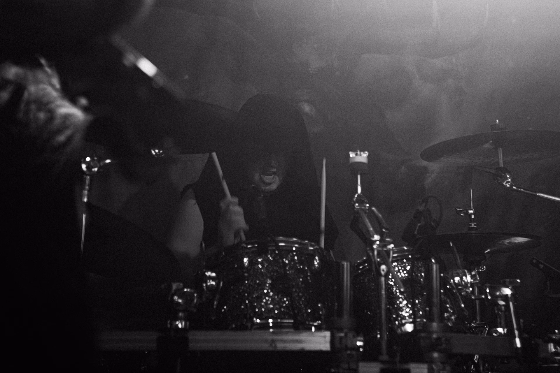 As The Garage, which is sold out for the evening, slowly fills up, Noctem kick things off. The Black Consecration and its ritualistic drums get everyone in the right mood for the evening. Frontman Beleth knows how to keep the crowd’s attention with the “As above, so below” poses and shrieking vocals. It’s a short set, but the closer A Cruce Salus, with its blastbeats, drum, and incredible guitar solo, is a great way to get the crowd ready for the rest of the evening.