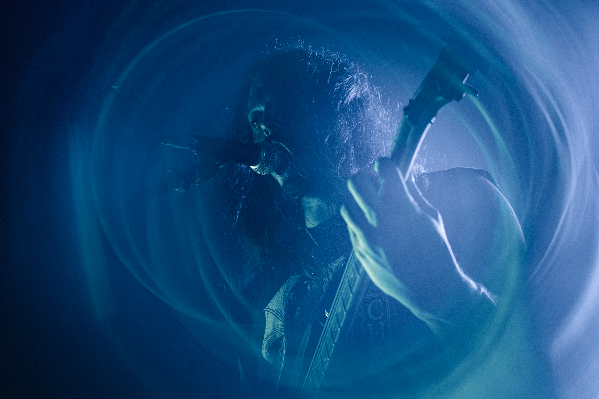 Finally, Blackbraid crashes the stage with the great and chaotic Celestial Bloodlust. The insanely fast riffs combined with his desperate screams and shrieks set the bar for the rest of the set, that follows with Wardrums at Dawn on the Day of My Death and The Spirit Returns. Sgah’gahsowáh puts on an incredible and energetic performance, always moving around and headbanging, and the band is also always interacting and making faces at the crowd. As the Creek Flows Softly By is the only quiet time of the evening with the beautiful flute and serene atmosphere. Barefoot Ghost Dance on Blood Soaked Soil closes the set and we hope that it doesn’t take a long time before Blackbraid is back with another tour.