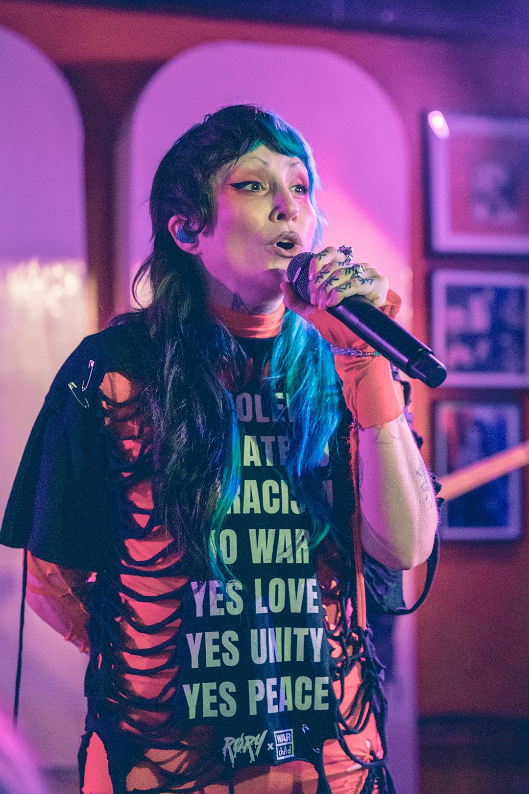 RØRY’s performance at War Child’s Day of the Girl event at the 100 Club in London was a powerful testament to female resilience and empowerment. This intimate concert was part of a series hosted by War Child UK around the UN’s International Day of the Girl Child, showcasing female-identifying artists like RØRY, Lleo, and GIRLBAND. These artists took the stage to perform and support War Child’s mission of advocating for girls and women affected by war and conflict worldwide.