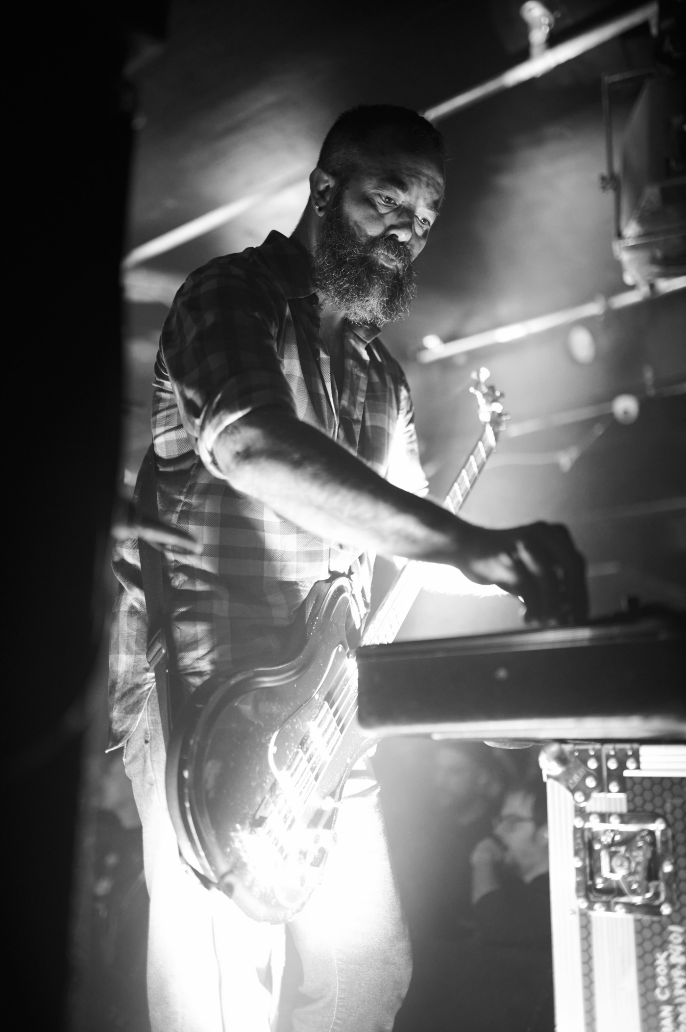HIWATT amp heads and towering cabs dominated the low-rise platform, barely waist-high and sans barrier, with the audience adjusting their earplugs unison as REZN opened. Now labelmates with Russian Circles under Sargent House, REZN’s sound—anchored by their new album Burden—unfolded in a cosmic blend of spacey synths, saxophone, and heavy drops, creating a mood as immersive as it was intense.