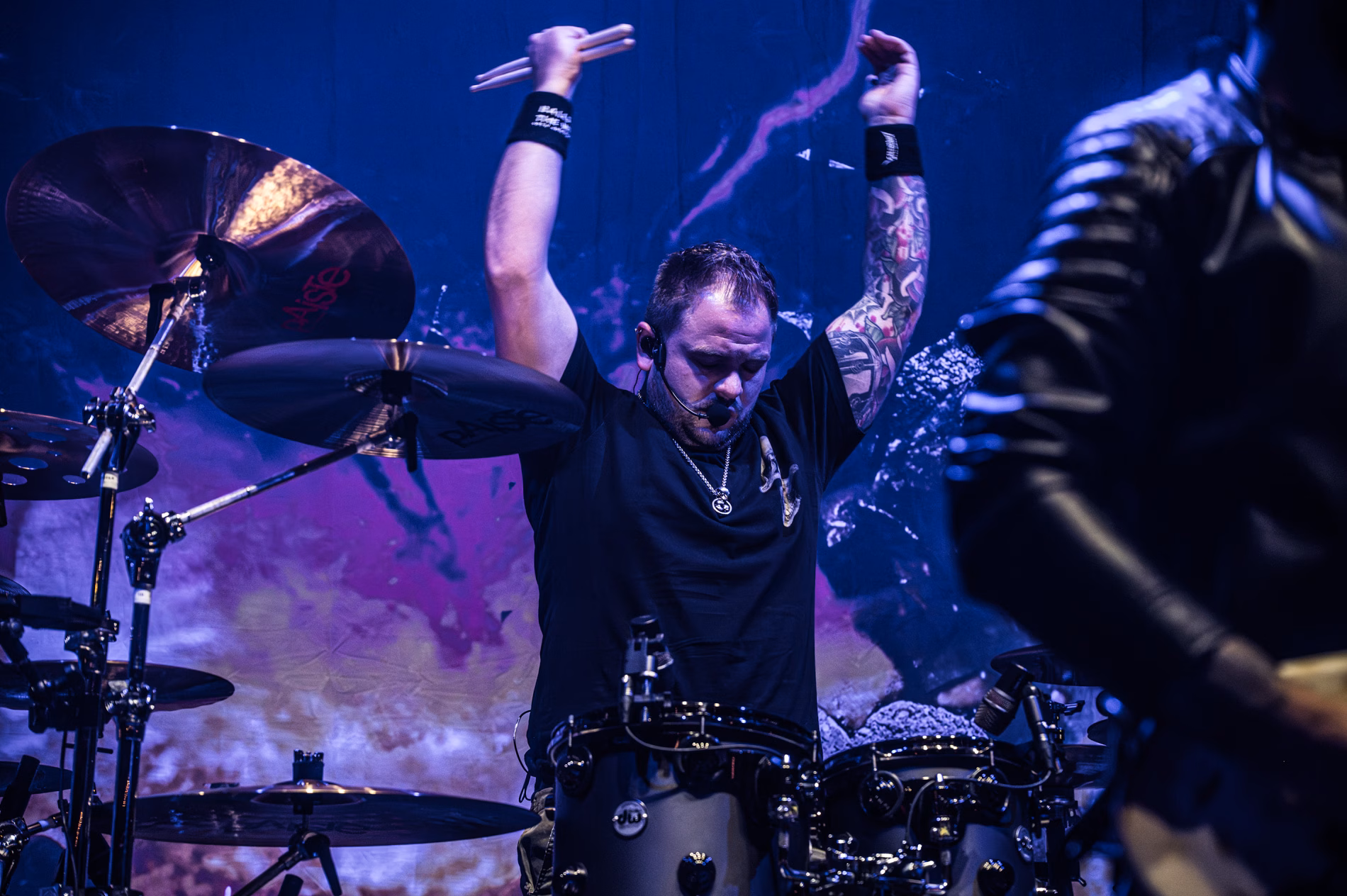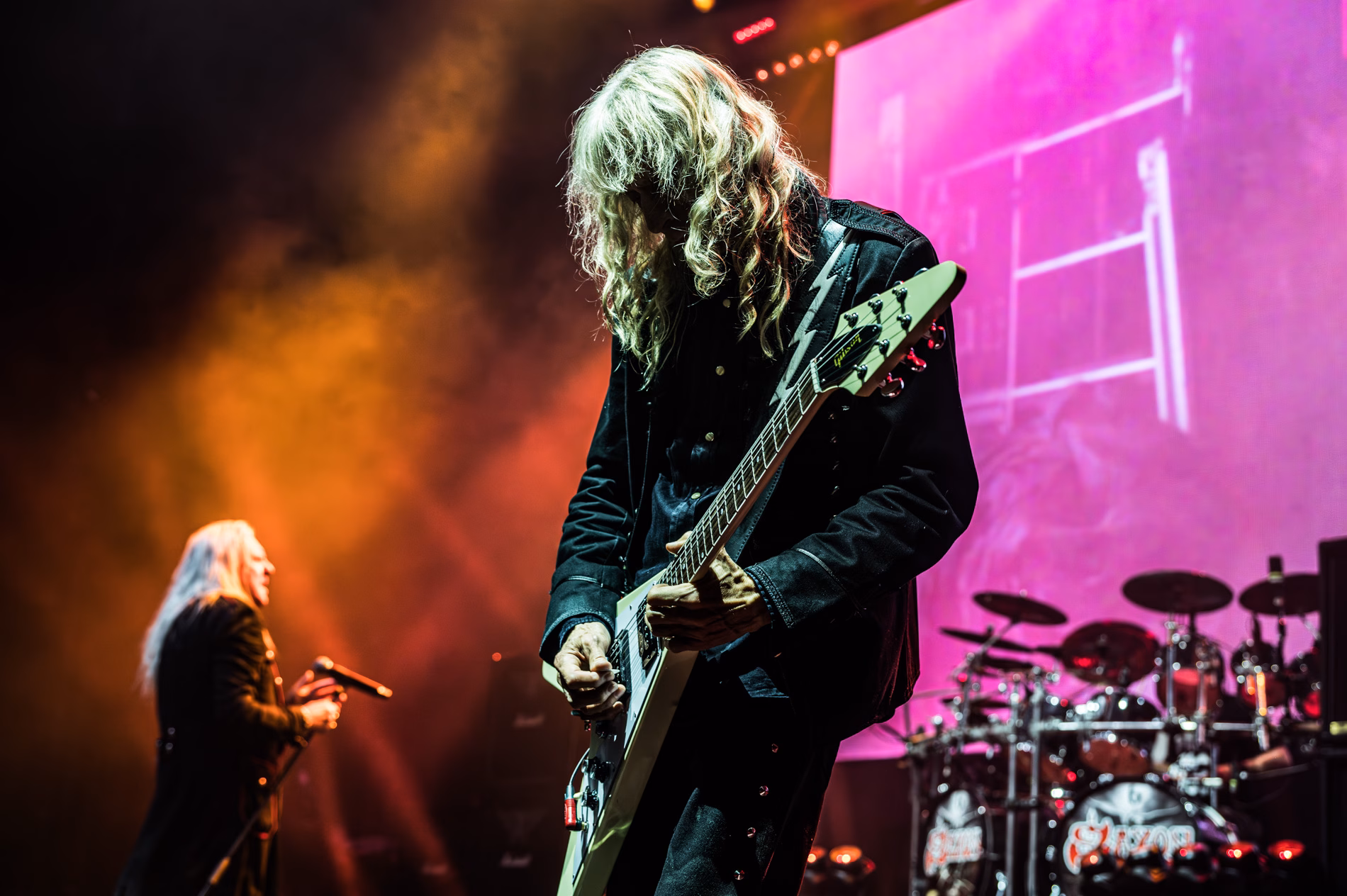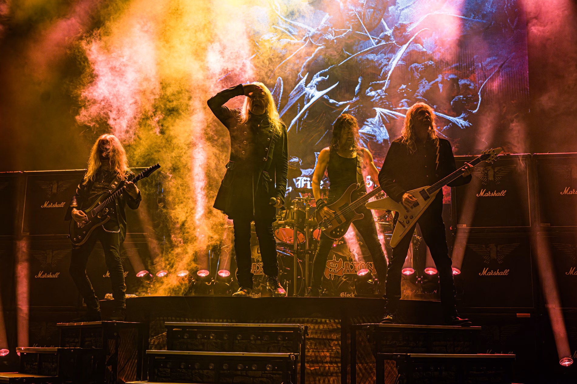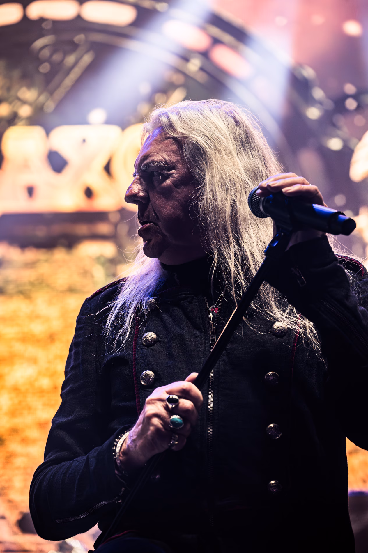 As a result, there was only a slight pause before Saxon rolled back out, with “the engine room” Neil Glockler being the first to pop up behind the kit. Glockler has special mention from Biff as the heart of the set, and with him being the longest tenure member that isn’t Byford or Quinn, it’s hard to argue. The band then leads into another hallmark of the set, and it’s something that slowly builds throughout the set, as denim vests have slowly found their way off the backs of fans and onto the stage. Byford, Scarratt and Tatley all don a fans vest each for the always soulful ‘Denim and Leather’ as what is a final trio of songs from that album. They then kept it rolling into ‘And The Band Played on’ which features a rolling montage of album covers on the LED screen behind (and it’s hard to argue any band has a more iconic first 5 albums as Saxon do). After all this, final song honours could only go one way, to the iconic ‘Princess of the Night’ like a victory lap, though no set would be complete without it.. As Biff led the crowd through one final chorus, he pointed out that next year marks fifty years since the band first played Manchester, and in time for that there will be a new album. It’s always a good time to be a Saxon fan…