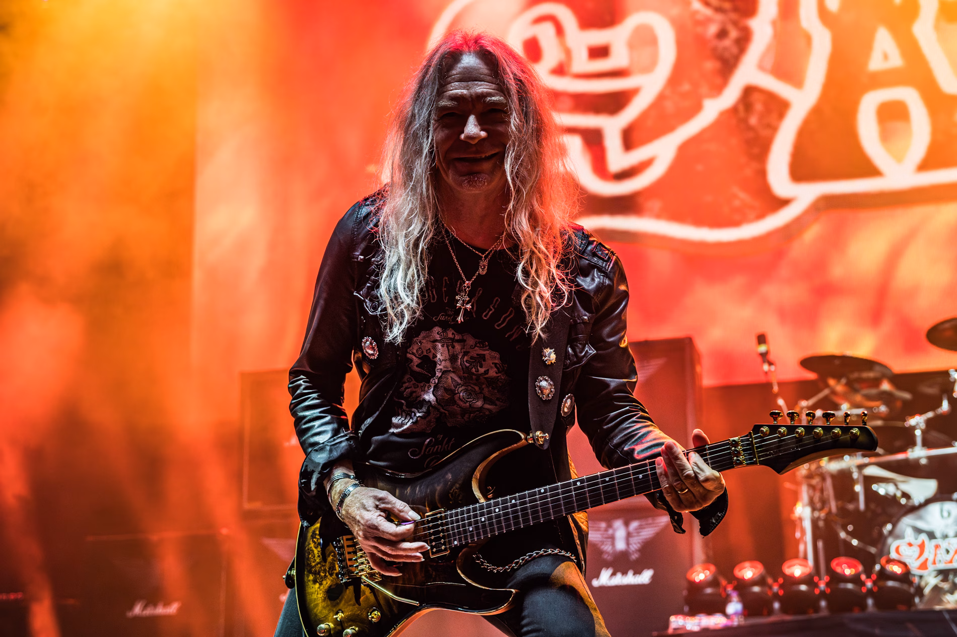 Prior to this tour, the last time ‘Back to the Wall’ was played was in this same room in 2022, (interestingly, Brian was also on stage that night, but with then-opener Diamond Head, and has since taken over live duties from the beloved Paul Quinn) while Biff also calls back to the first time the band ever played Manchester, and how the song appeared back then too. ‘Sacrifice’ is so nearly the newest material in the set, but also has appeared so regularly since its release in 2013, and marked such a strong comeback for the band that it is nearly in “classic” status in its own right. The yo-yoing of material old and new continues in the first half, with Denim and Leather’s ‘Never Surrender’ as well as ‘Madame Guillotine’ from last year’s album following one another. There’s a brief reminiscence/comedy routine from Byford about the time the next two tracks came out, that being the 1980’s, and the iconic Strong Arm of the Law album. He waxes about the time before CD’s, and very specifically “no fucking internet”, and how plenty of the crowd weren’t even born back then. It’s a damn strong testament that such a loud, and young cheer meets that statement, and the accompanying ‘Heavy Metal Thunder’ and ‘Dallas 1PM’ shows that New Wave of British Heavy Metal bands still have a strong and beating heart.