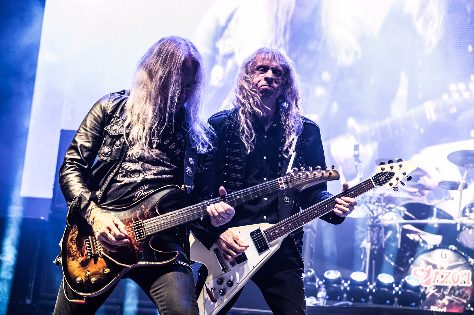 All pageantry and memories of no technology aside, the night’s centrepiece was what everyone had come for, regardless of age. Wheels of Steel in full. From the first rev of ‘Motorcycle Man’, the Apollo transformed into a cathedral of denim, leather, and nostalgia as Byford screeches down the mic with a signature whistle. It goes without saying that the track is especially easy to get into and sing along to, but the much lesser played ‘Stand Up and Be Counted’ hasn’t been dusted off since Saxon played O2 Ritz down the road during the 2010’s. ‘747 (Strangers in the Night)’ sent the crowd into full euphoria, as one of their most iconic tracks, though it paled in comparison to the song of the night, ‘Wheels of Steel’. Any other response the crowd had prior to this is completely drowned out, and crowd were at fever pitch even before Biff whips his phone out to record a video for Facebook telling Manchester Apollo to “go fucking crazy”. This is one of the most endearing aspects of the band’s show, simply because they do it every night and make a point of it being a staple in the set for literal years now. Now it has to be said, Wheels of Steel is an iconic album, but the latter half of the record has not seen nearly the same amount of spotlight as the big tracks have. The proof is in the fact that back to back tracks ‘Freeway Mad’, ‘See the Light Shining’ and ‘Street Fighting Gang’ have all been played more on this tour alone than they have in decades. That said, the response from Manchester barely wavers, and picks right back up in time for the anthemic ‘Suzie Hold On’ and final track of a golden record, ‘Machine Gun’. Honestly, with the quality of the show up until this point, you’d be forgiven for assuming the crowd were sent home happy with that.