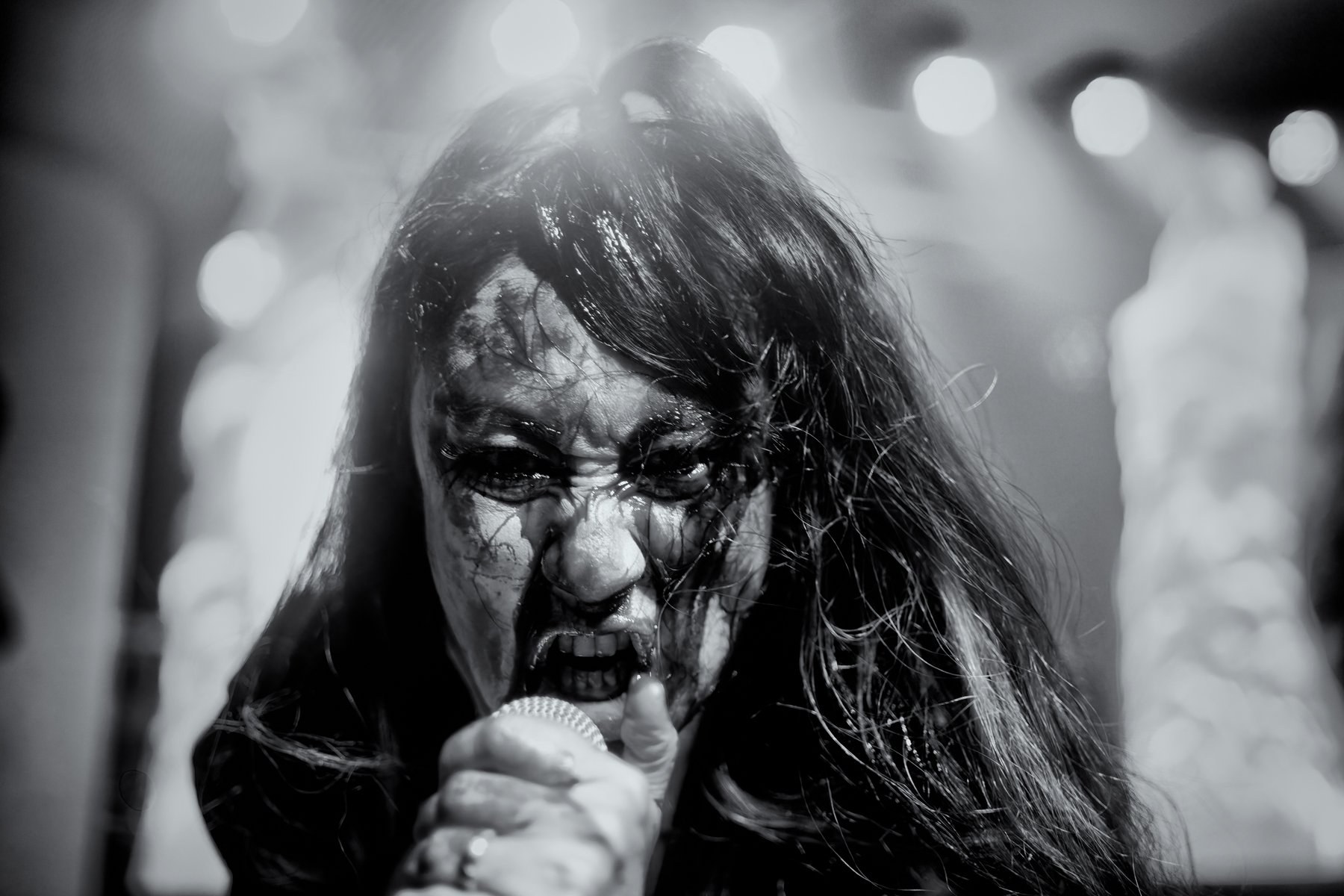 When Sigh finally took the stage, they built on that intensity and took it to another level. The band members were all on point, but it was Dr. Mikannibal who truly stole the spotlight. Her energy was insane as she engaged with the crowd, even going as far as to drop (fake) blood on her face, adding to the theatrical atmosphere. The climax of her performance came when she fearlessly jumped into the crowd during the final song, jumping onto the shoulders of your fellow reviewer and photographer.