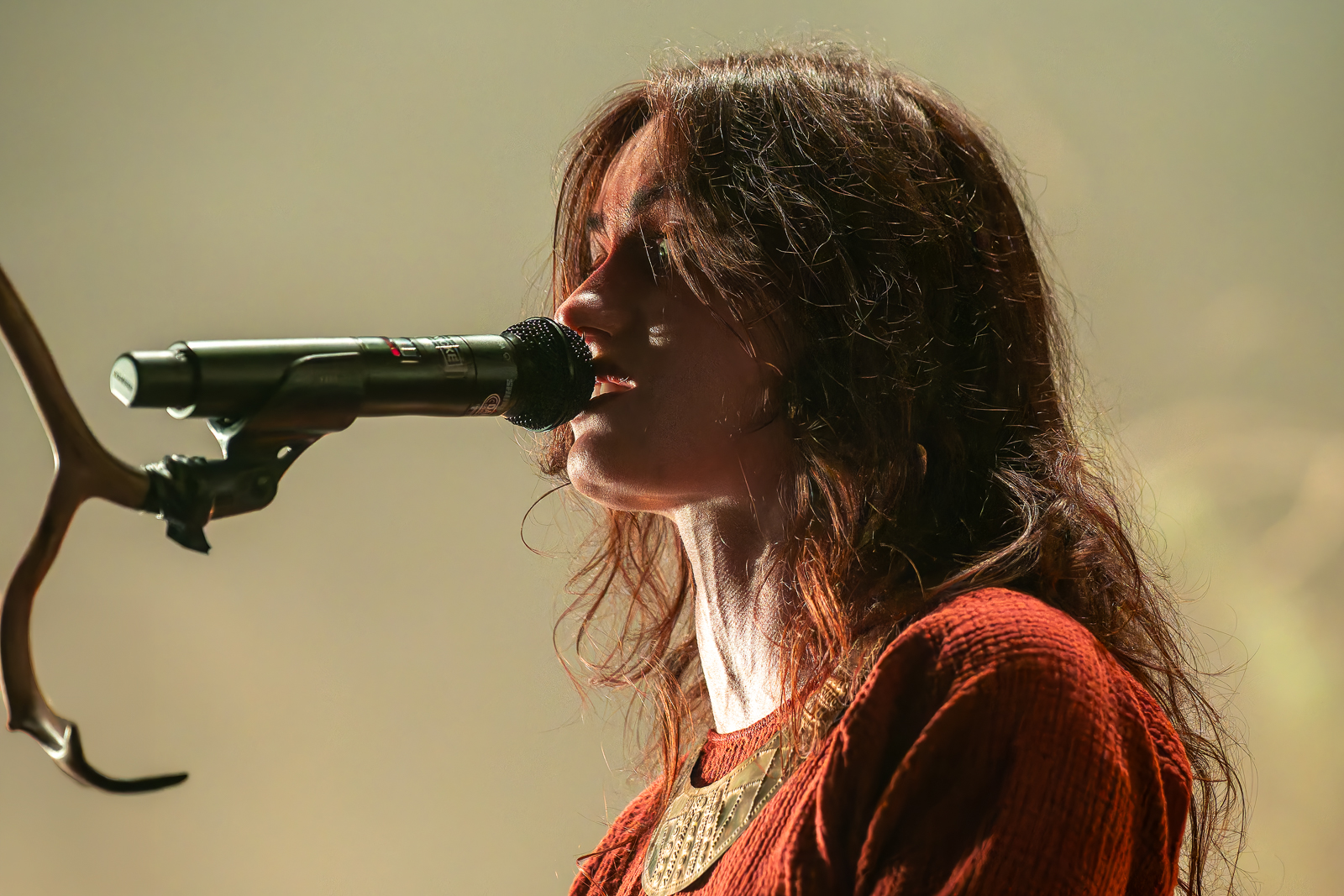 Eivør took the stage first in a soft, otherworldly glow. She opened with “Jarðartrá,” her voice clear and haunting as if it were echoing off the Faroese cliffs. She moved through a few of her songs before pausing to deliver the theme where some of her fans first heard her: on the series The Last Kingdom. Hearing those notes live charged the room. You felt her depth and control in every phrase. By the time she closed with “Upp Úr Øskuni,” the crowd was quiet, eyes wide, fully primed for what came next, as the curtain with Heilung’s logo was set in front of the stage.